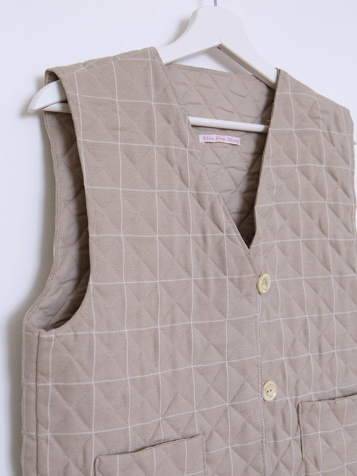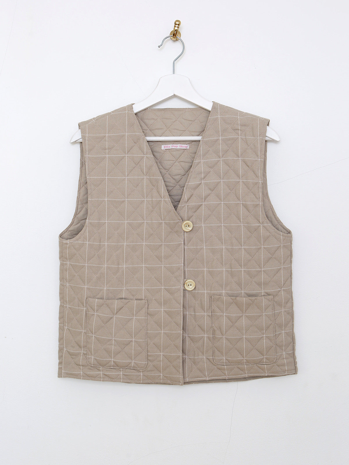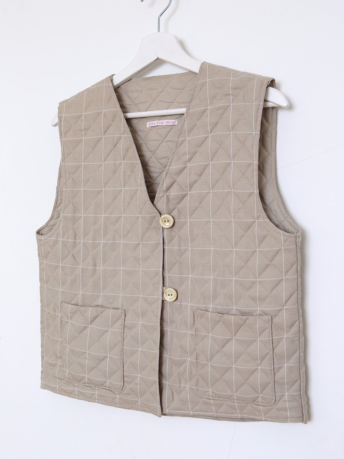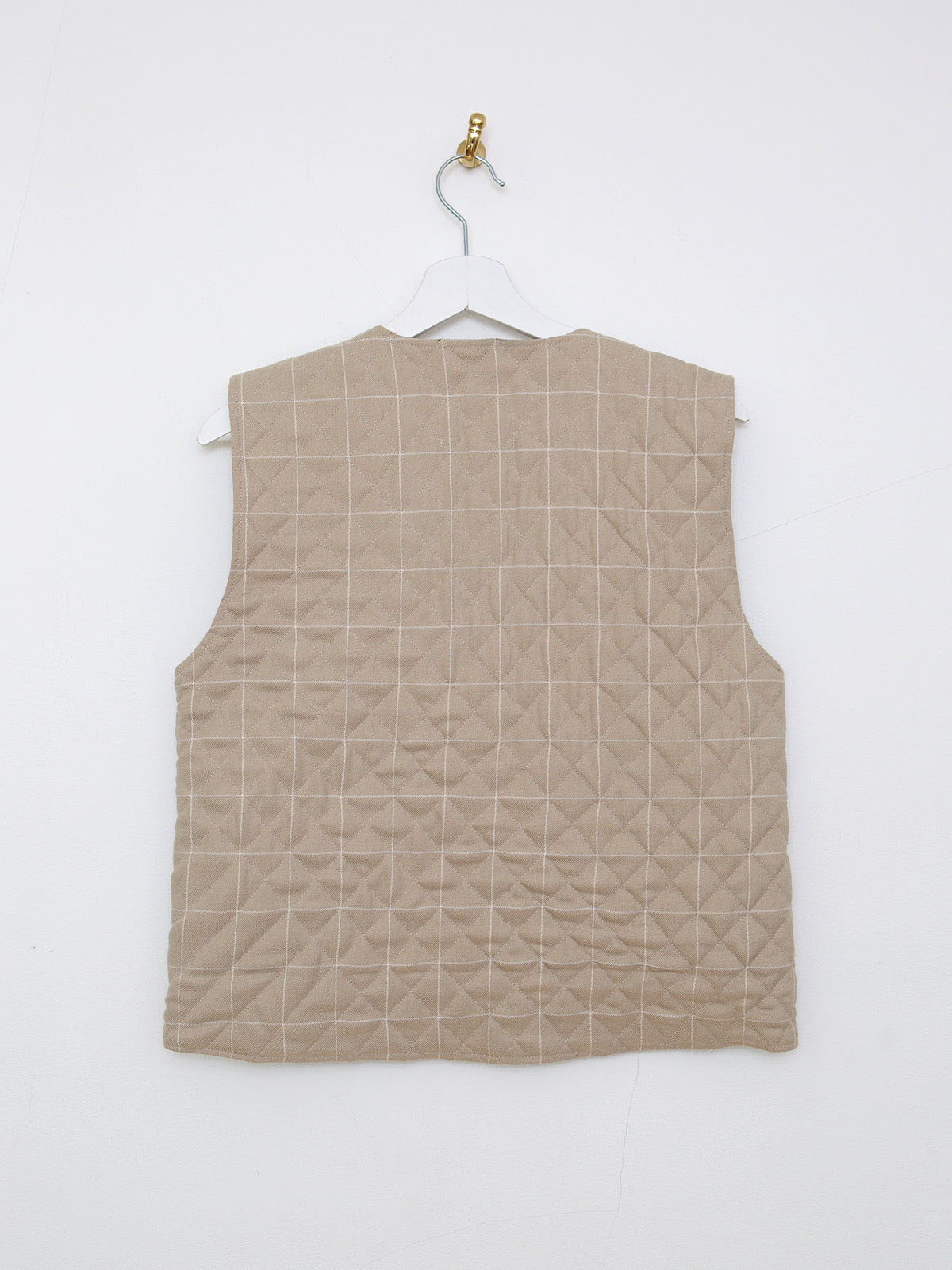 Beige checked, quilted and lightly padded.
