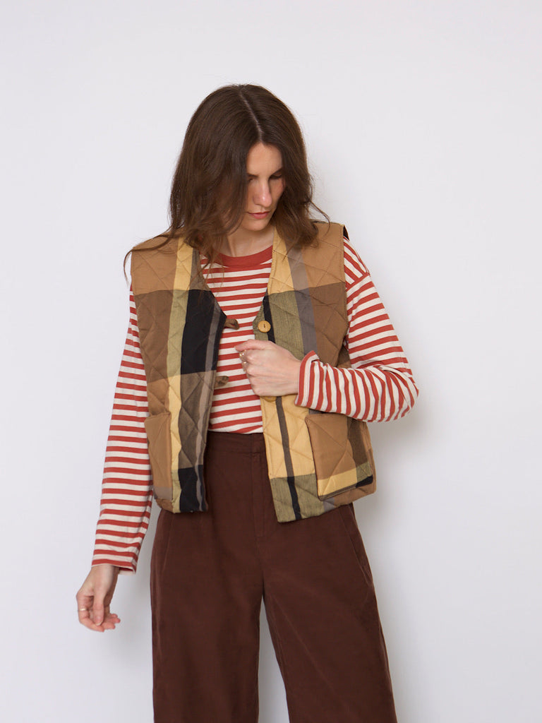 This waistcoat is handcrafted in East London, with beautiful end of stock wool & cotton blend fabrics.
