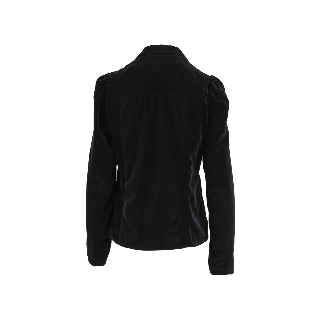 Offering a blazer-style design and crafted with luxurious cotton velvet, this sleek Just In Case black jacket features 4 front pockets, 3-button fastening and classic lapels. Perfect to add a touch of sophistication to any look. Perfect for an evening out or to layer over a casual outfit.