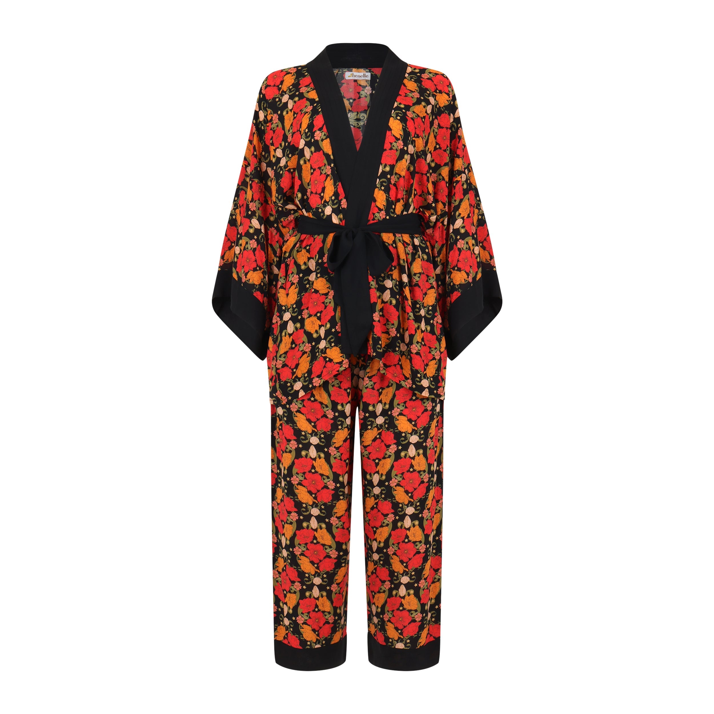 The fabric is viscose which is light and floaty and feels like a mix between cotton with a touch of silk. Viscose is also made from plant cellulose/ bamboo and is 100% biodegradable. We chose this fabric over silk as it wasn't as hot to wear as it is more of a breathable fabric but still feels more luxe than cotton. Made in China.