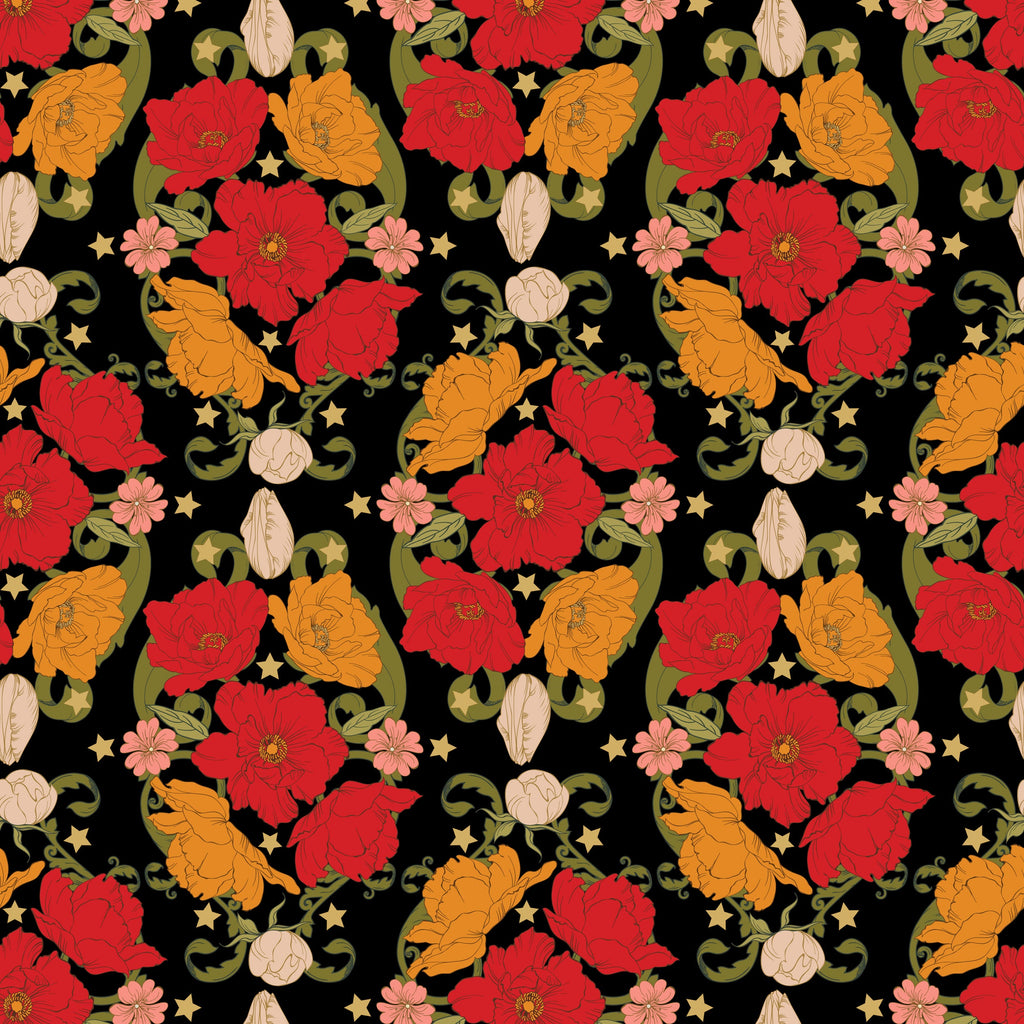 Vintage inspired floral print featuring poppies, daisies and stars. The back has a large Queen Bee made up of flowers and hearts. All original artwork printed with environmentally friendly inks.
