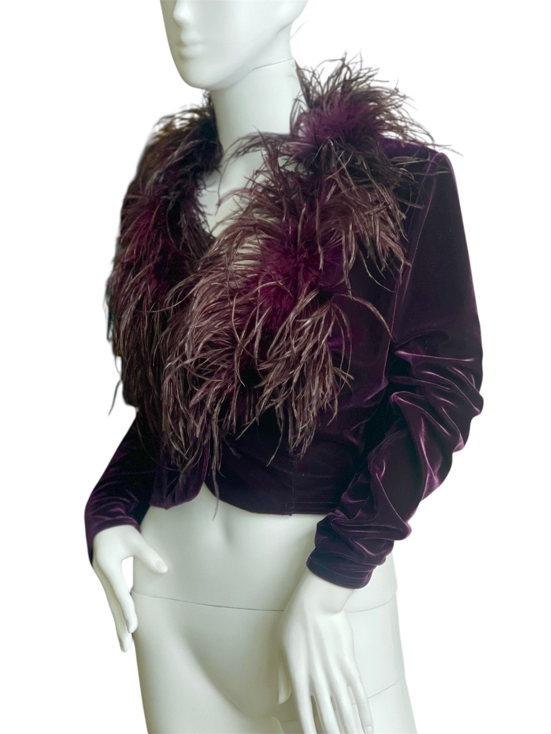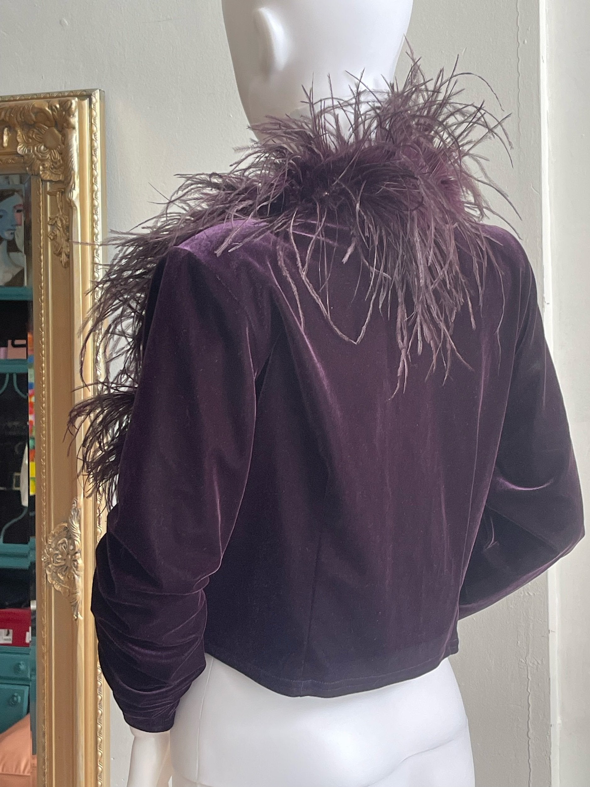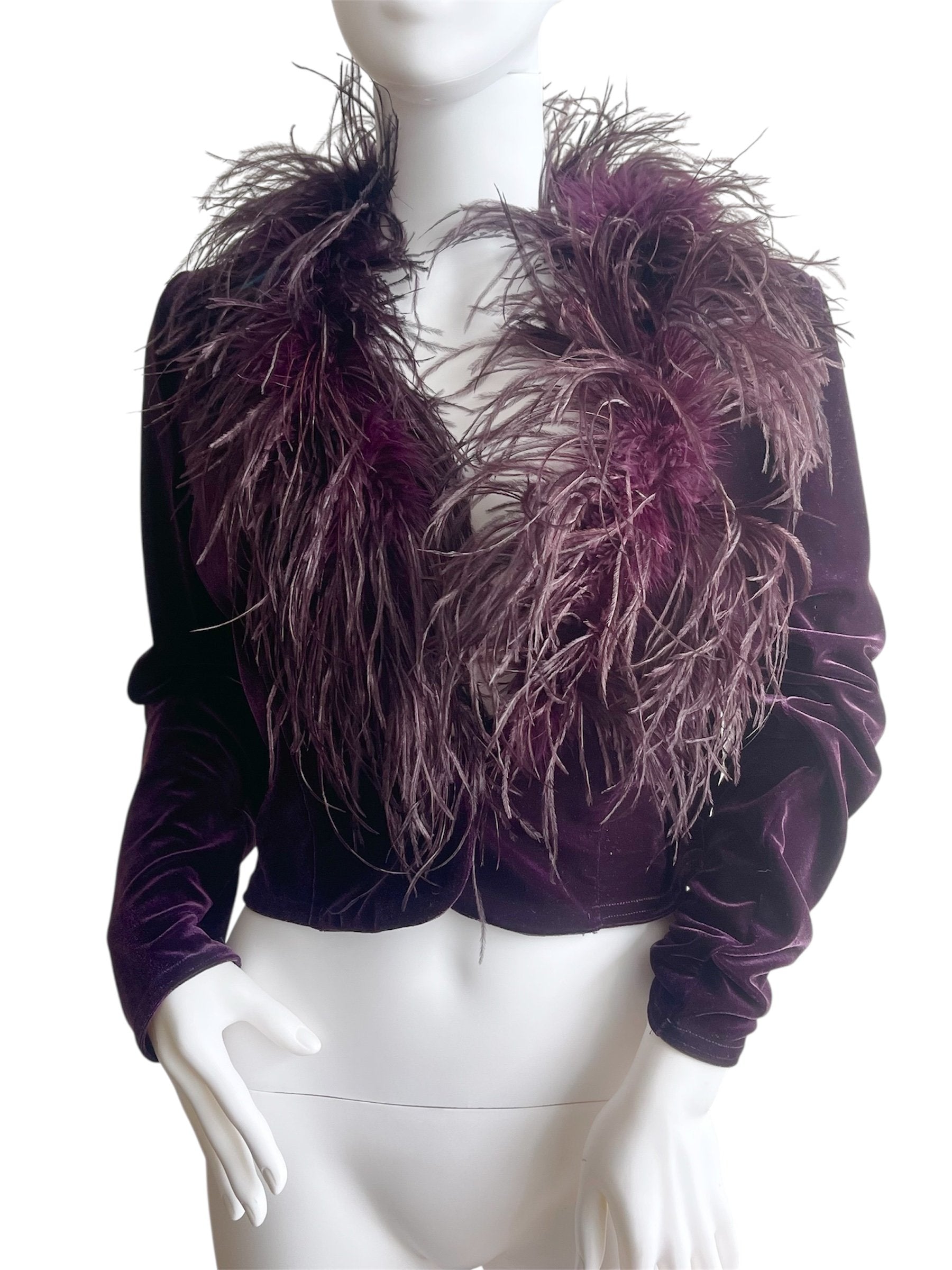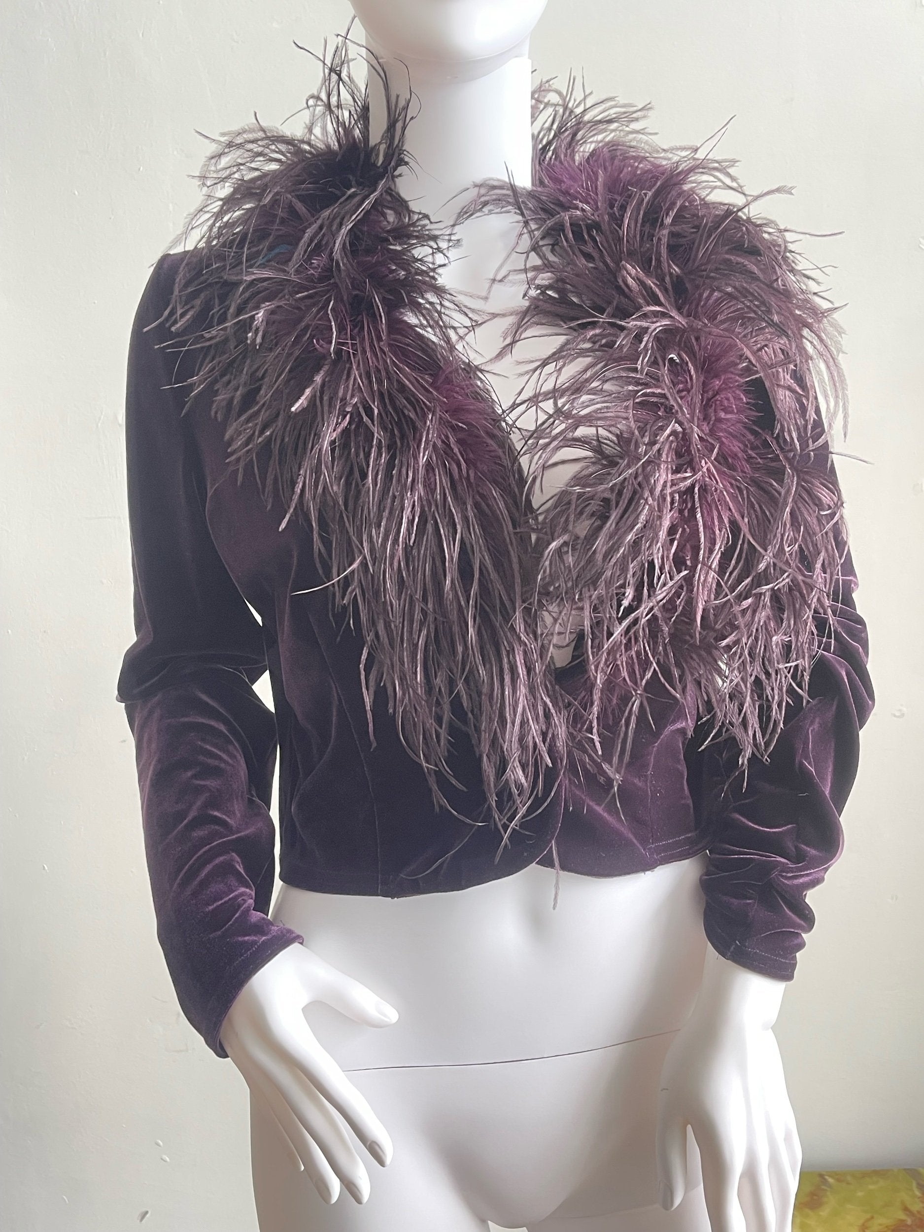 Ostrich feather and velvet short jacket