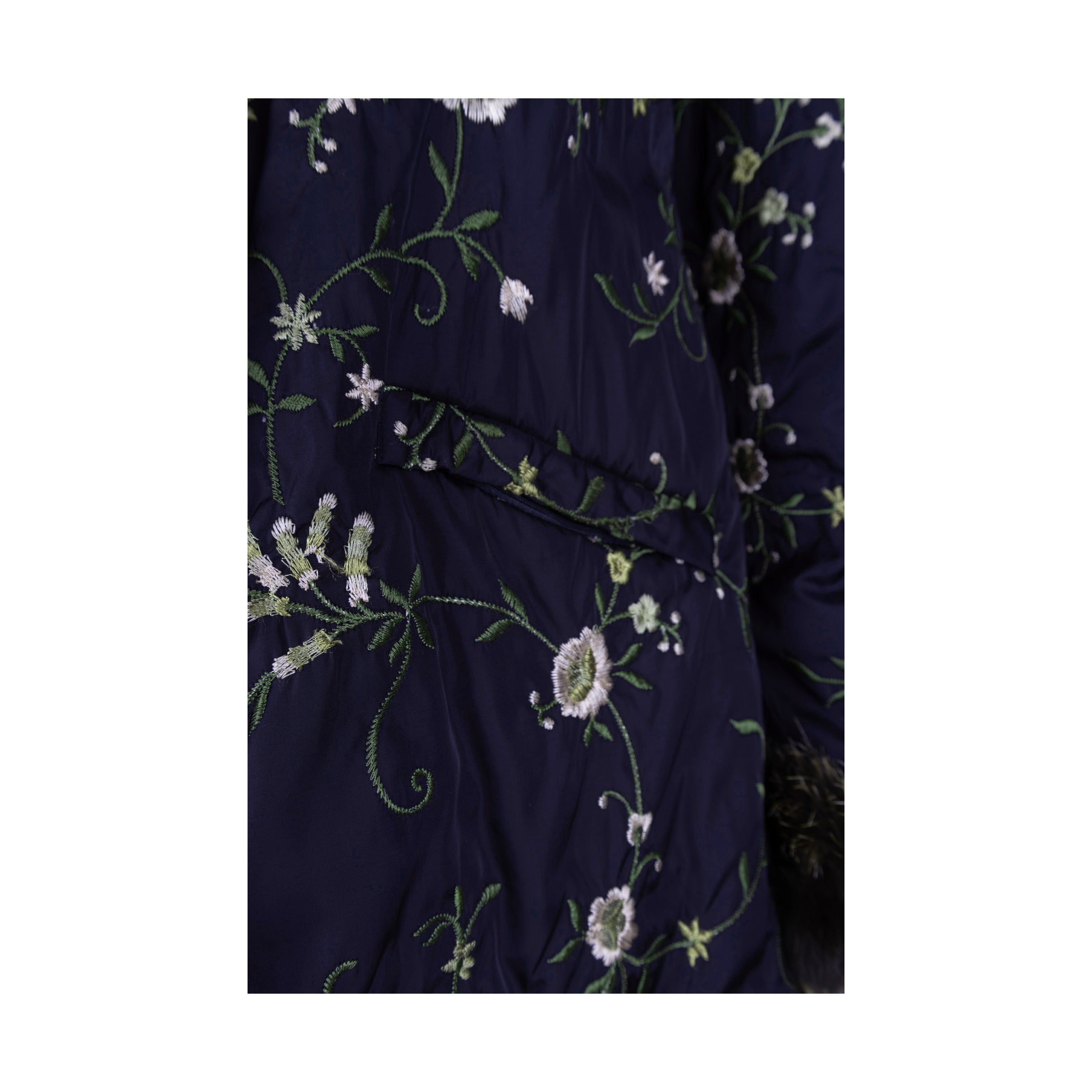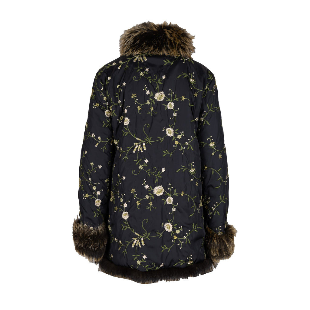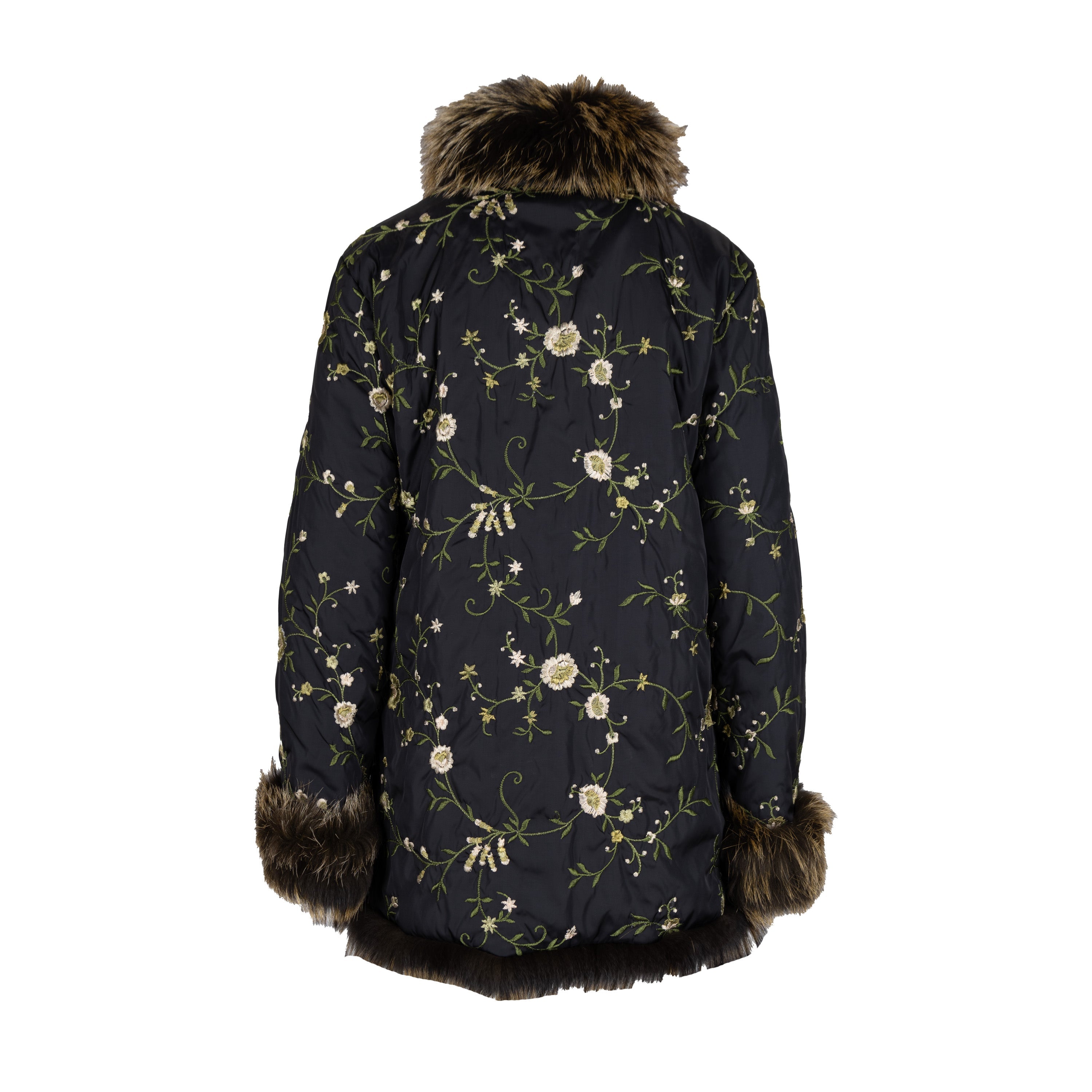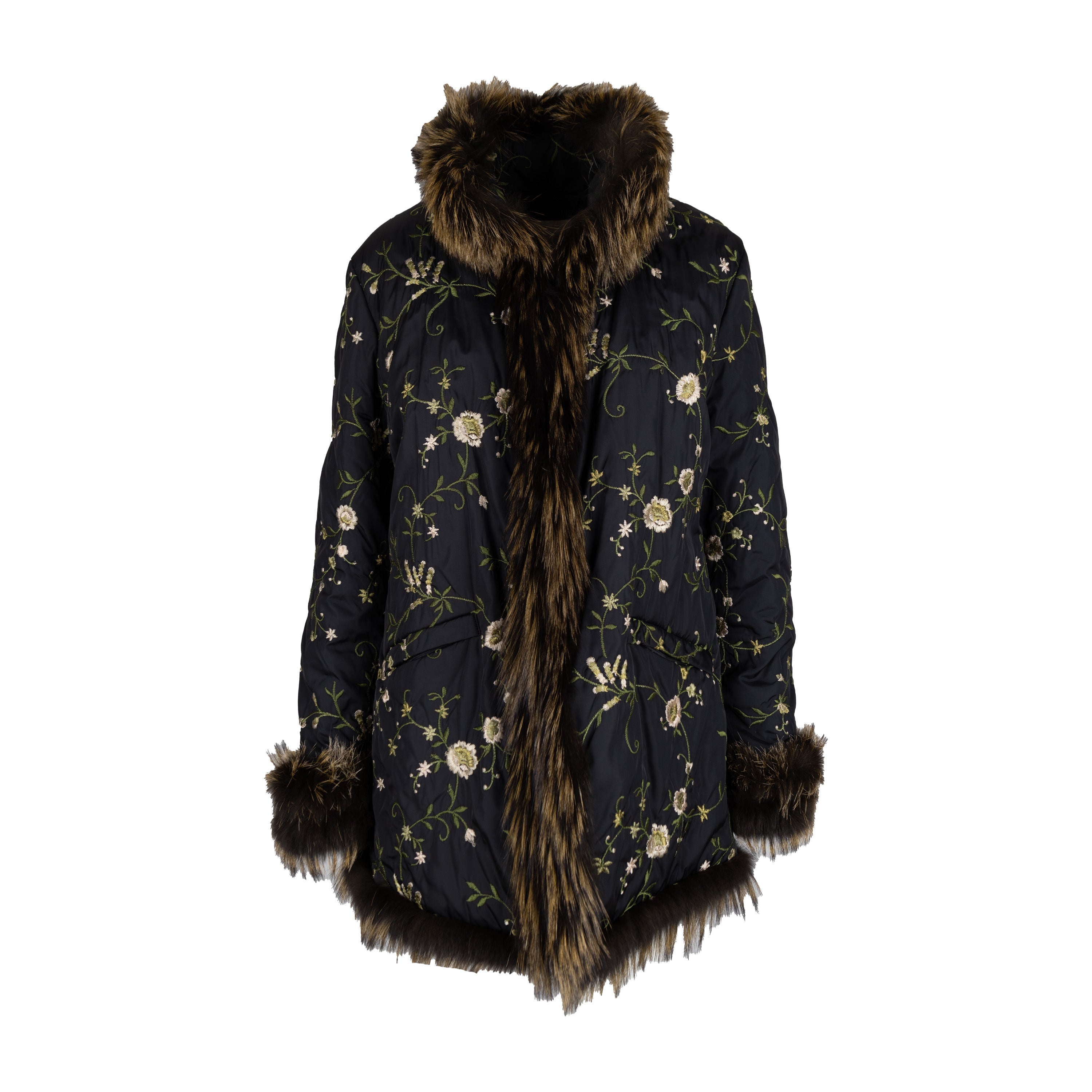 This Scervino jacket is made with polyester and features animal fur trimmings on the collar and hem. Its elegant design showcases all-over embroidery with delicate flower and vine motifs. Stay stylish and warm with this long jacket.