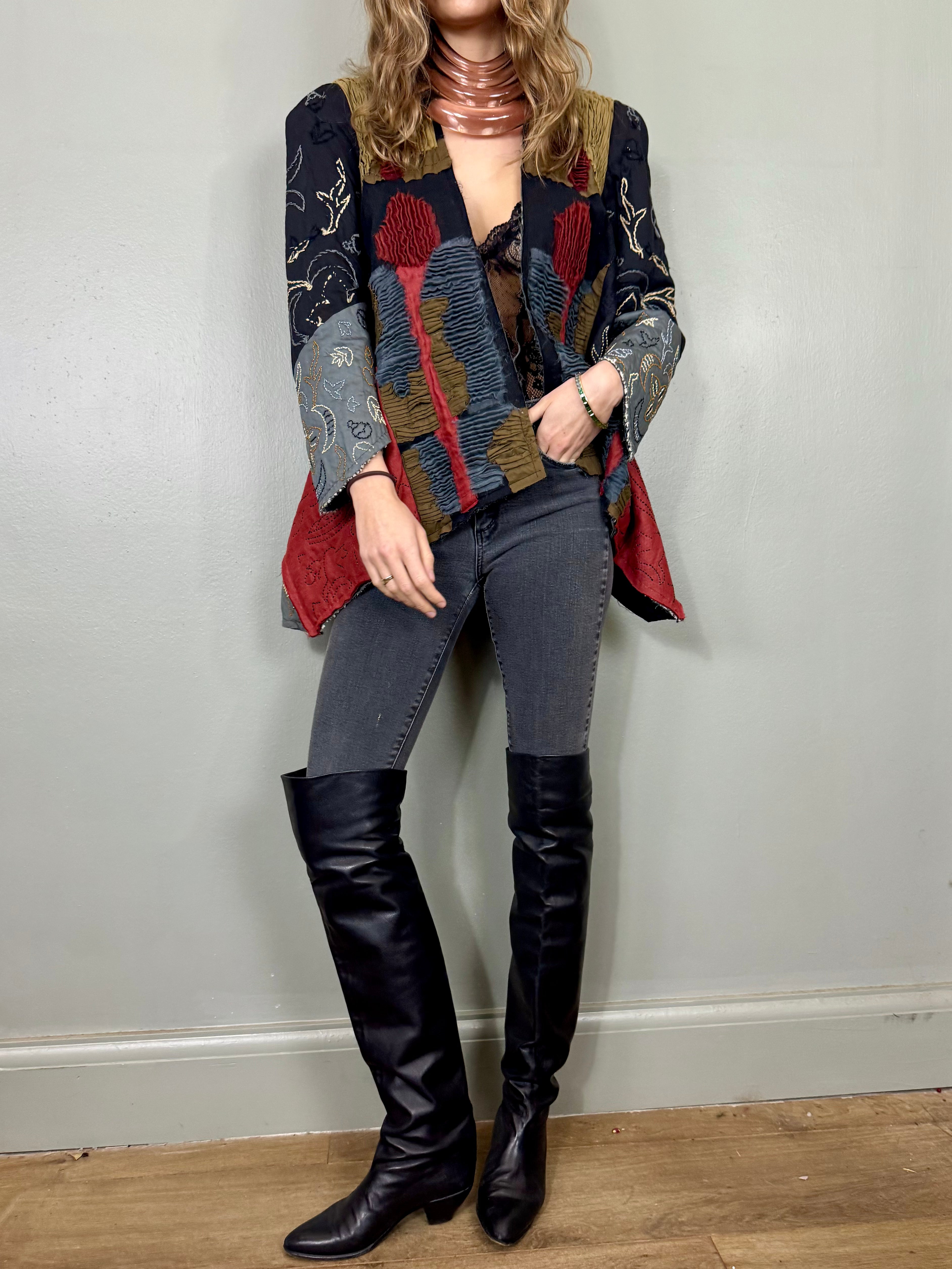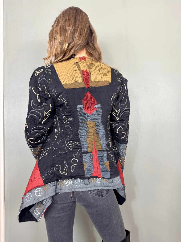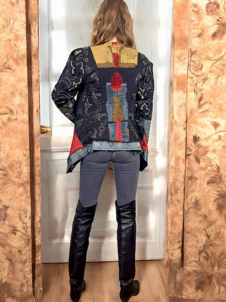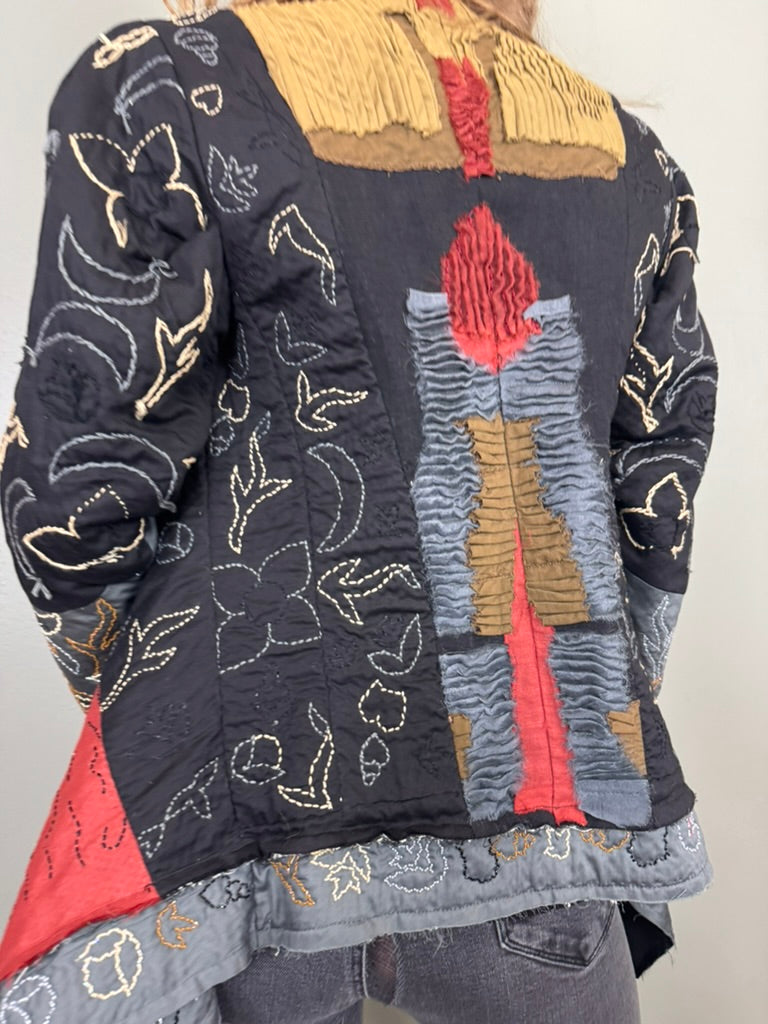 Expertly crafted with incredible texture and structure, this inspiring beaded jacket features long sleeves, firm shoulders, and a fitted waist for a flattering shape. The asymmetrical hem and intricate beaded flower detailing add a touch of elegance to this stunning piece. Perfect for elevating any outfit.
