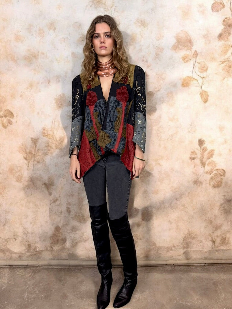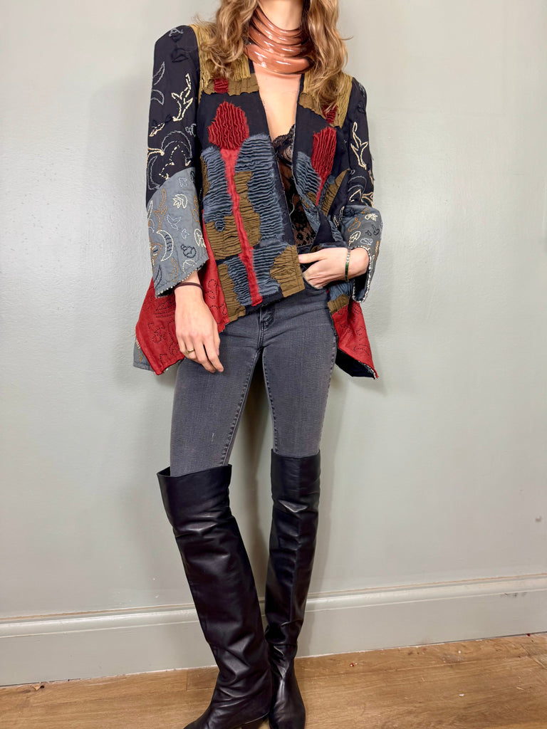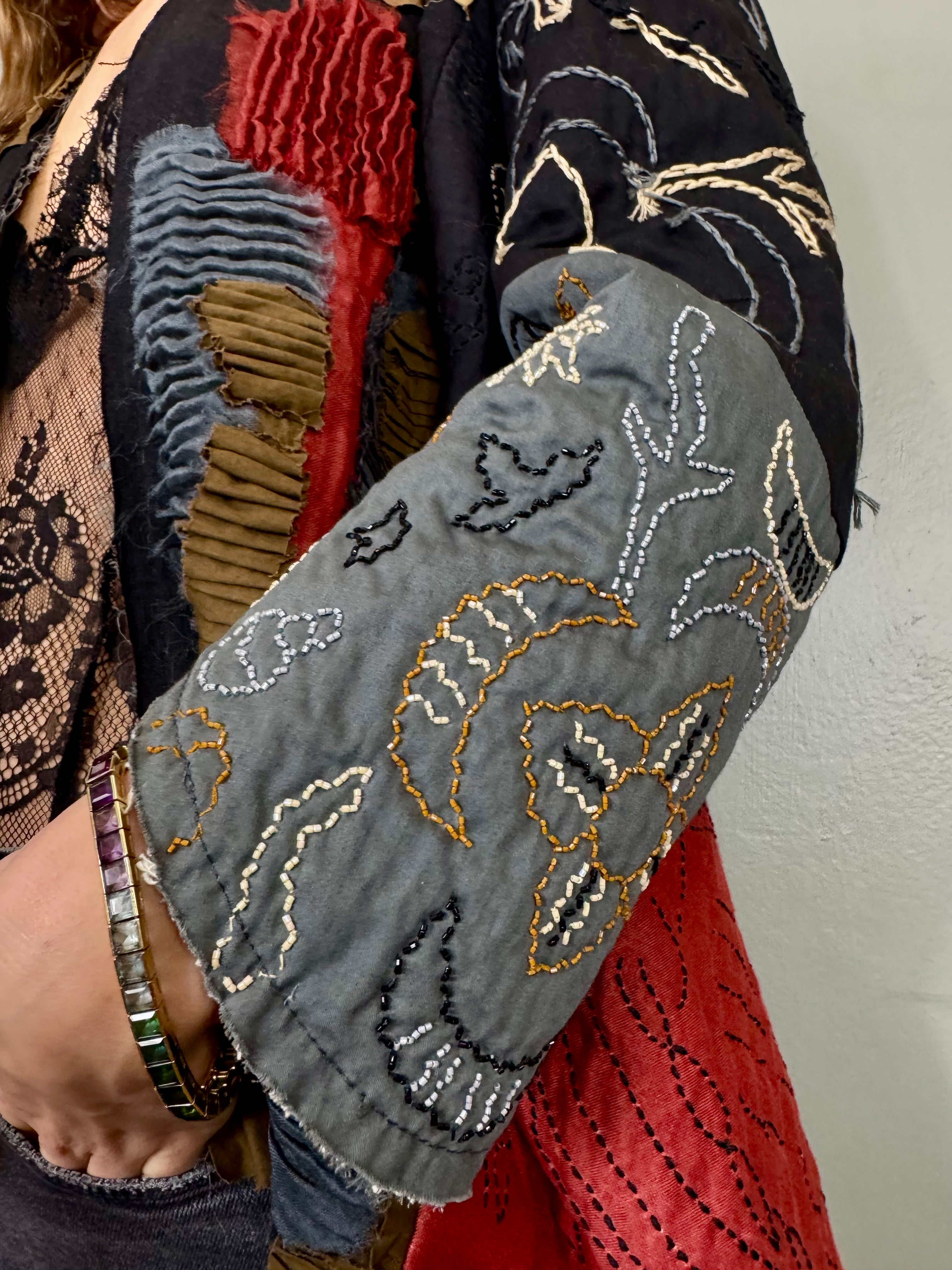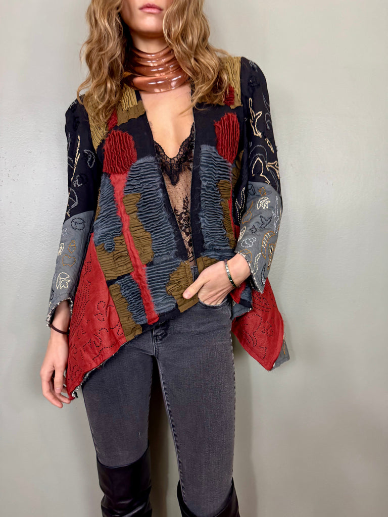 Expertly crafted with incredible texture and structure, this inspiring beaded jacket features long sleeves, firm shoulders, and a fitted waist for a flattering shape. The asymmetrical hem and intricate beaded flower detailing add a touch of elegance to this stunning piece. Perfect for elevating any outfit.