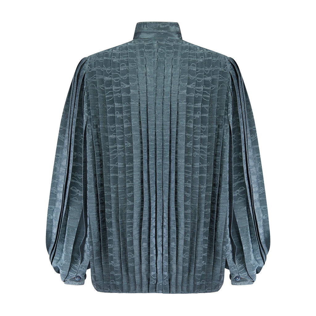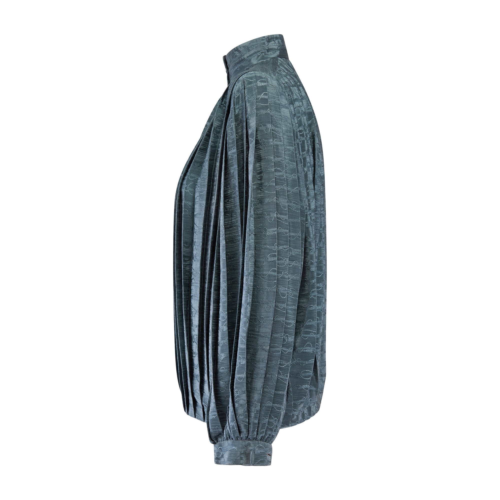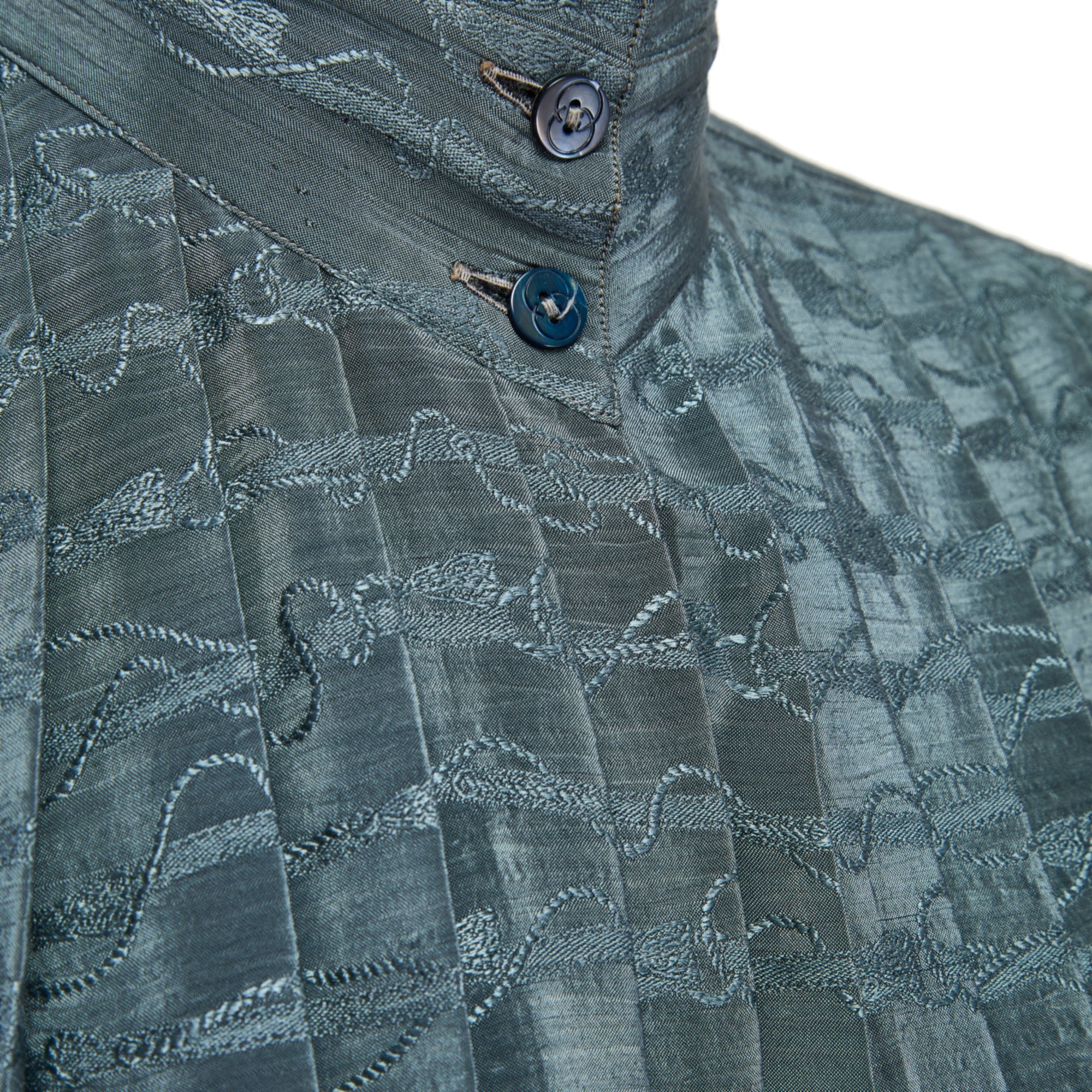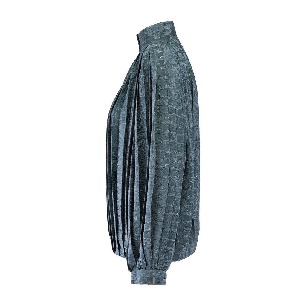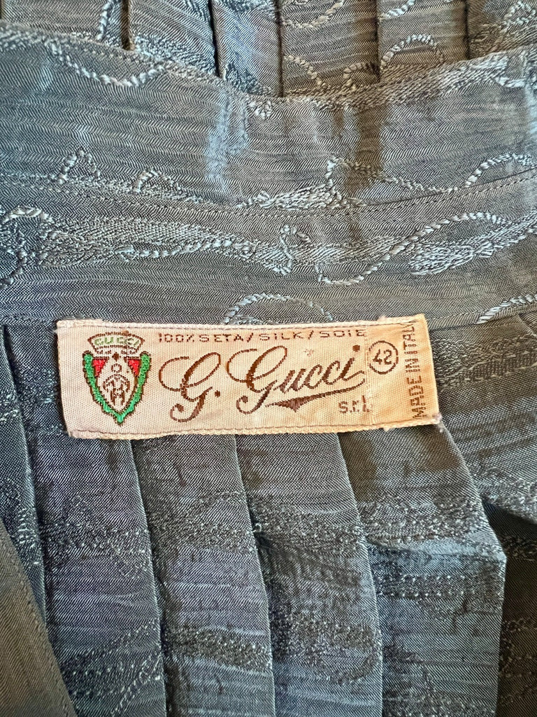 1970s to 1980s Gucci Teal Silk Jacquard Pleated Blouse