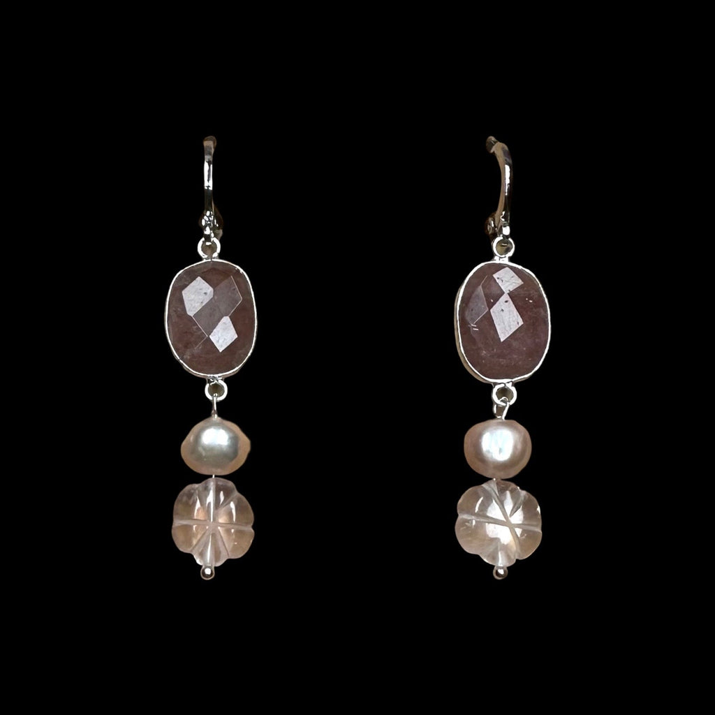 Pearl, Strawberry & Rose Quartz Drop Earrings