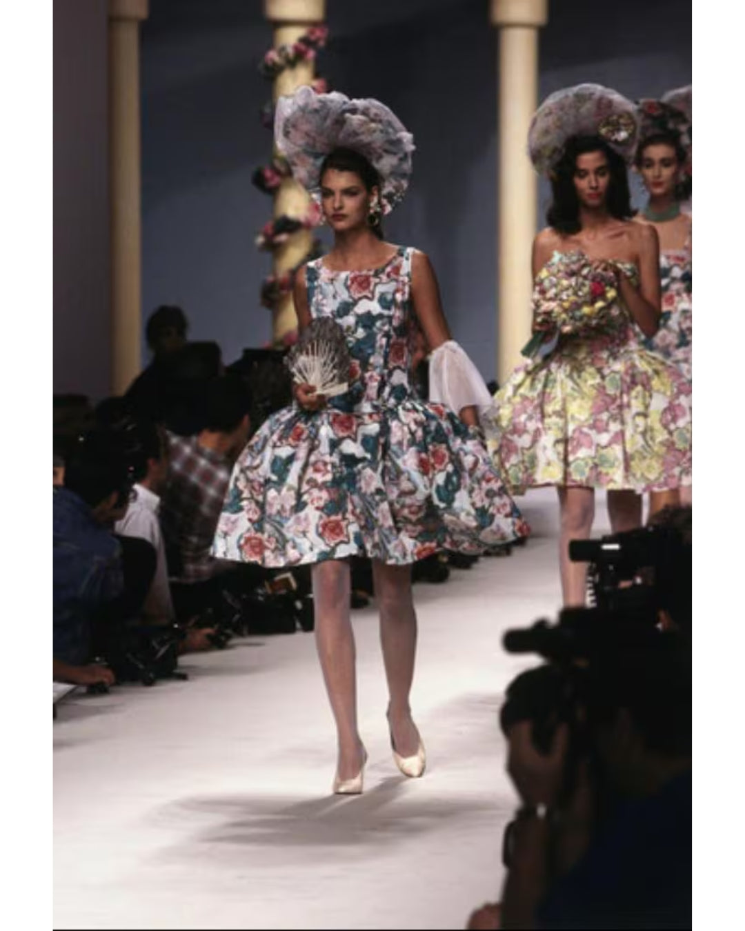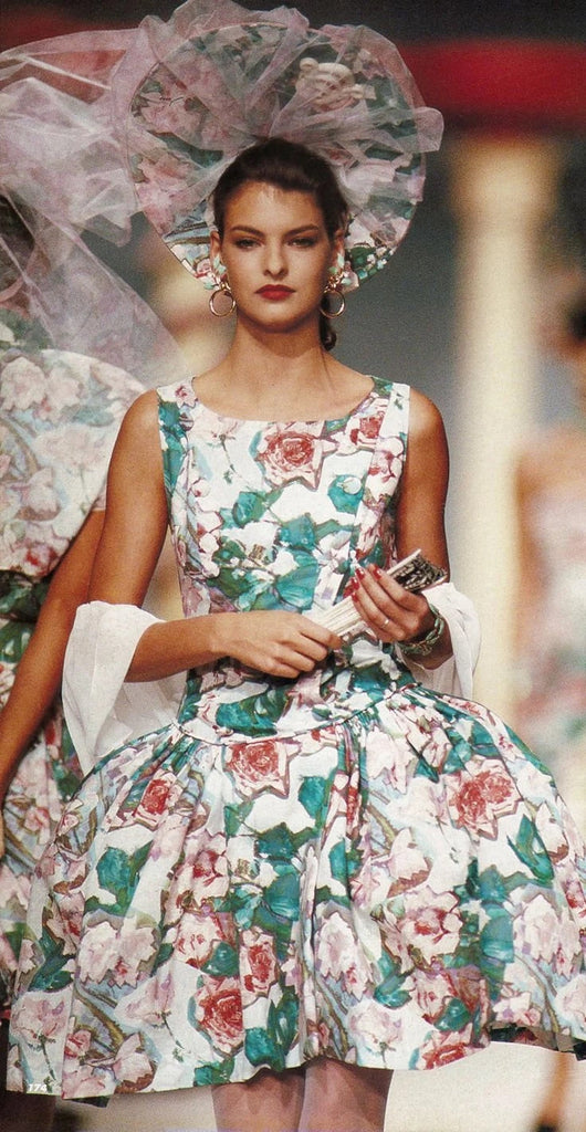 1988 Runway Documented Karl Lagerfeld Floral Marie Antionette Dress