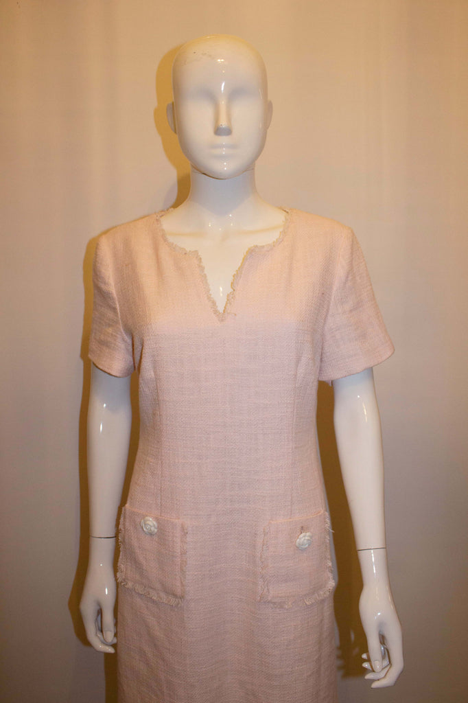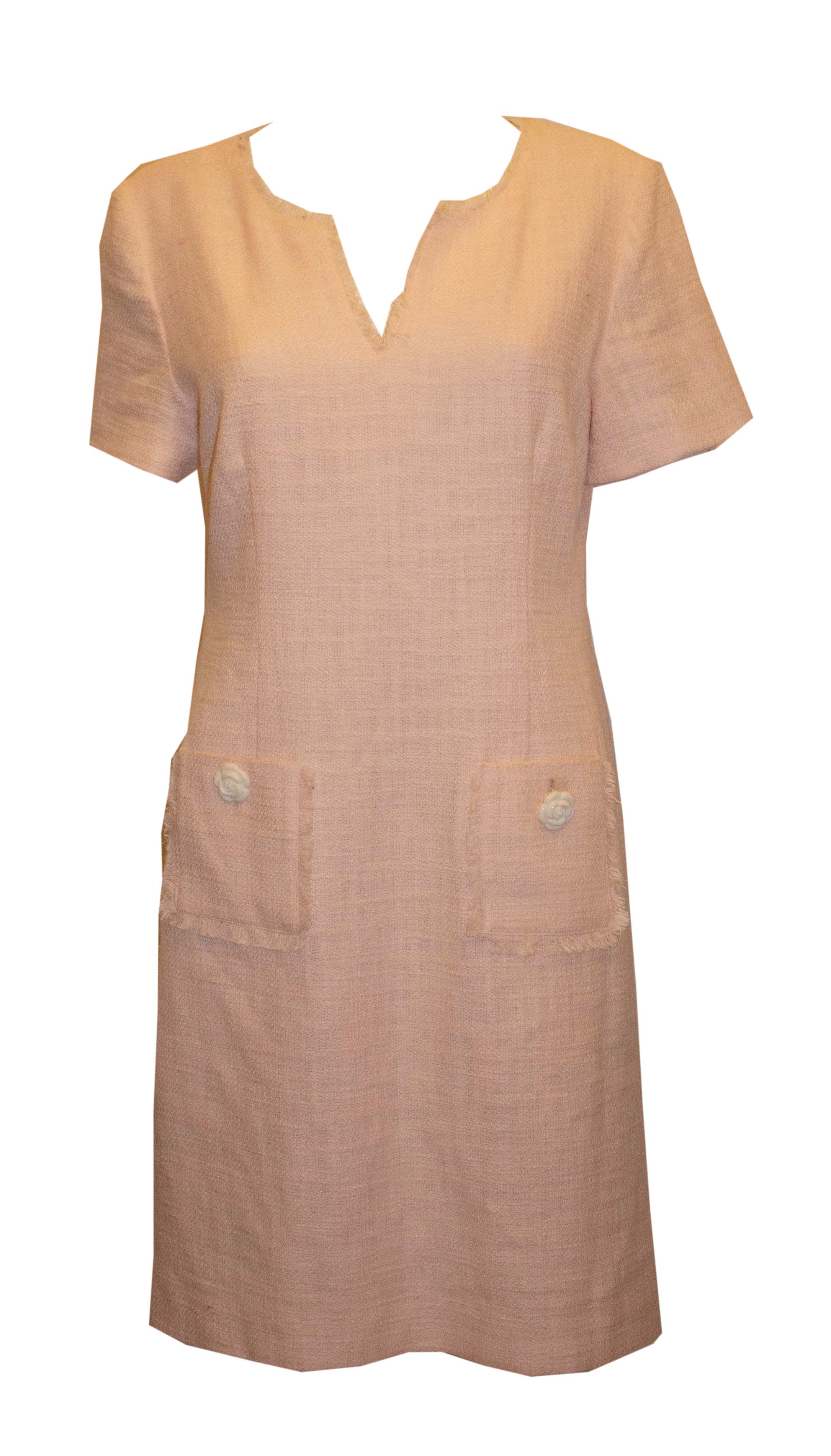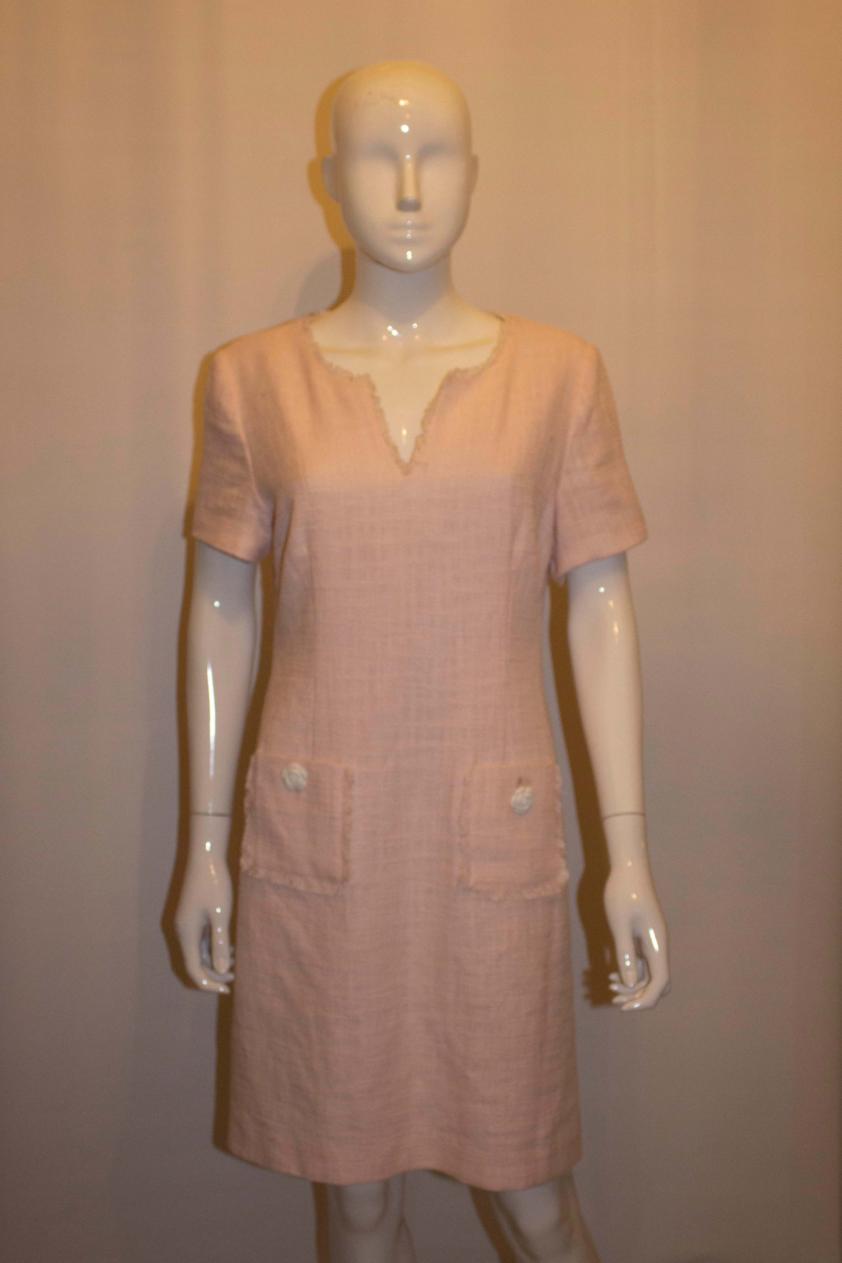 A pretty pink shift dress by Karl Lagerfeld , Paris line. The dress is in a pretty shade of pink , and has two pockets on the front, short sleaves and is fully lined.