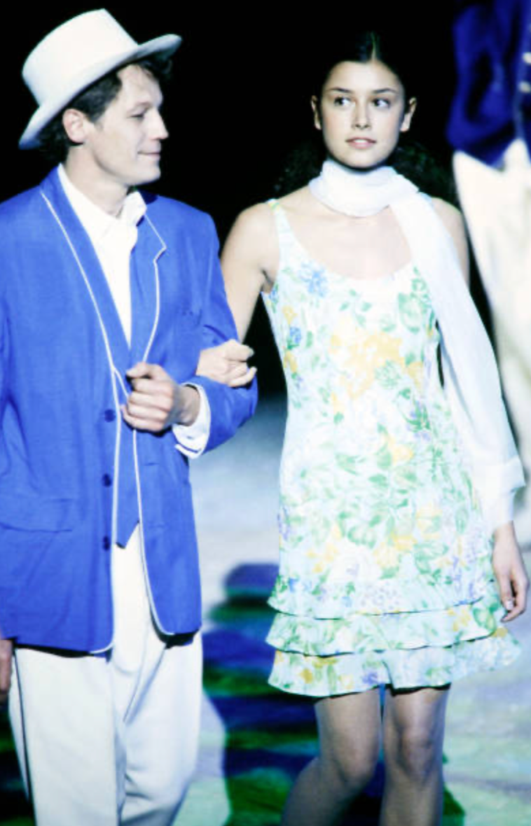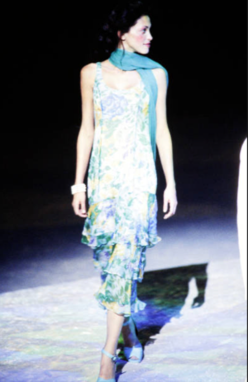 This dress walked the runway as part of Kenzo’s Spring 2000 collection which celebrated the 30th anniversary of founder Kenzō Takada's career as a fashion designer. This was Kenzo's final collection for his namesake brand before his retirement. Throughout his career, Kenzo had embraced a vibrant, eclectic aesthetic that blended global influences with highly wearable silhouettes, and this collection was a showreel of highlights nestled amongst the new collection. This dress was a stand-out piece - shown in both blue and pink floral colourways - designed to showcase Kenzo's skill in making vibrant, feminine and flattering gowns that women want to wear.