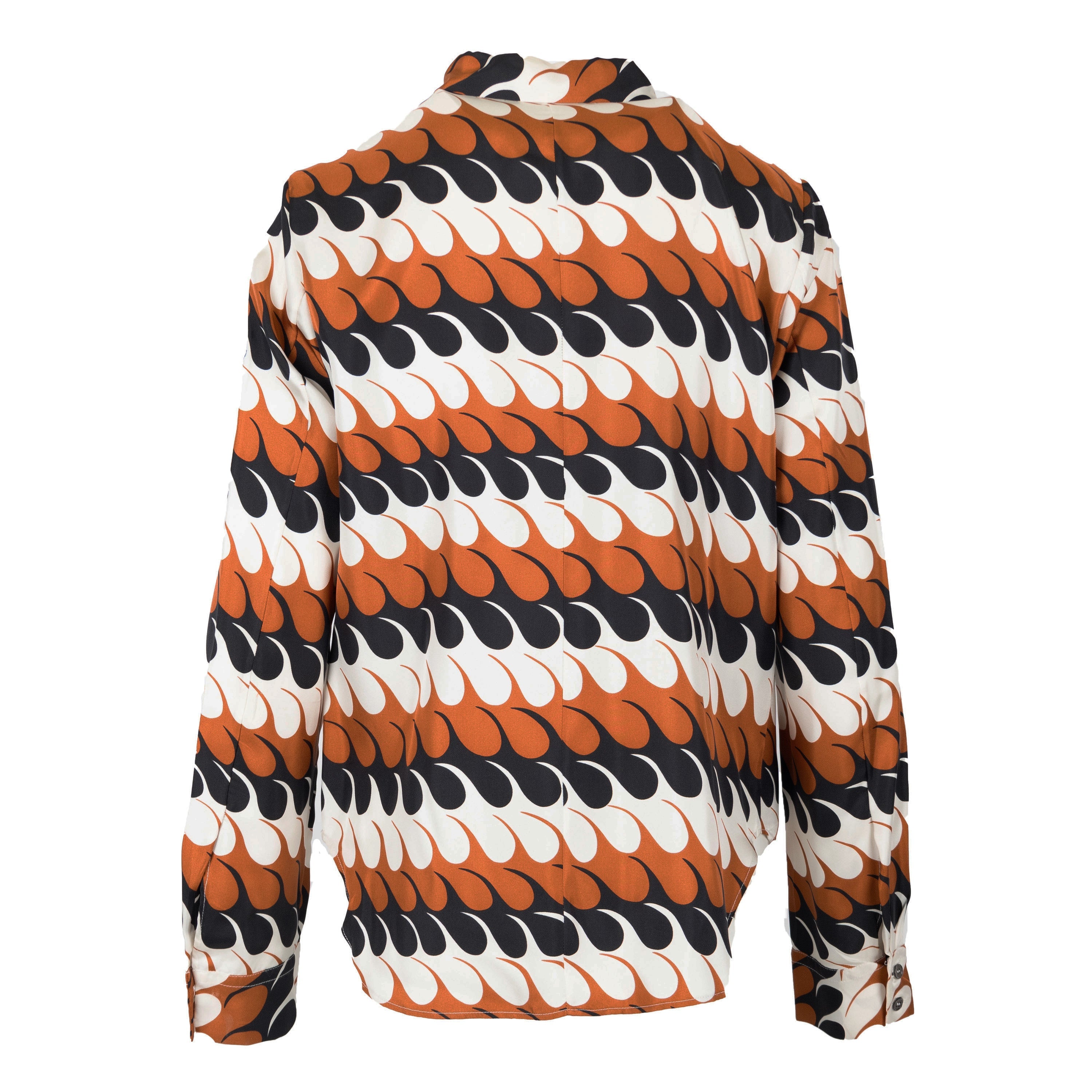 This Marni shirt is crafted from sleek silk and features a unique wave print in grounding black, white, and brick orange hues. An elevated look is created with a hidden button stand and an elongated shirt collar with elegantly finished cuff at the sleeve hem.