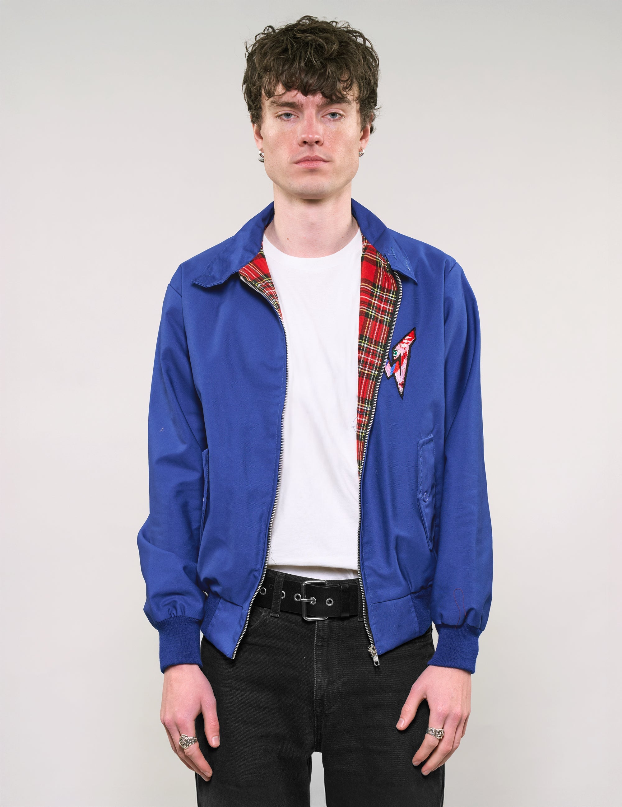 Mens Harrington Jacket from STUART TREVOR, a perfect blend of classic collegiate charm and punk-inspired flair. The interior is lined with a striking red tartan pattern, adding a pop of color and heritage-inspired detail. A zip-front closure and functional pockets bring both style and practicality, while the ribbed cuffs ensure a snug fit that complements your shape.