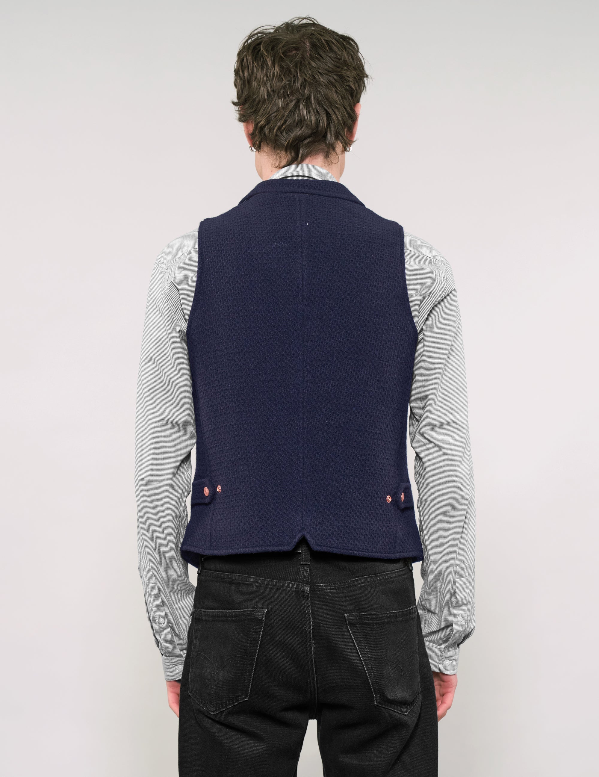Limited Edition 1950’s inspired Immortal Waistocat produced in a North London Atelier. Made using premium fabrics from one of the finest artisanal Italian fabric mills. Details include the premium quality Immortal signature copper press studs on the pockets and adjustable side tabs. Six centre front buttons. Ecru zigzag stitch contrast under collar. Lined with an ecru cotton sateen jacquard.