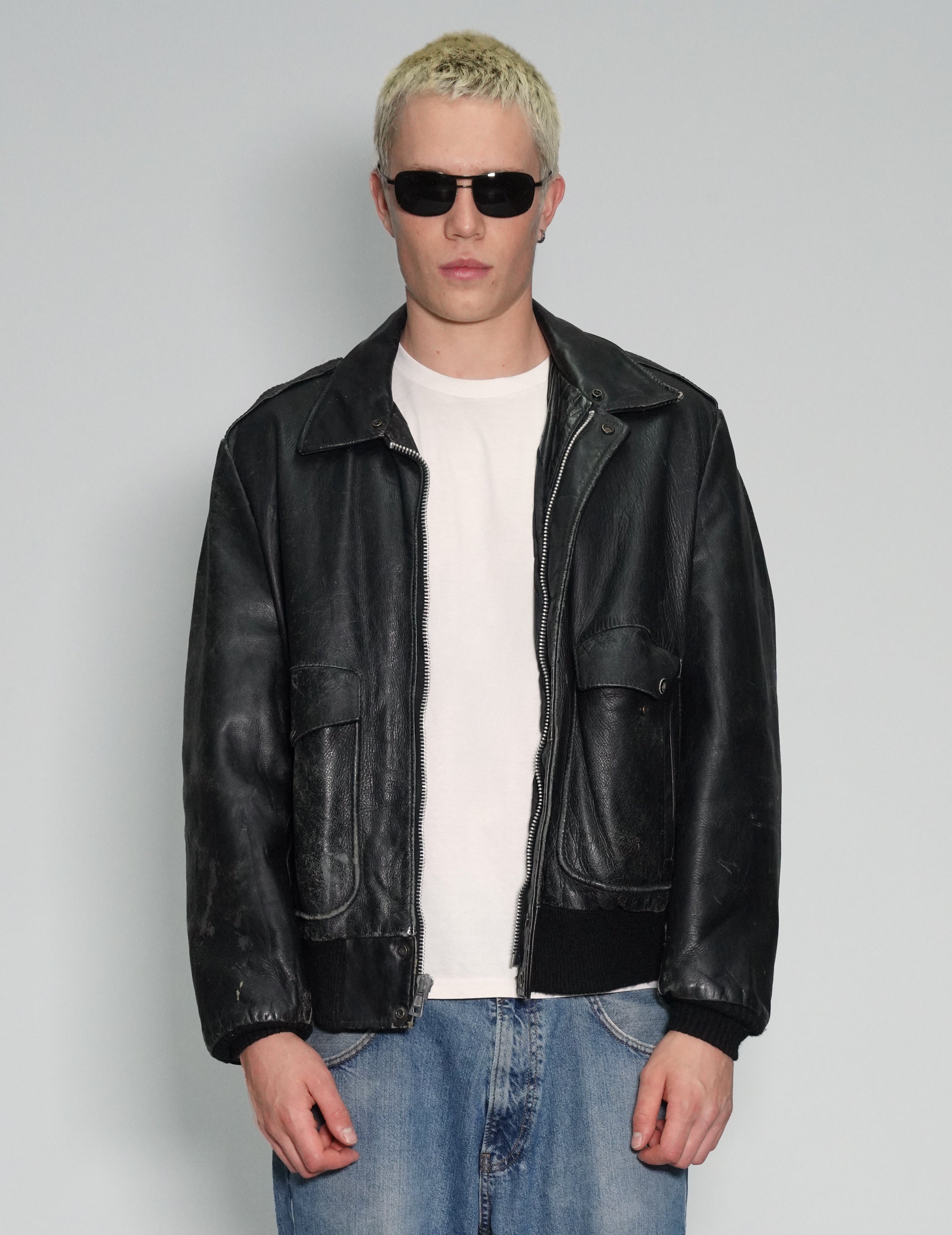 Vintage USAF-pattern bomber jacket, based on the A2 Bomber, created in WW2 for US Army Air Force pilots flying missions over Germany. This jacket is circa 1970s, so late Vietnam War era.