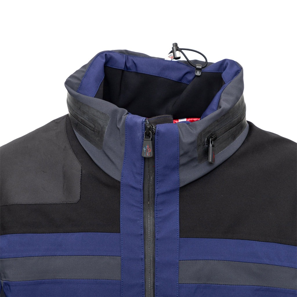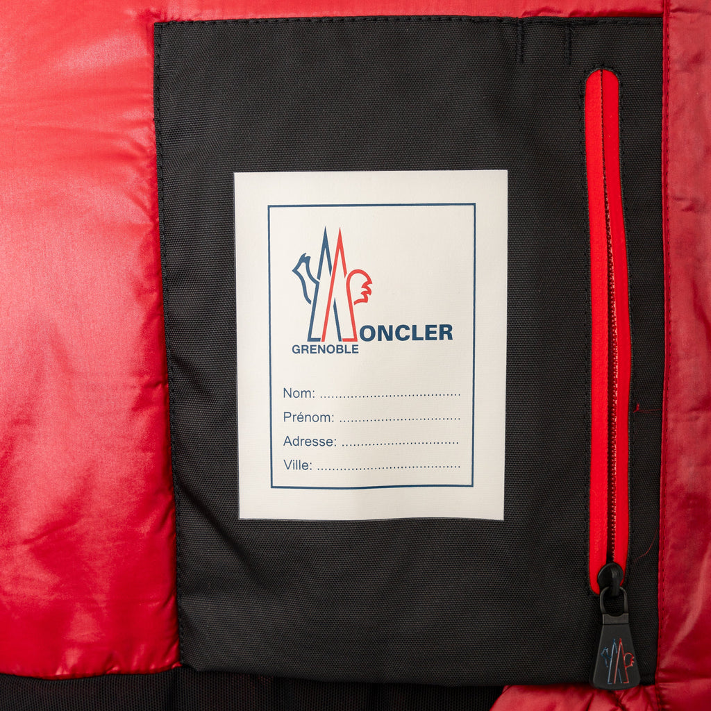 Moncler Ski Jacket has windproof nylon, insulation, heat-sealed seams, water-resistant zip, wrist gaiters, and a ski pass pocket for ultimate warmth.
