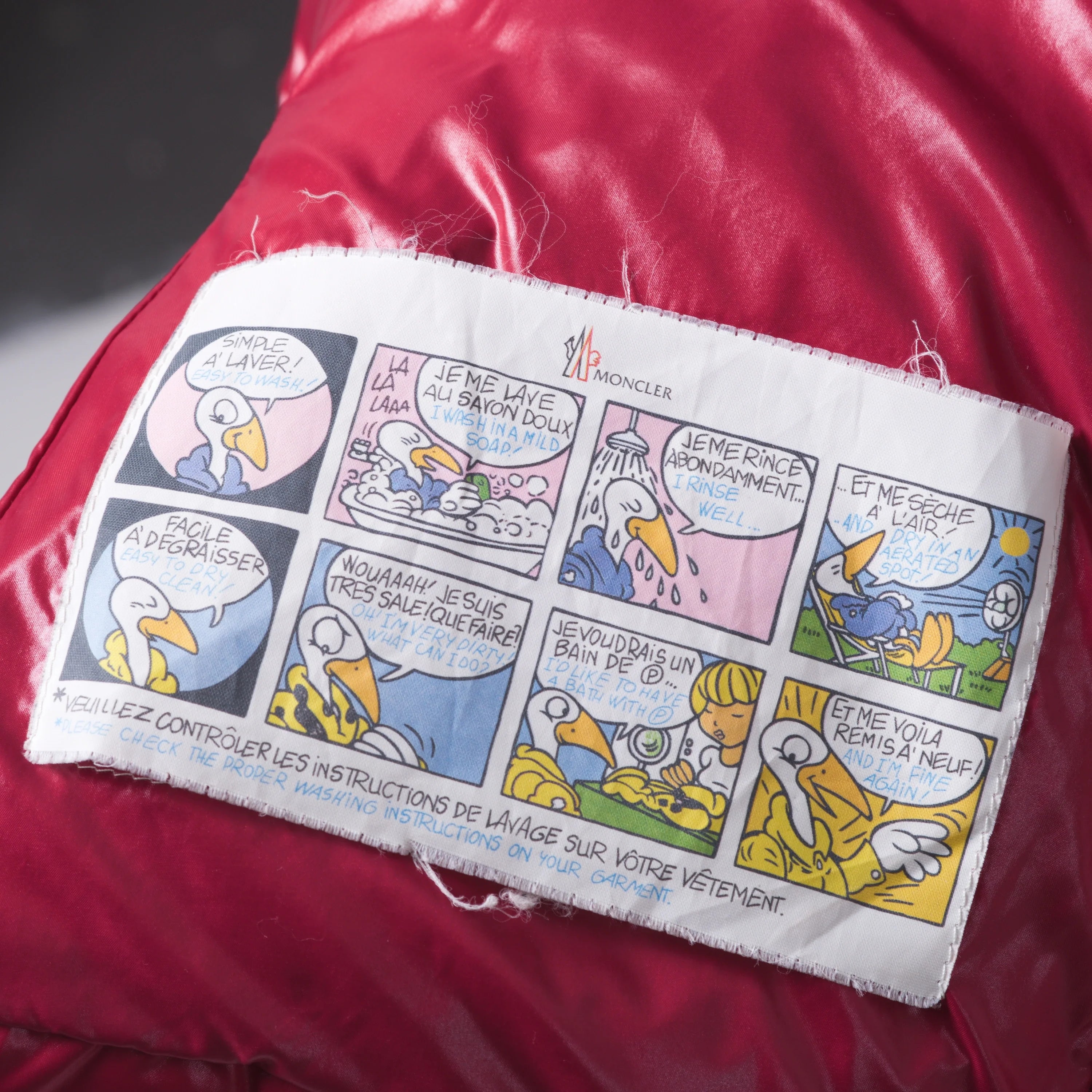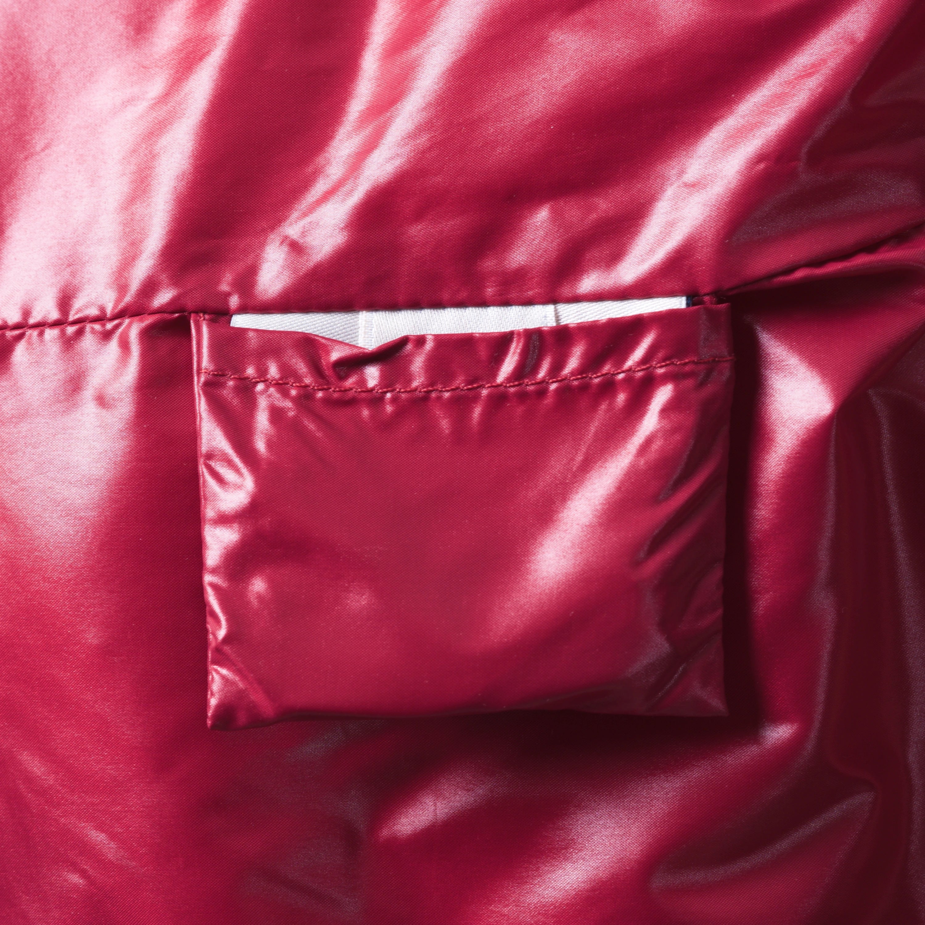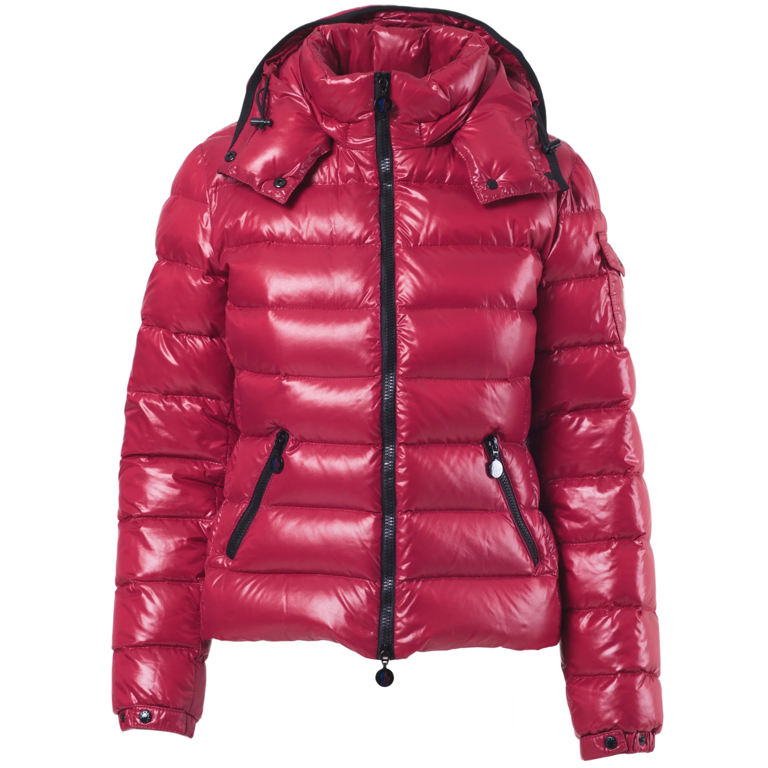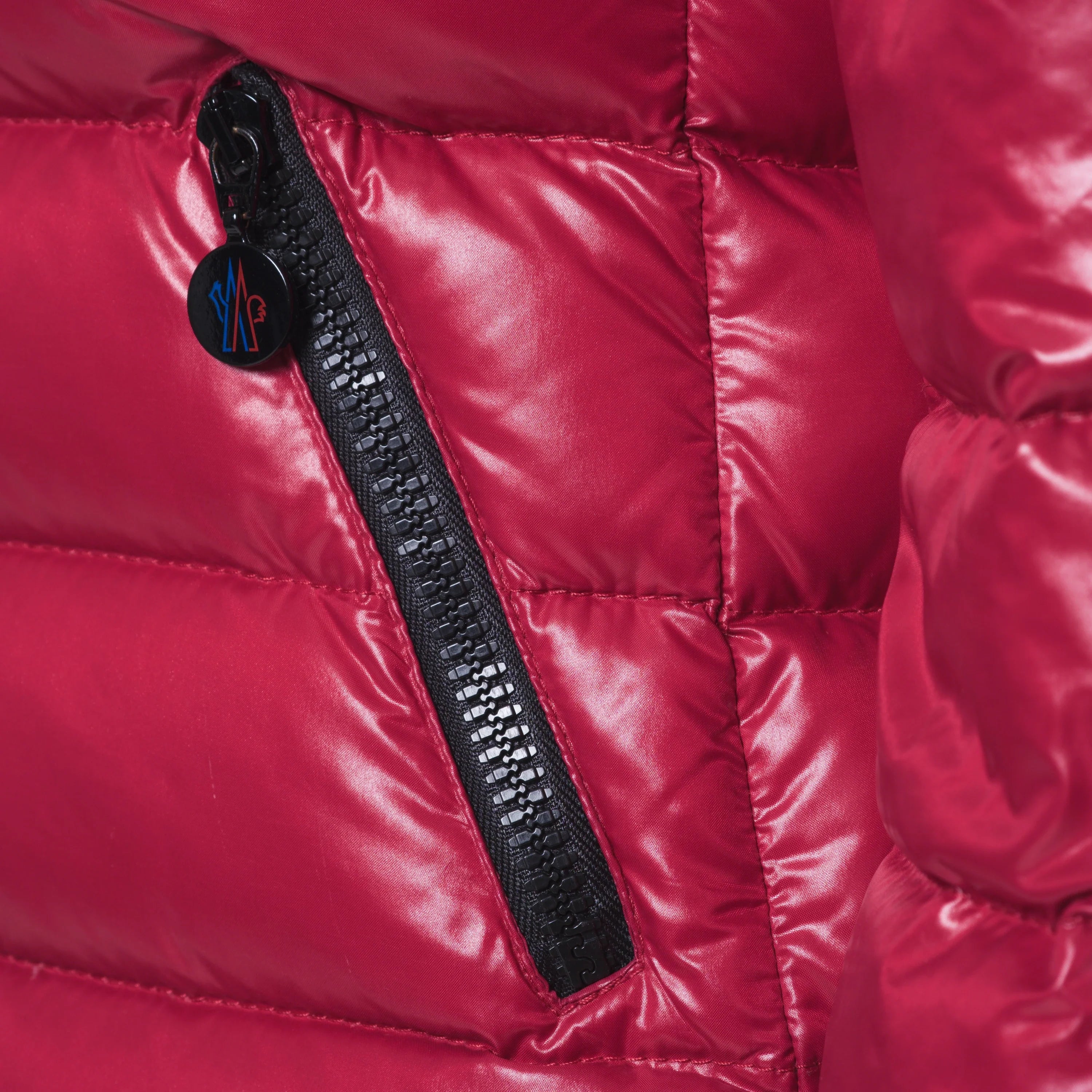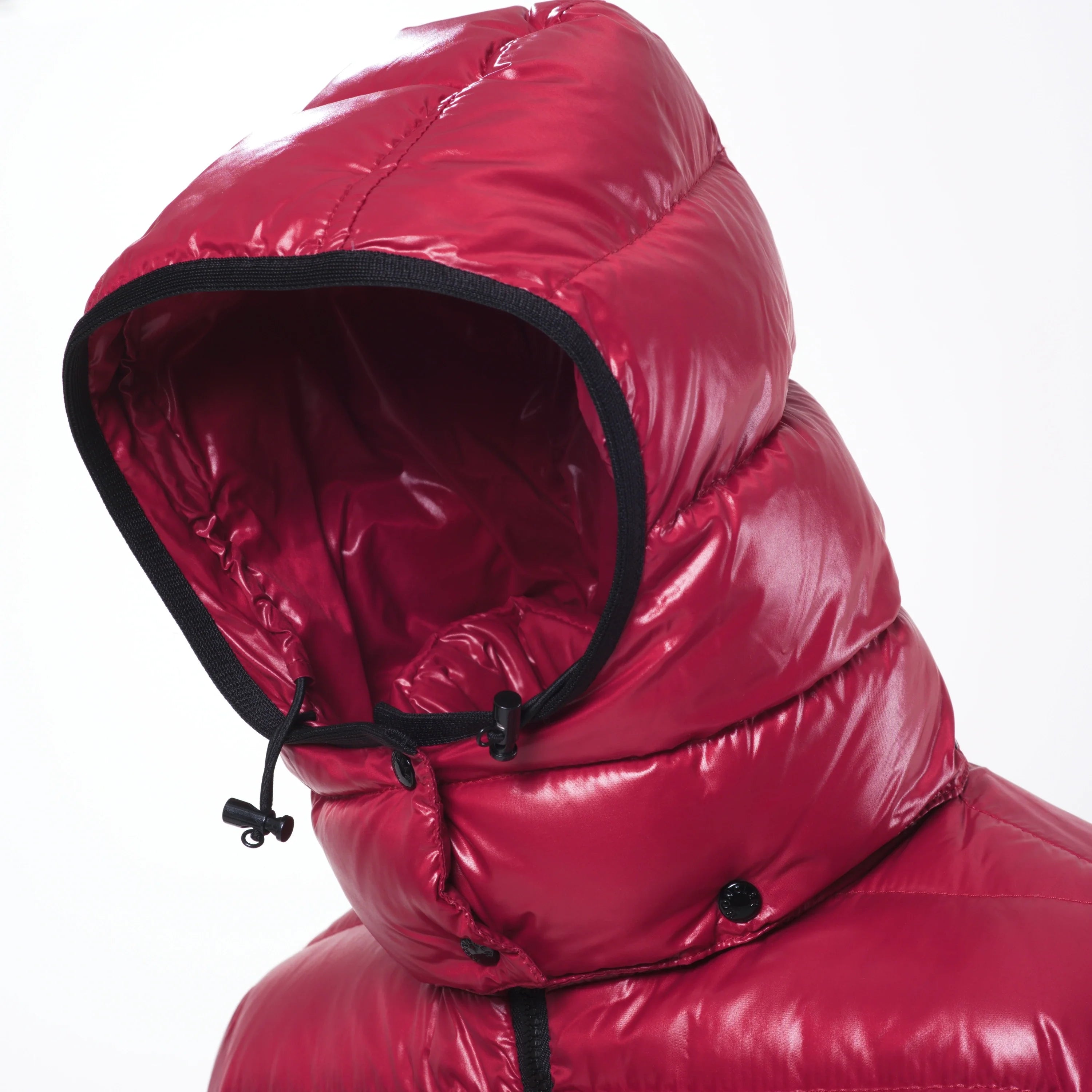 This Moncler women’s glossy red down jacket features a compact padded construction designed to ensure comfort. The structure is defined by a front zip closure and an integrated hood.