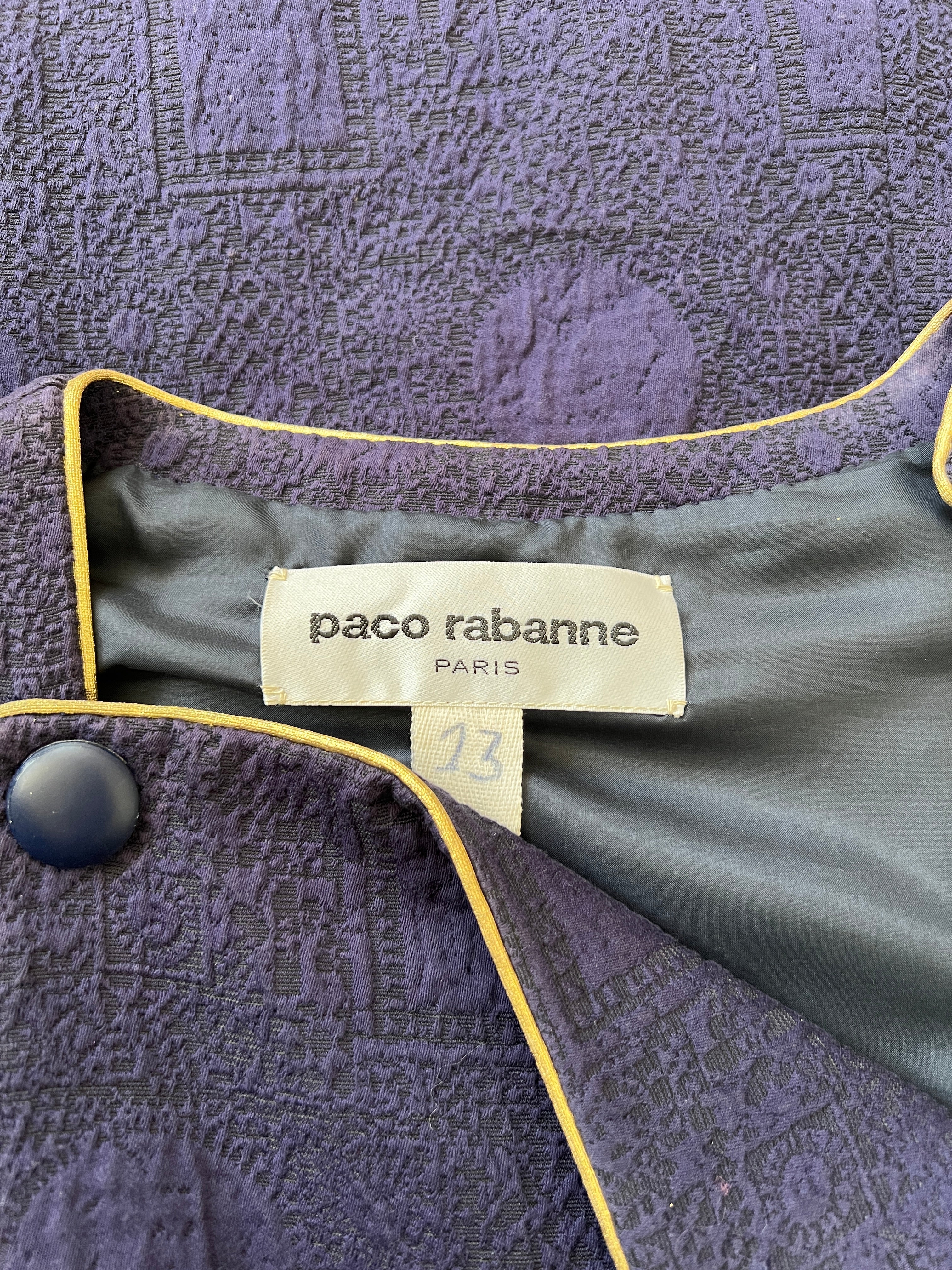1980s Paco Rabanne Haute Couture Navy Cut-out Coat Dress with Gold Lame Trim
