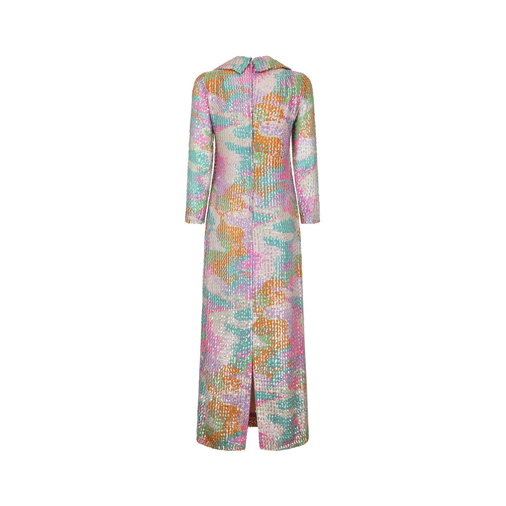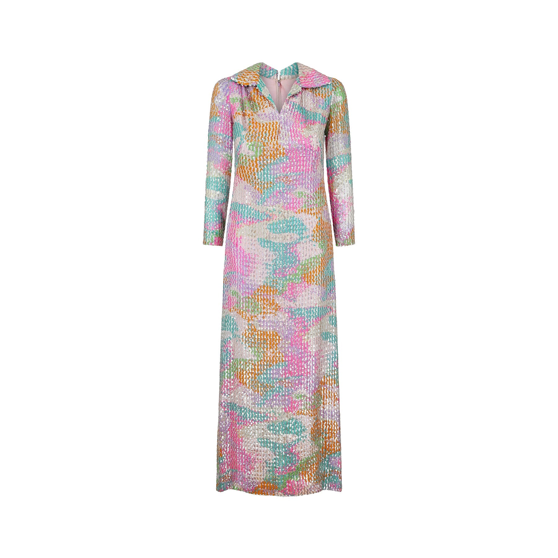 1970s Lee Jordan Multi-Coloured Sequin Maxi Dress