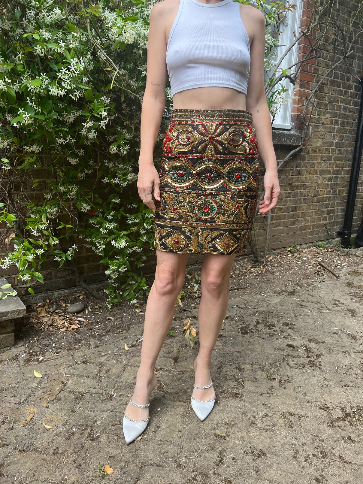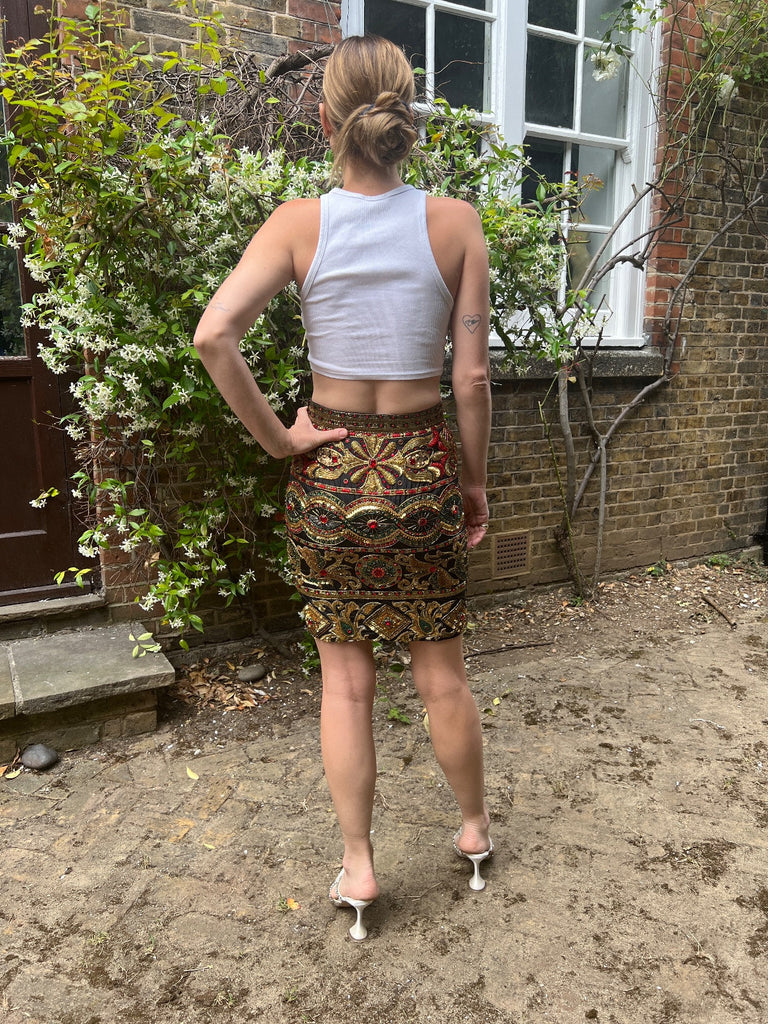 1990s Genny By Gianni Versace Baroque Beaded and Sequinned Skirt