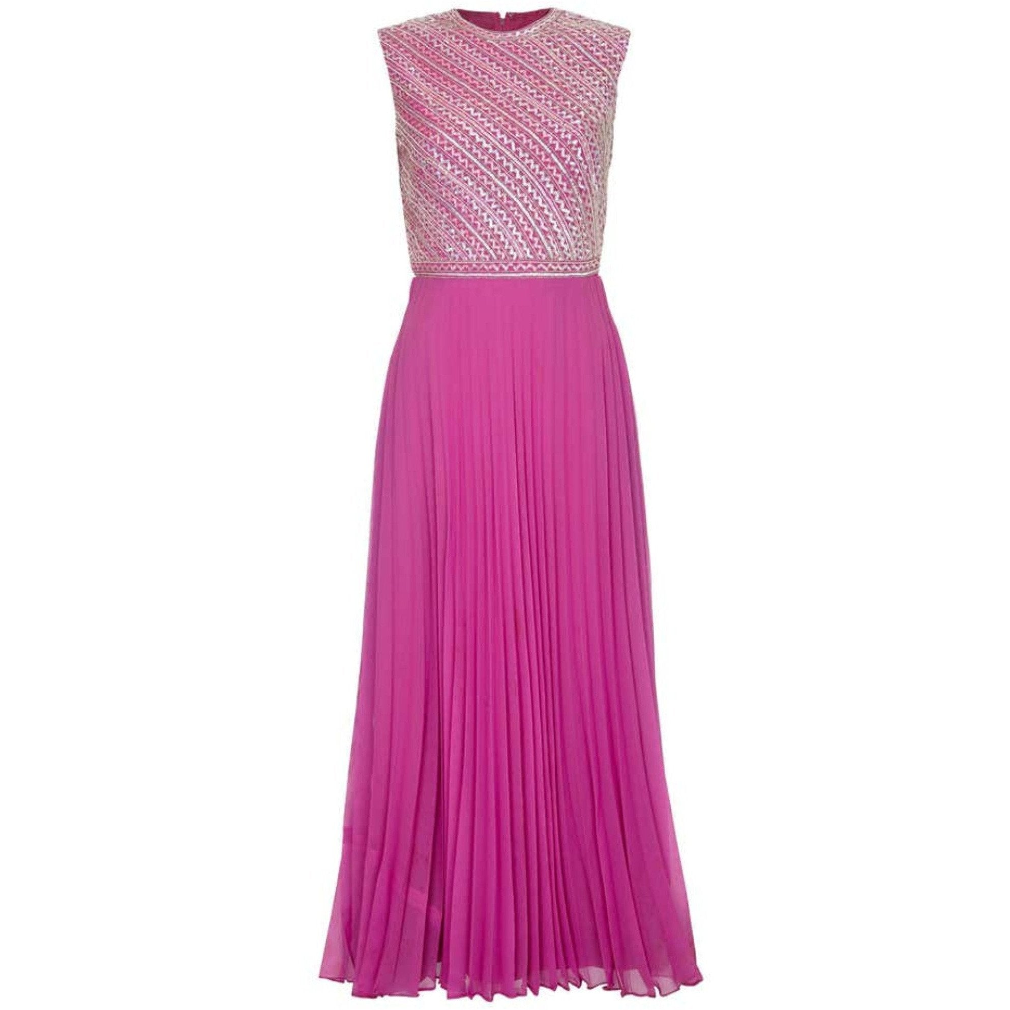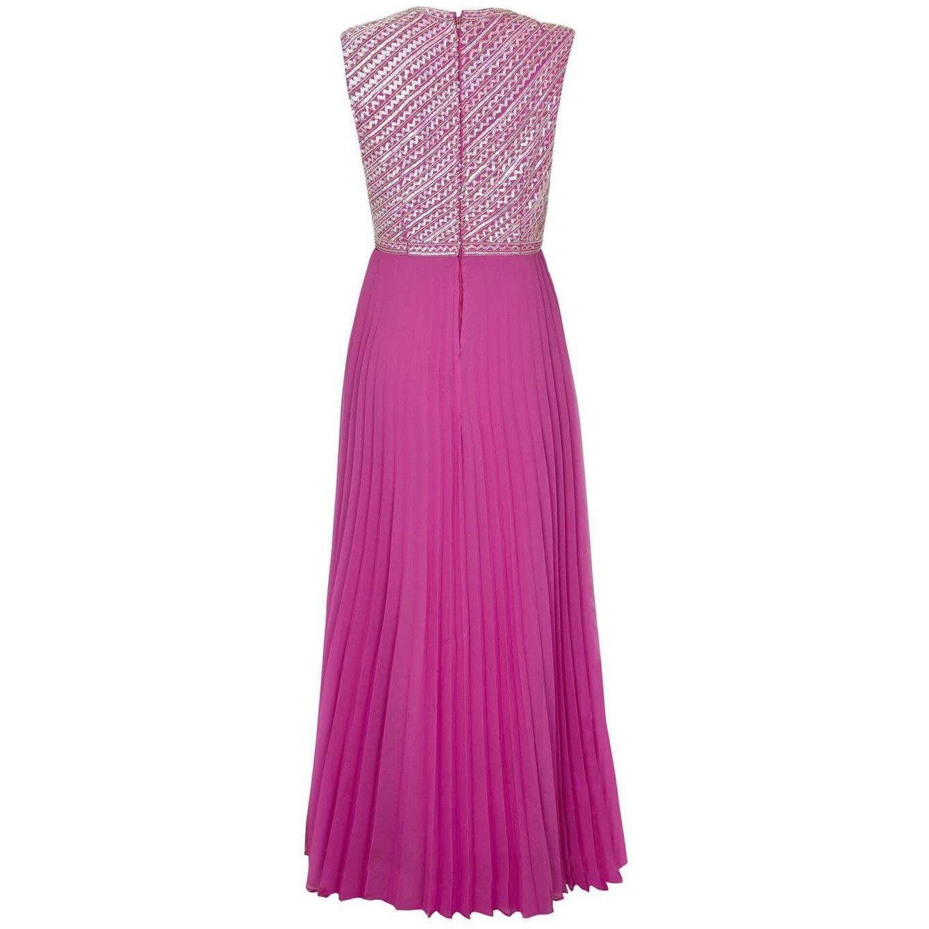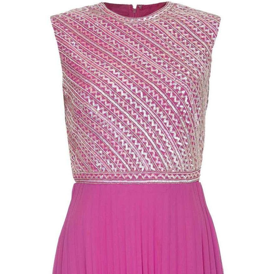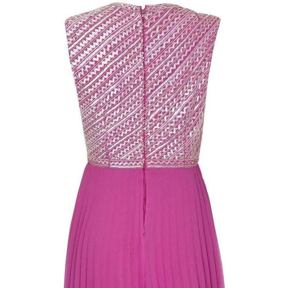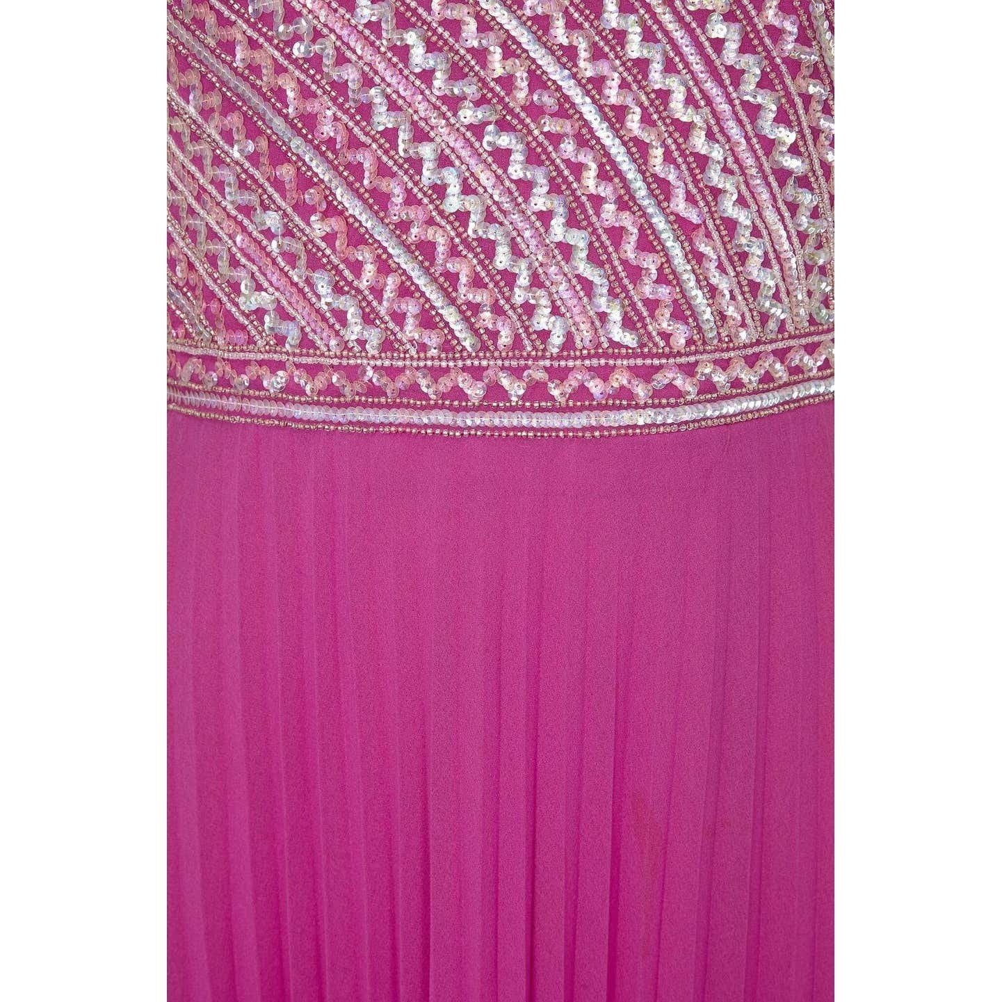 Hannalore of London 1960s Pink Silk Chiffon Sequined Pleated Dress
