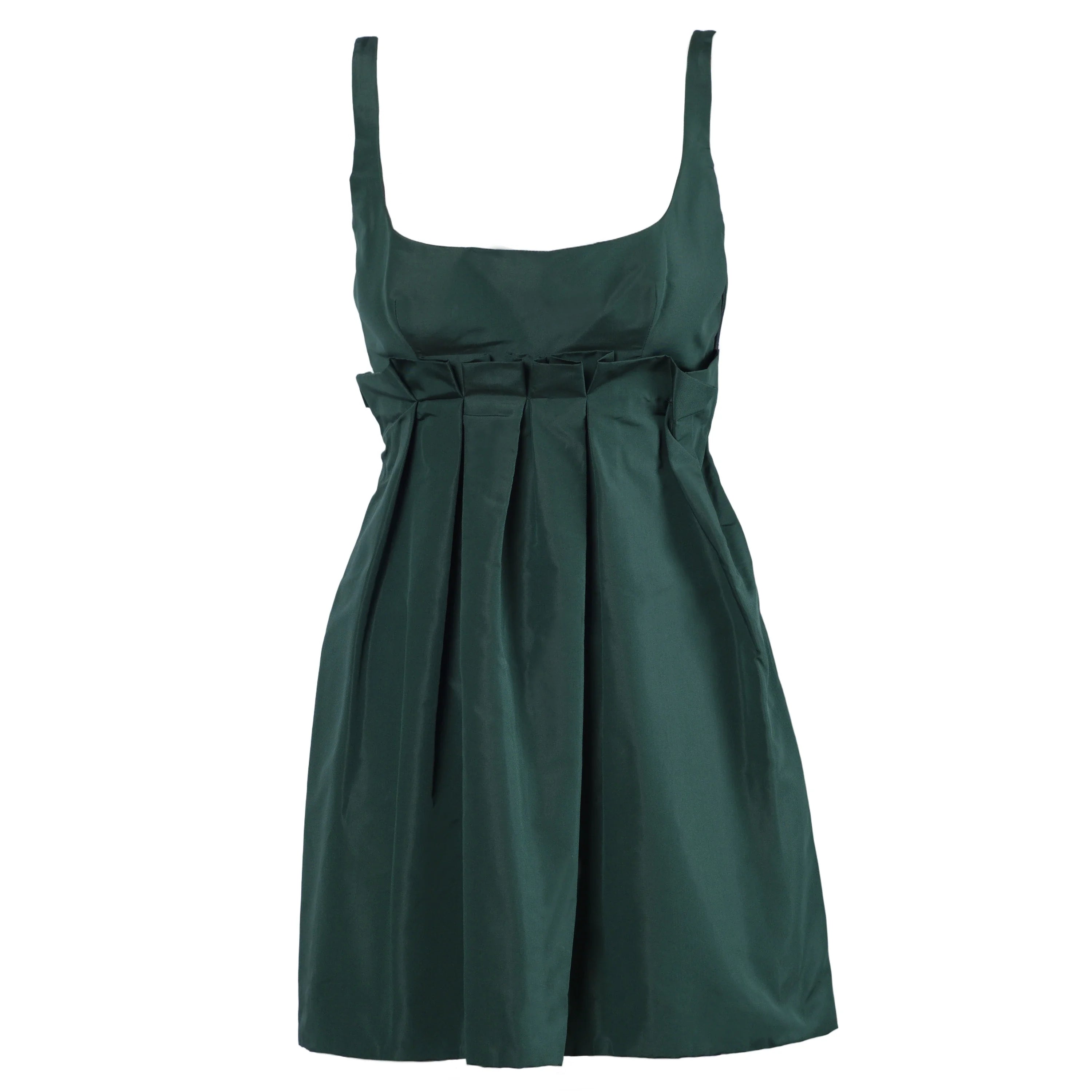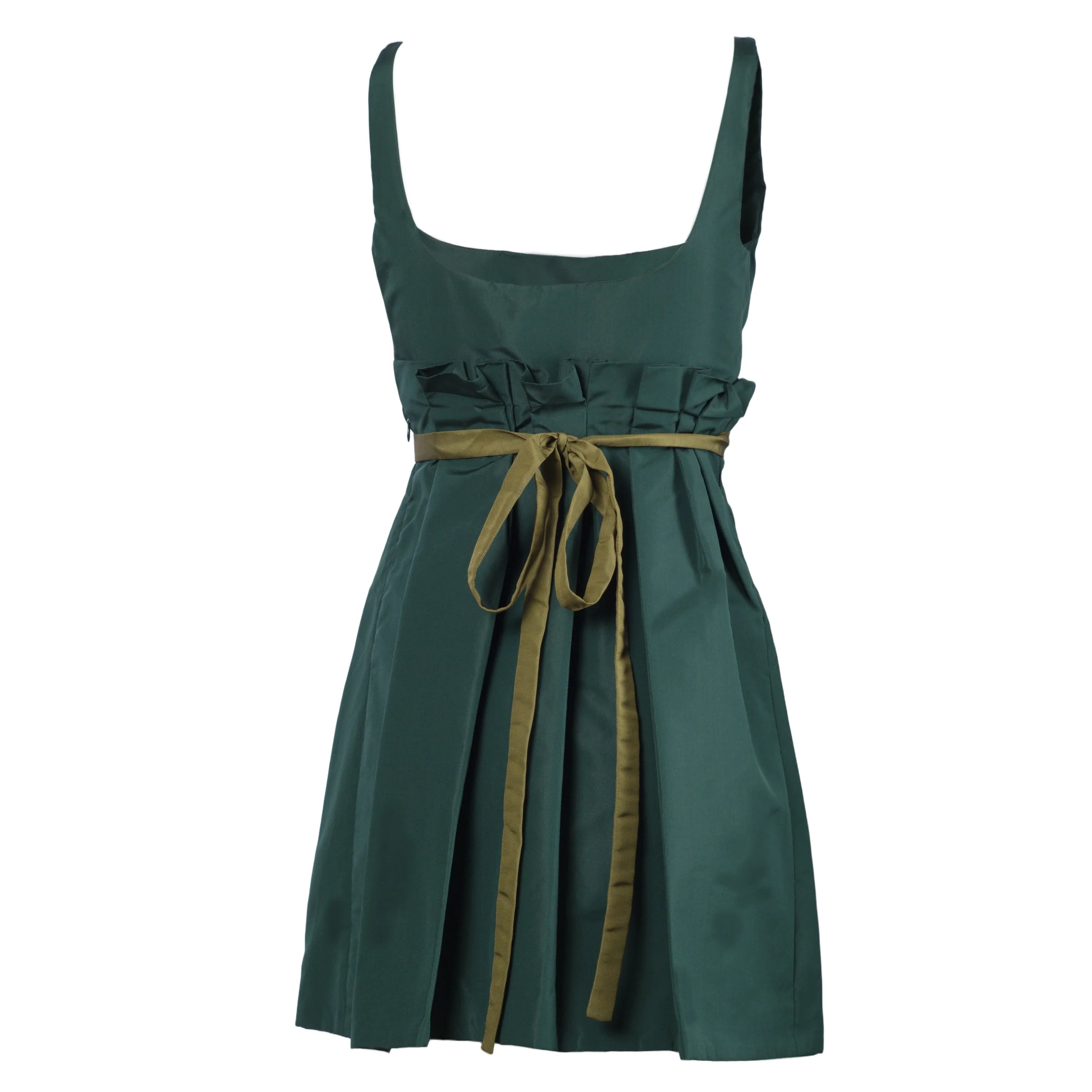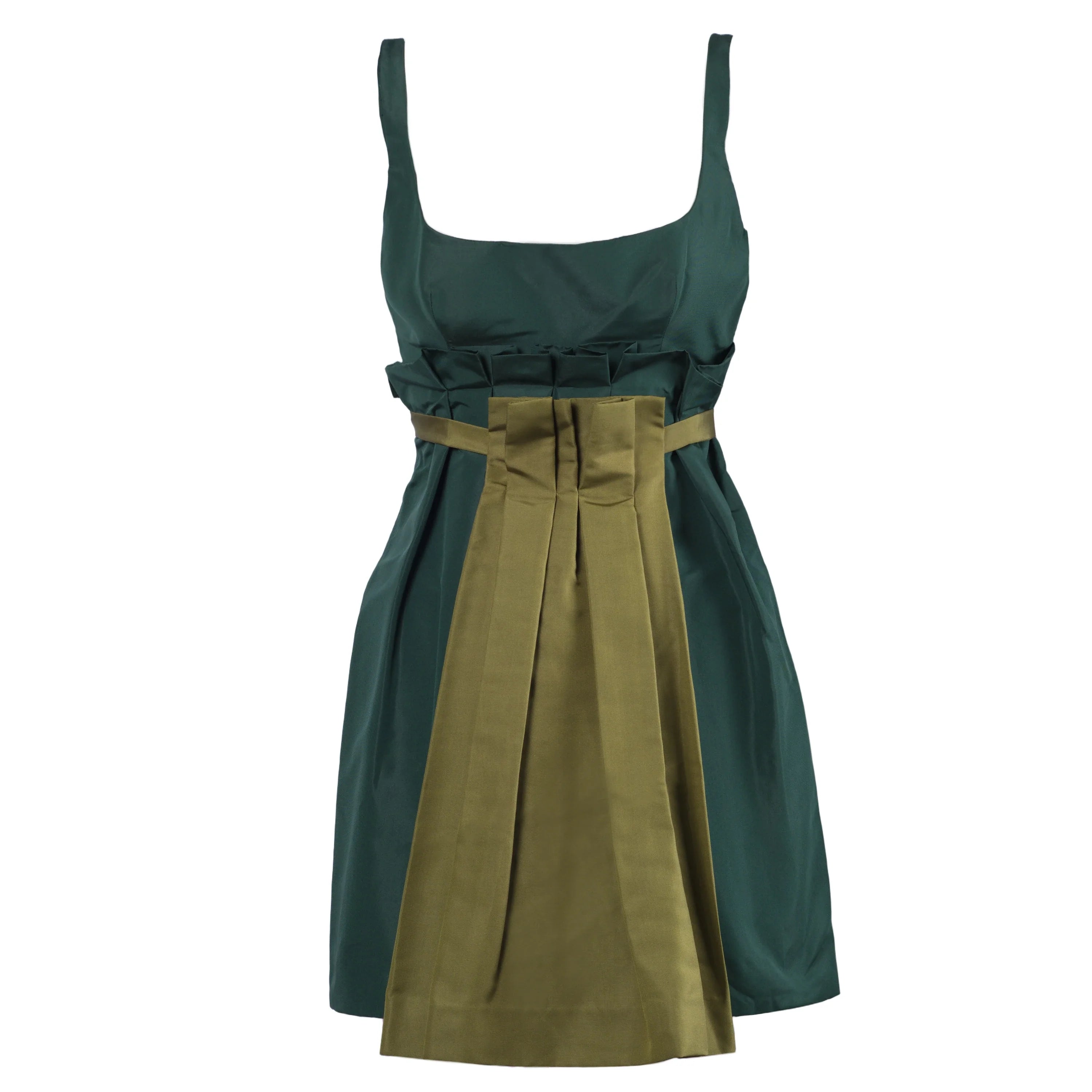 Prada Green Mini Dress With Contrast Pleated Insert - '10s