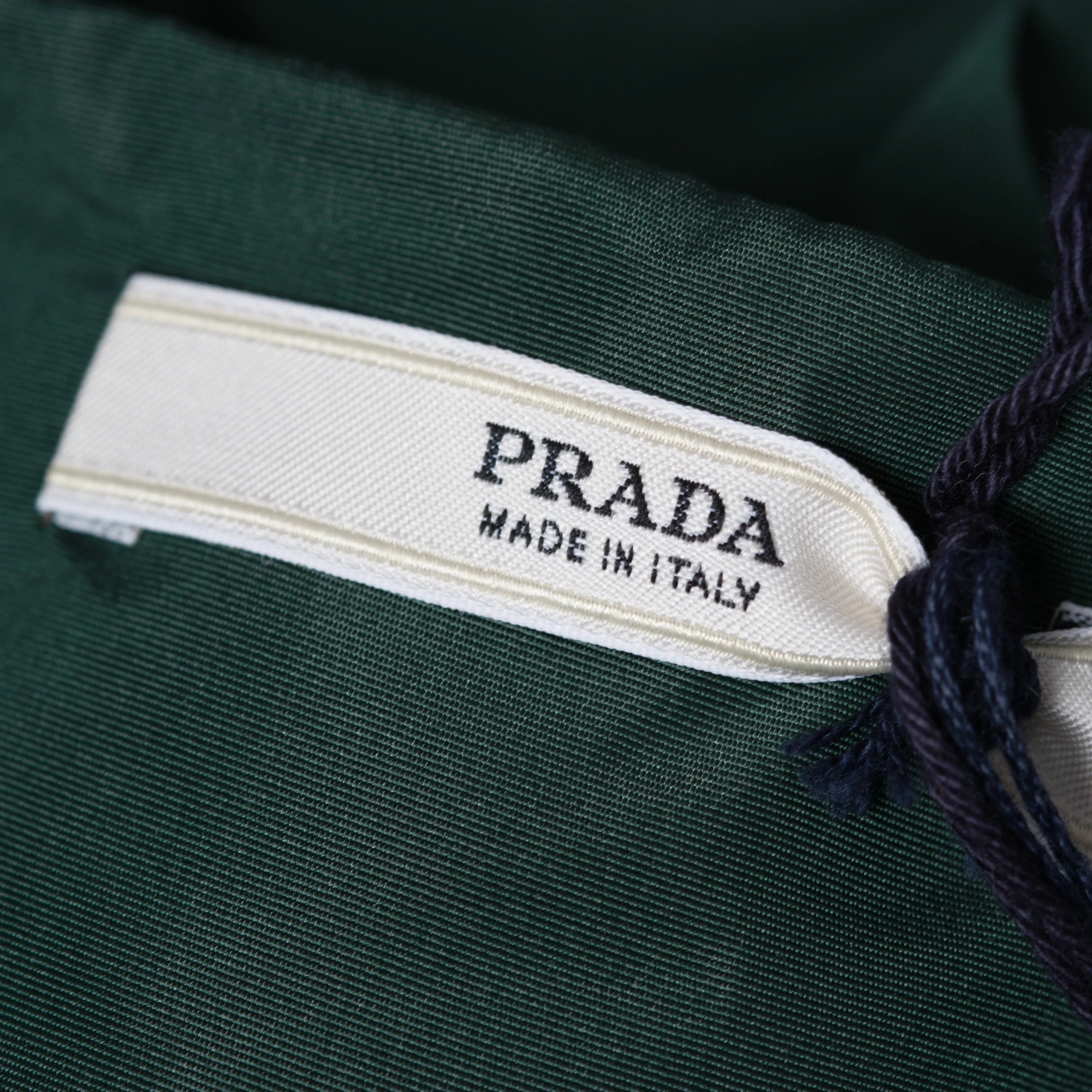 Prada fir-green mini dress, featuring a refined contrast pleated insert in light green, removable, allowing you to wear just the dress for a more minimal and versatile look. The combination of shades creates a sophisticated and dynamic effect, giving your outfit a unique and irresistible touch of personality.
