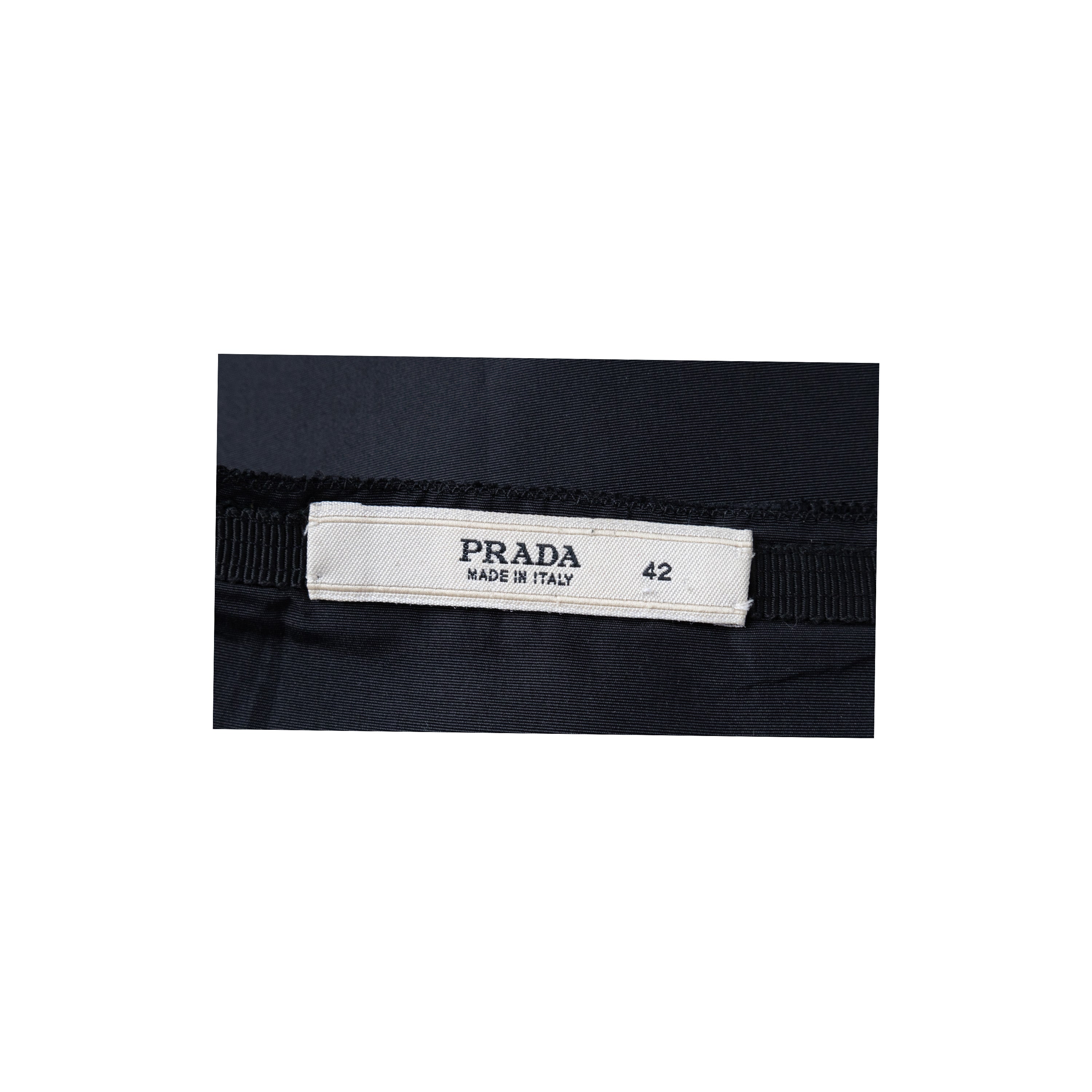 This Prada skirt is expertly crafted from a luxurious blend of silk and polyester. With elegant pleats that add fullness and volume, this black skirt is perfect for any occasion. Featuring a side zipper closure for a seamless and comfortable fit.