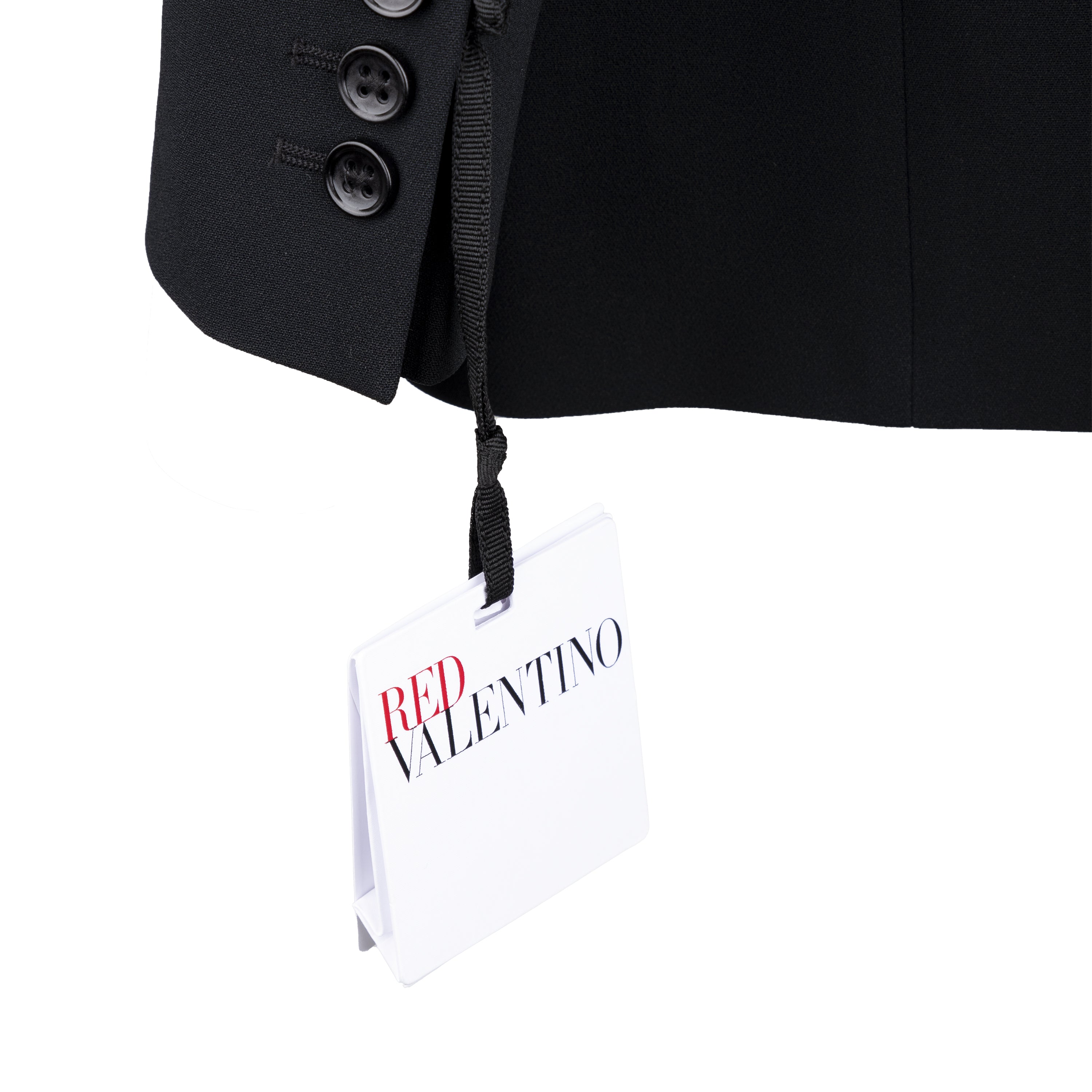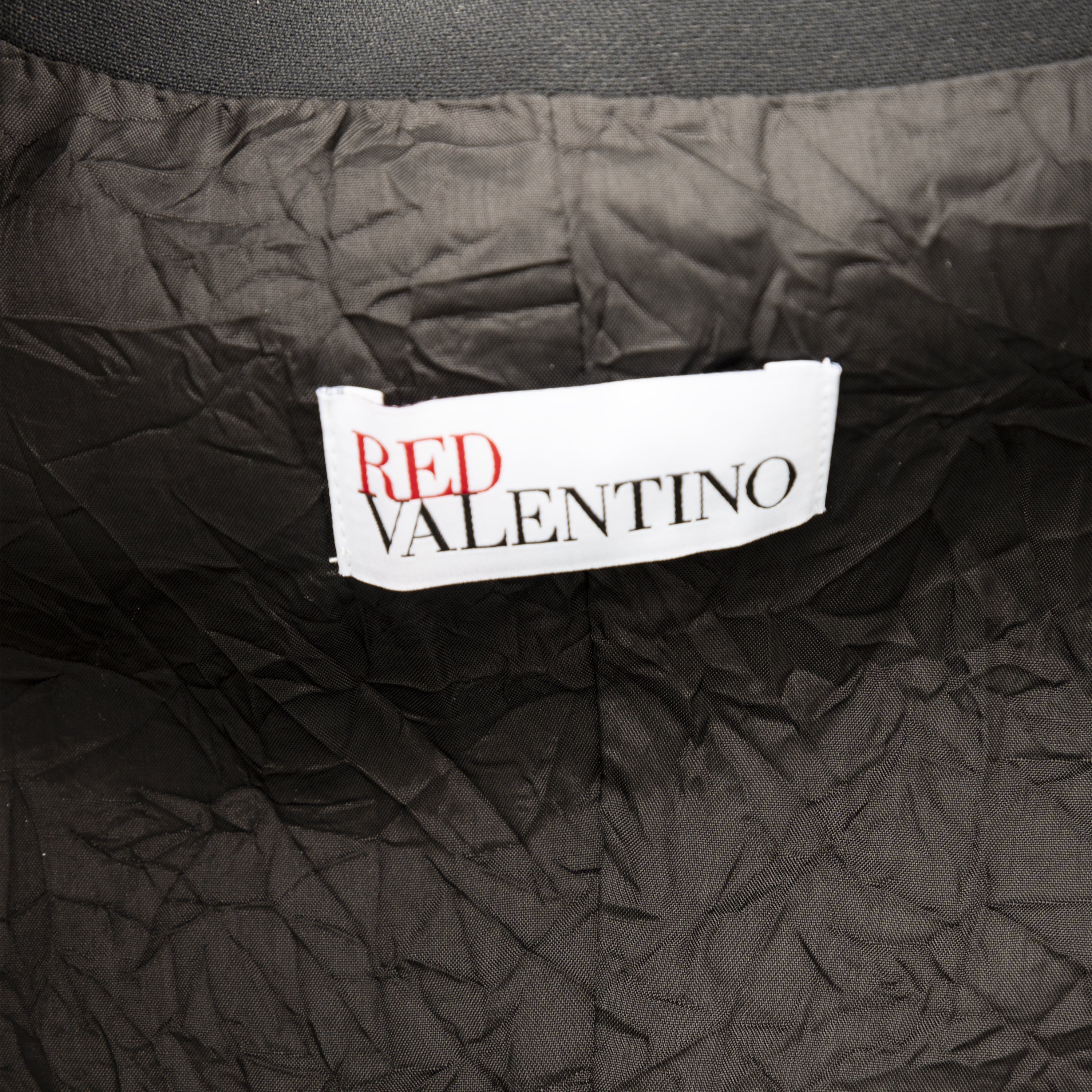 Expertly crafted in Italy, the Red Valentino blazer offers a classic and polished look. The single-breasted blazer features a notch lapel collar and front closure with two buttons for a sleek silhouette. The lining of the blazer features a textured satin fabric. With a curved hem and three pockets, this black blazer is a versatile addition to any wardrobe.