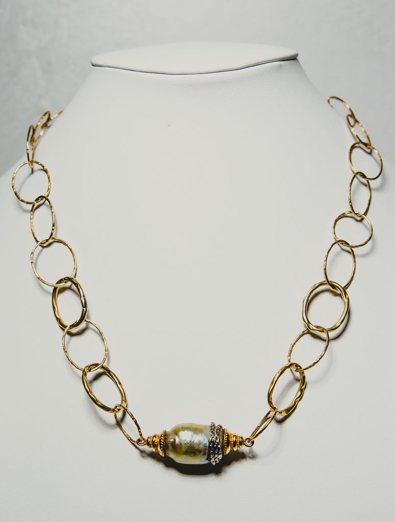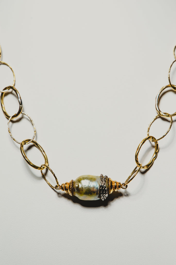 Pistachio Keshi Tahitian Pearl and Gold Necklace.