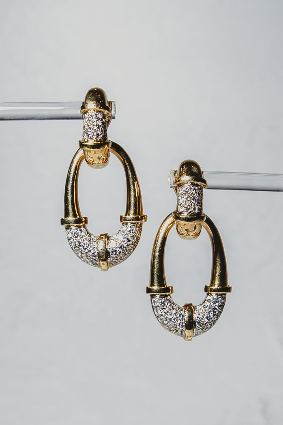 Take your accessory game to the next level with these one-of-a-kind doorknocker earrings! Crafted with 18K gold and dazzling diamonds, these statement earrings are sure to turn heads. Knock, knock, who's there? Fabulous!