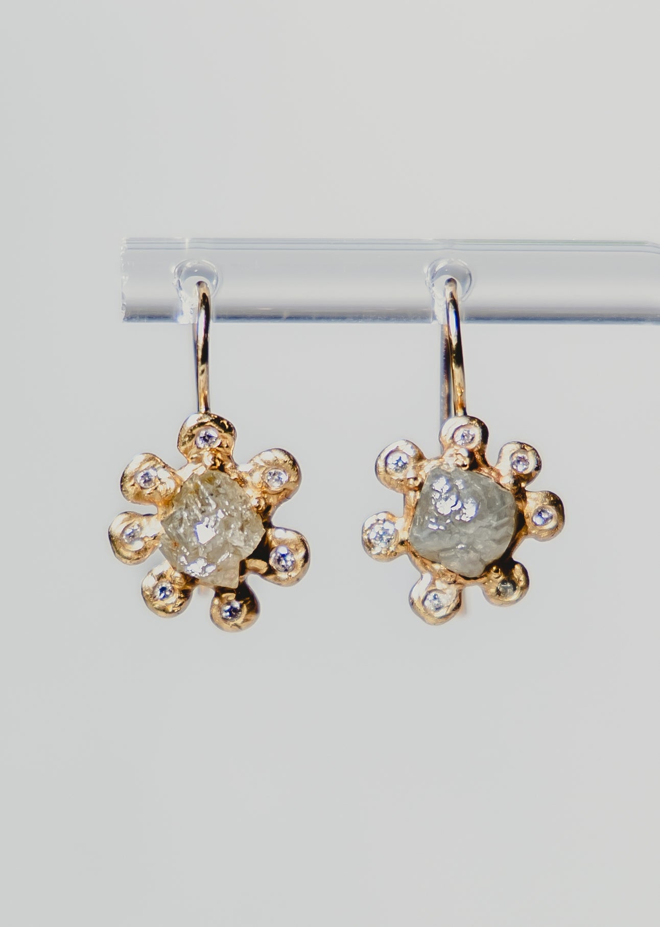 These Raw Diamond Flower Earrings are a vintage-inspired way to add some sparkle to your day! Crafted in 14K gold, their gorgeous retro style is dainty and sweet - not to mention totally eye-catching!