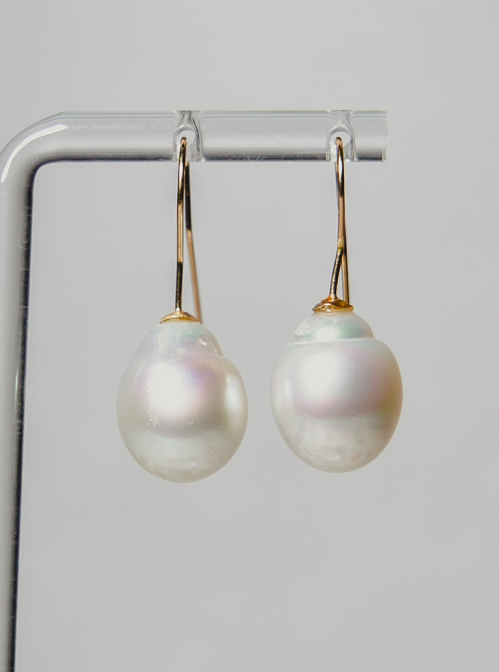 White South Sea Pearl Drop Earrings in 14K Gold.