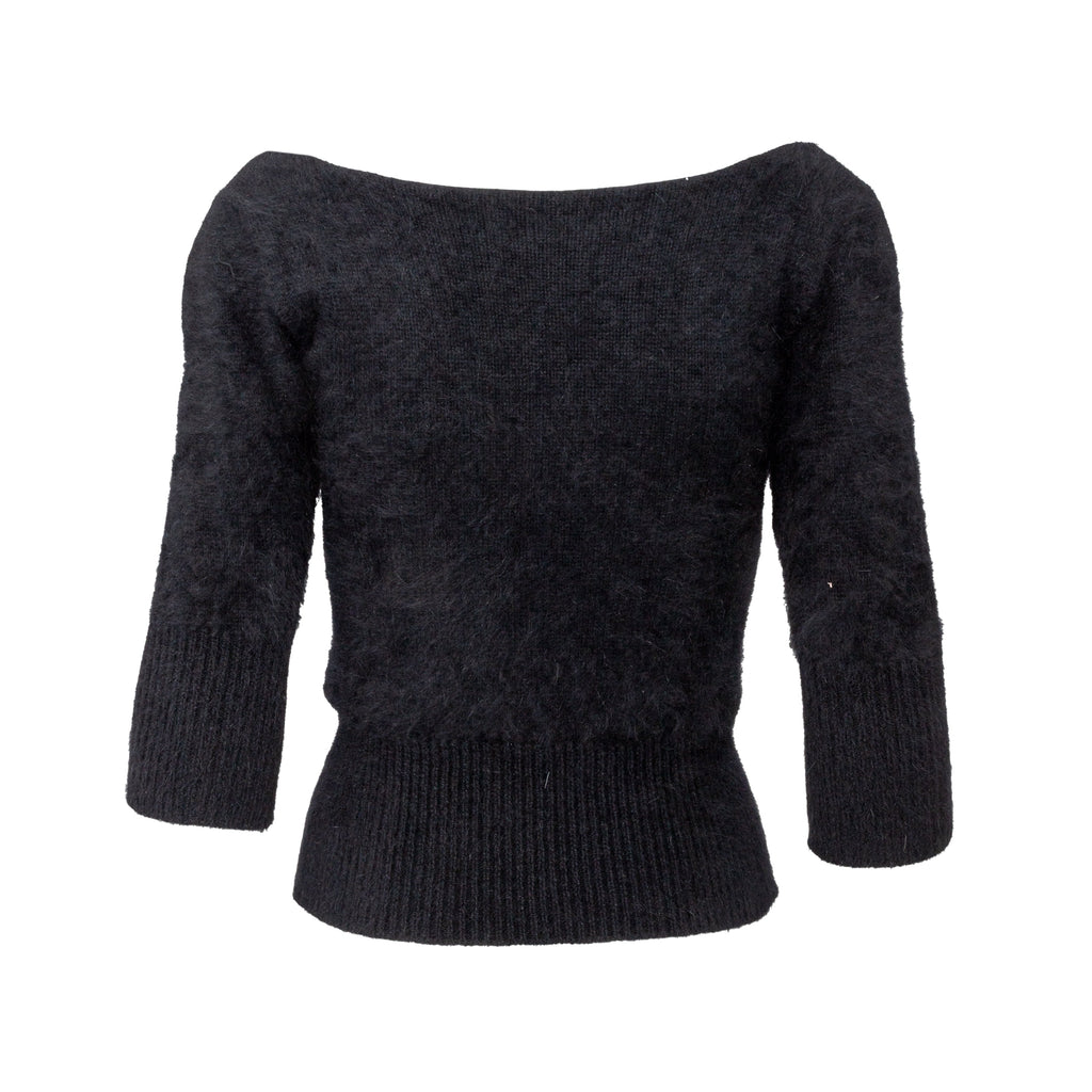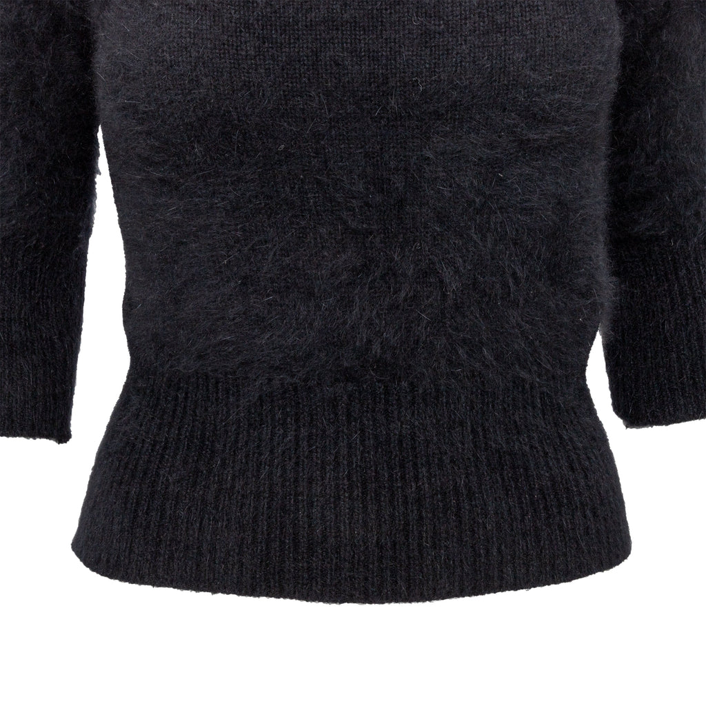 Stay cozy and chic with the Roberto Cavalli Short Wool Top. Made from soft, fuzzy wool material, this short sweater top offers both warmth and comfort. Featuring a deep spread neckline and quarter sleeves, it's the perfect choice for mid-season wear.