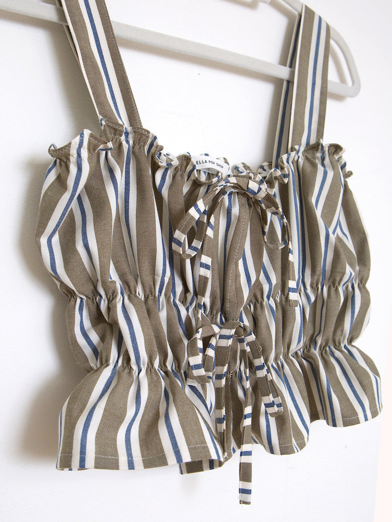 Summer cropped top made in beautiful blue cotton stripes.