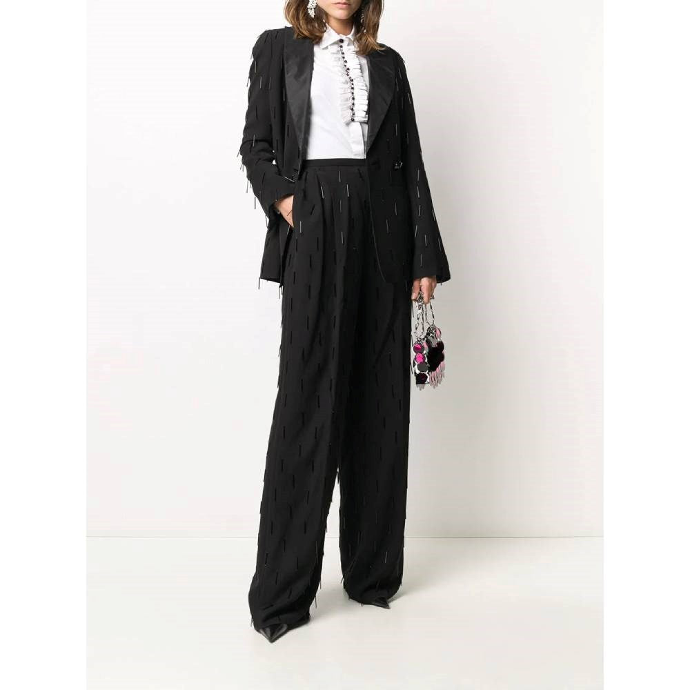 Gianfranco Ferrè white cotton shirt. Frills embellished with black stones and rhinestones. Classic collar, frontal buttons closure and black button on the cuffs.