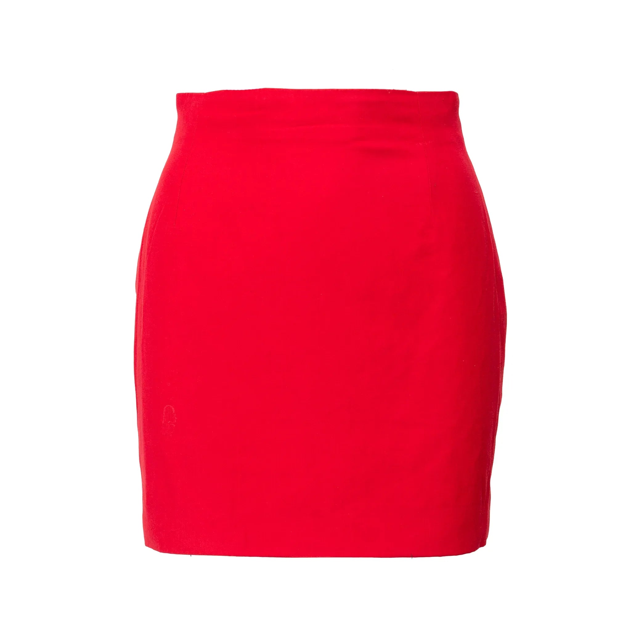 Bold red mini skirt by Gianni Versace, featuring a sleek fitted silhouette in soft wool blend fabric. Easy to style for both casual and elegant looks.