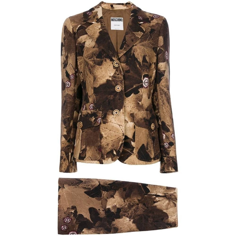 Moschino Brown Floral Pattern Wool Suit - '90s