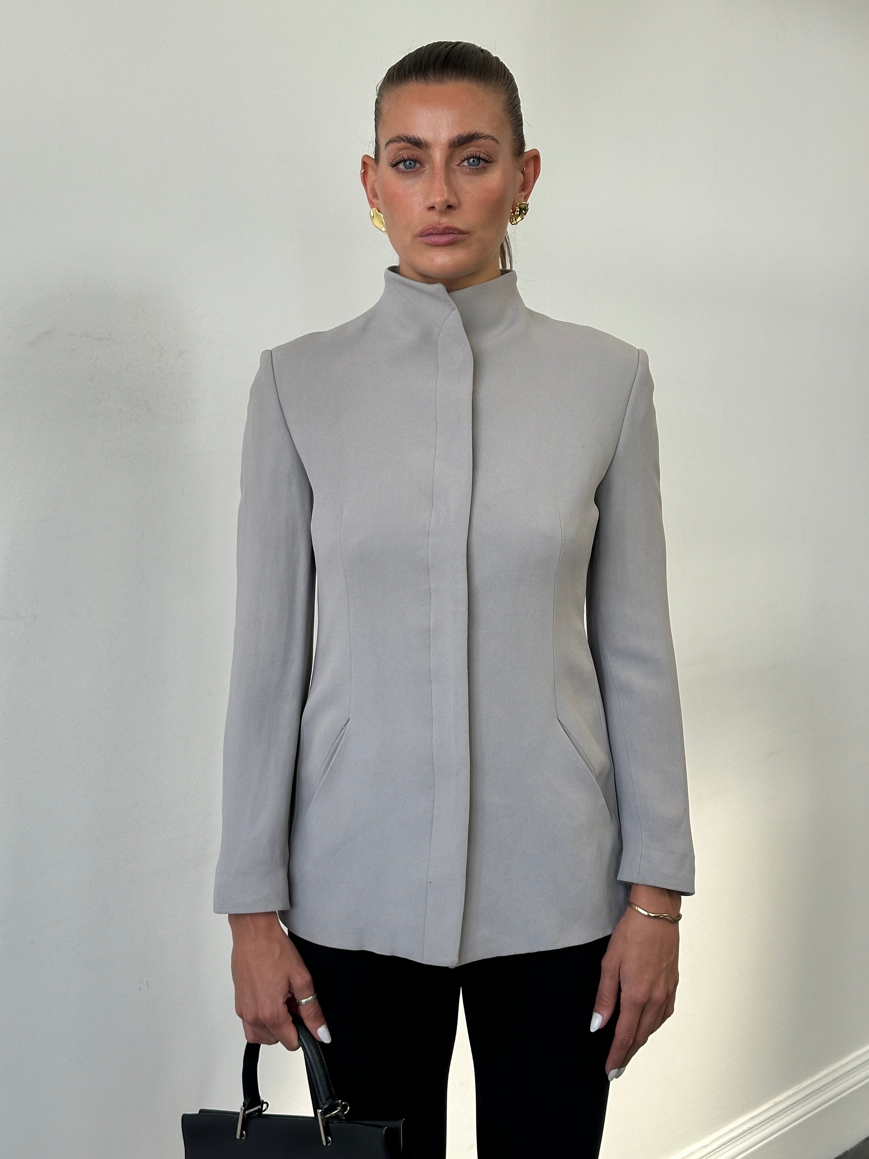 Emporio Armani High Neck Fitted Minimal Blazer Jacket - S/M