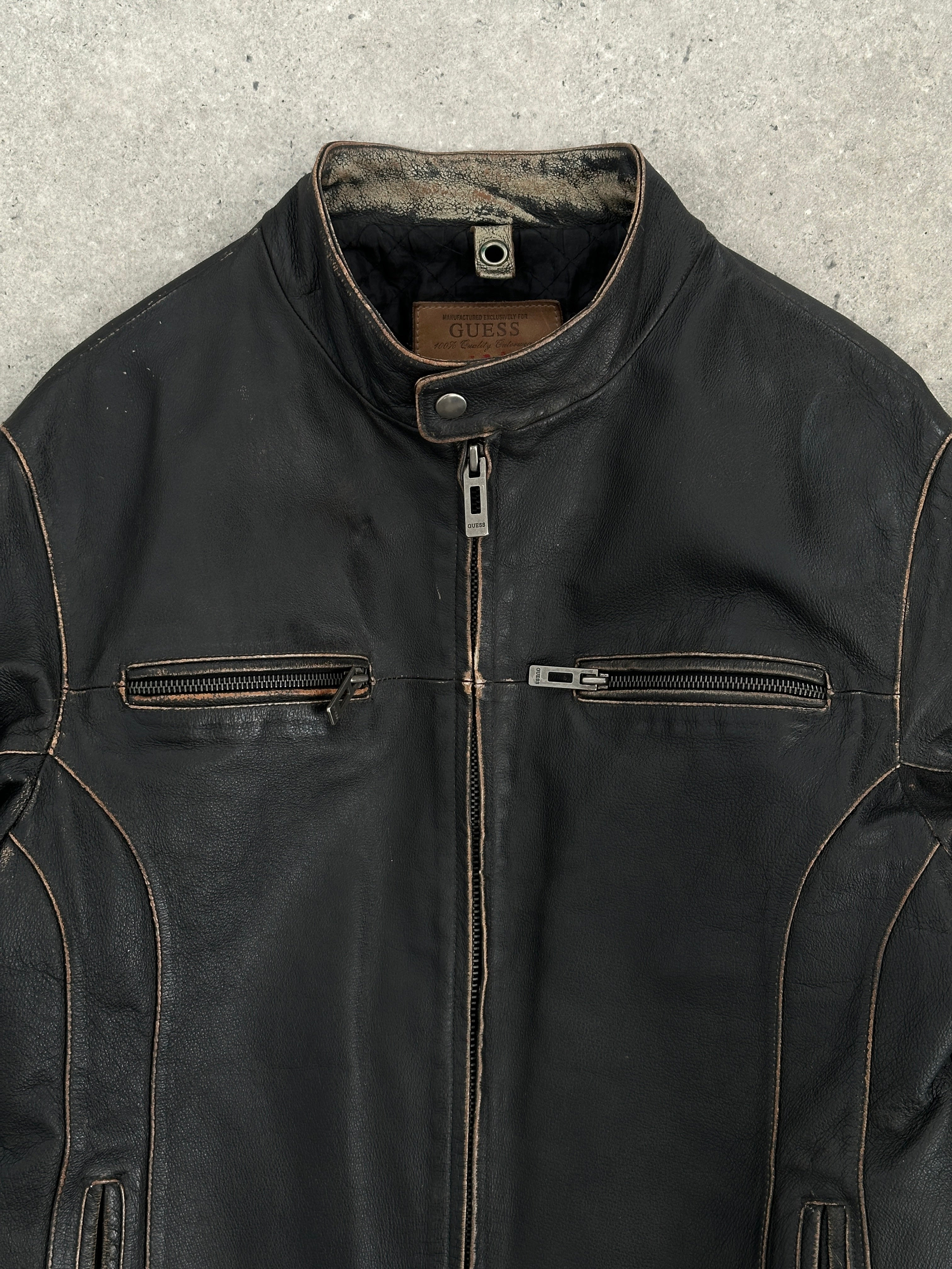Guess Distressed Moto Leather Jacket - L