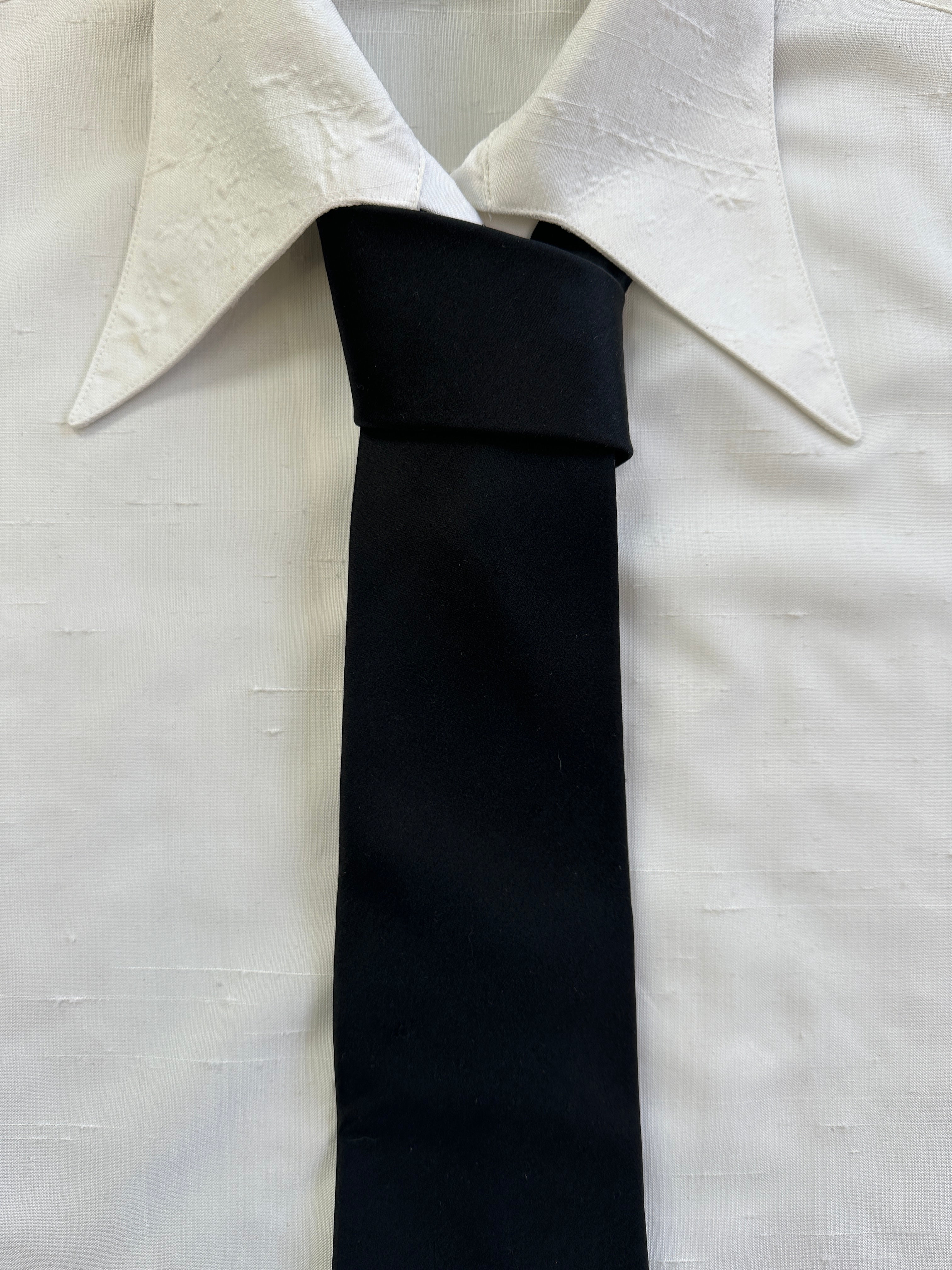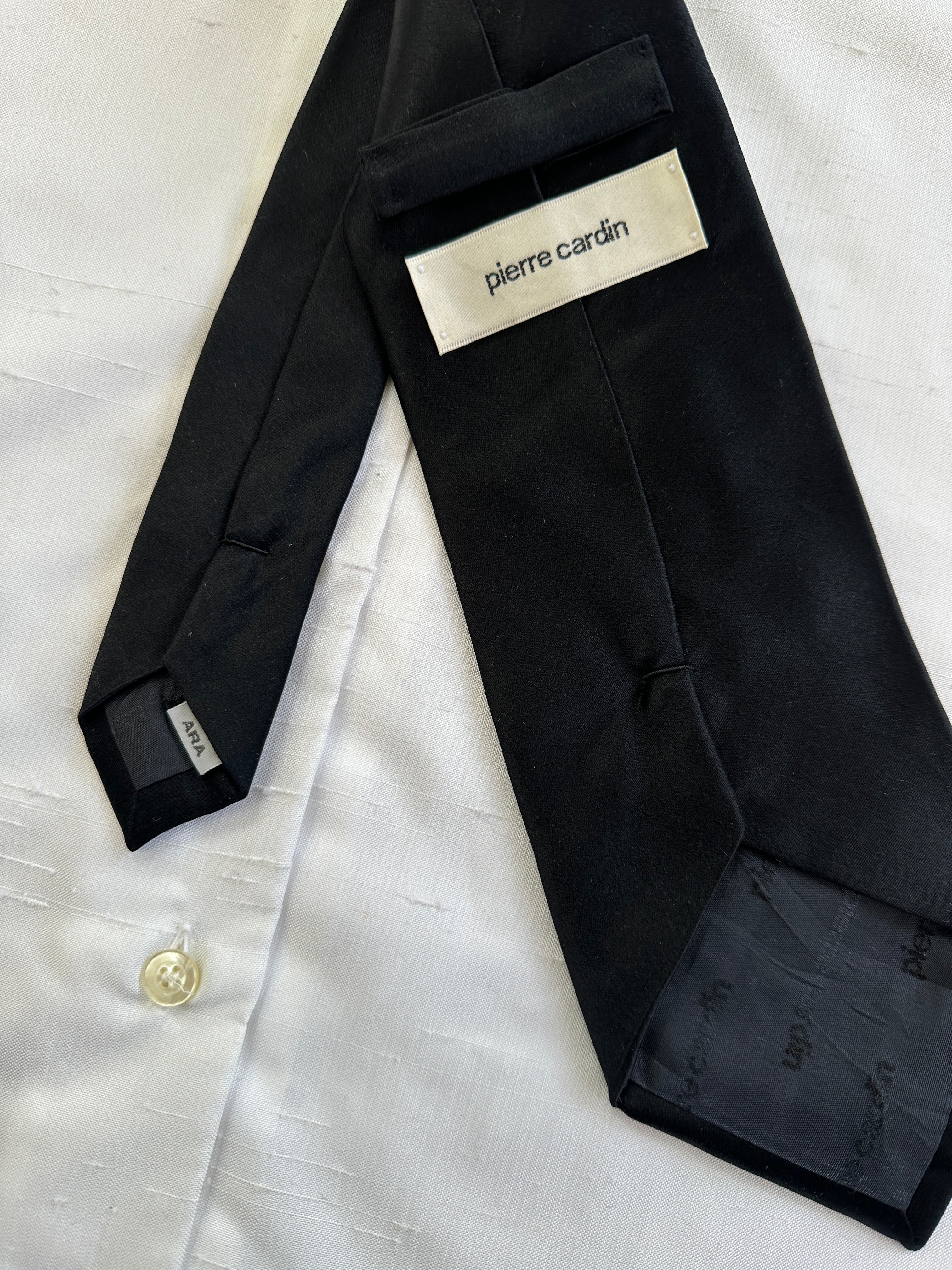 A vintage 2000s Pierre Cardin wide tie in classic black pure silk. A clean minimalist design with a smooth satin finish that feels refined and quietly formal.
