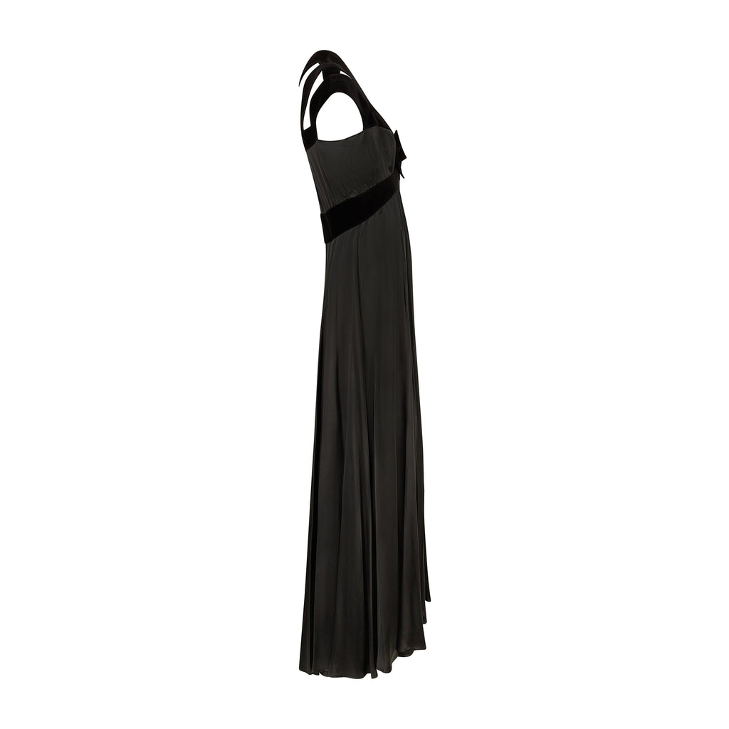 1992 Thierry Mugler Runway Black Satin and Velvet Maxi Dress