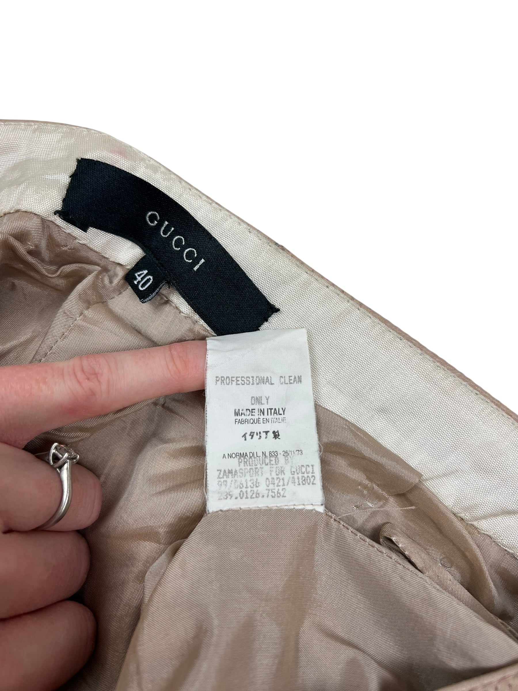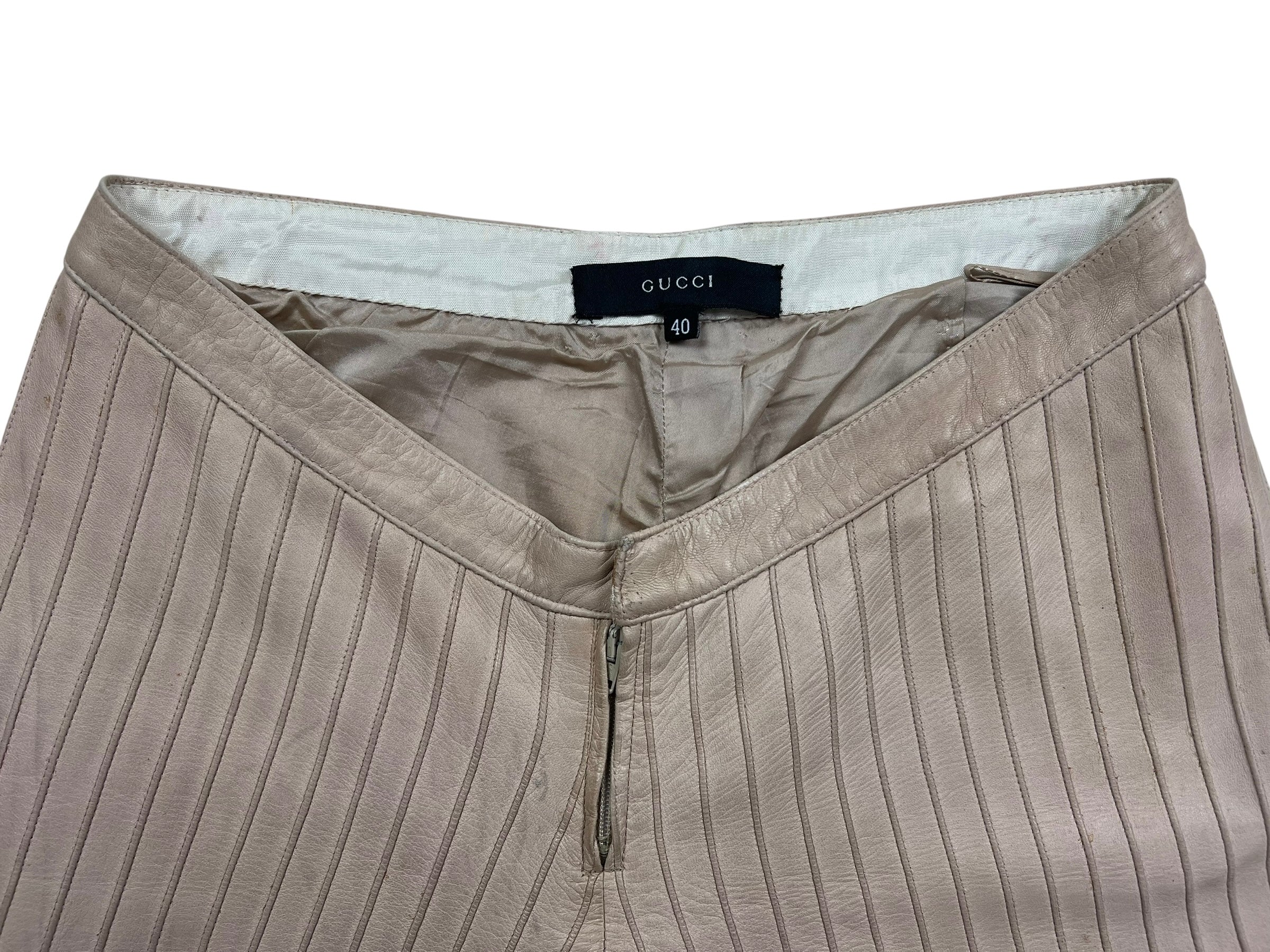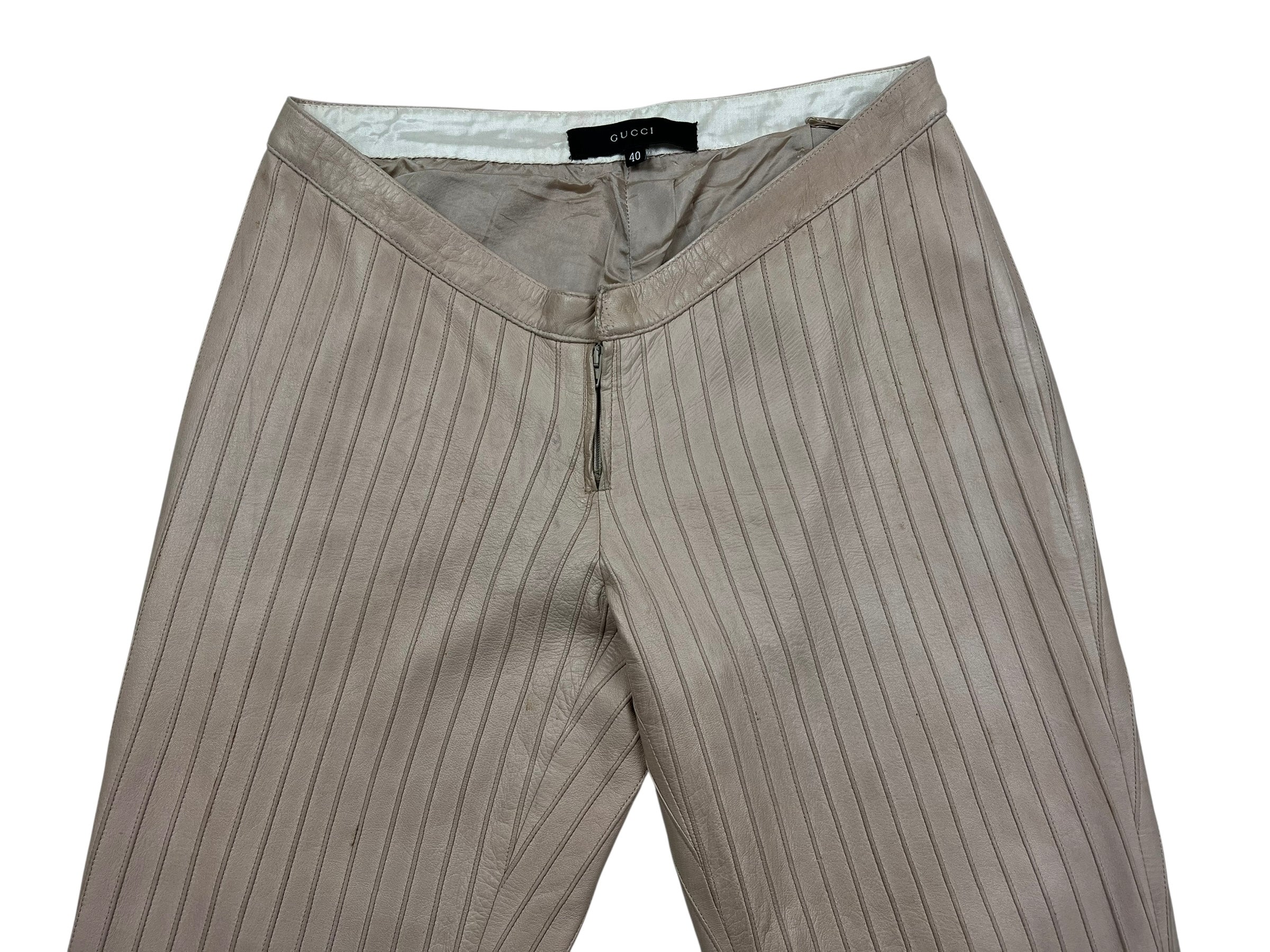 Gucci F/W 1999 Tom Ford era beige leather striped trousers. As seen on the runway and ad campaigns. Size XXS, UK4/6. All details below👇