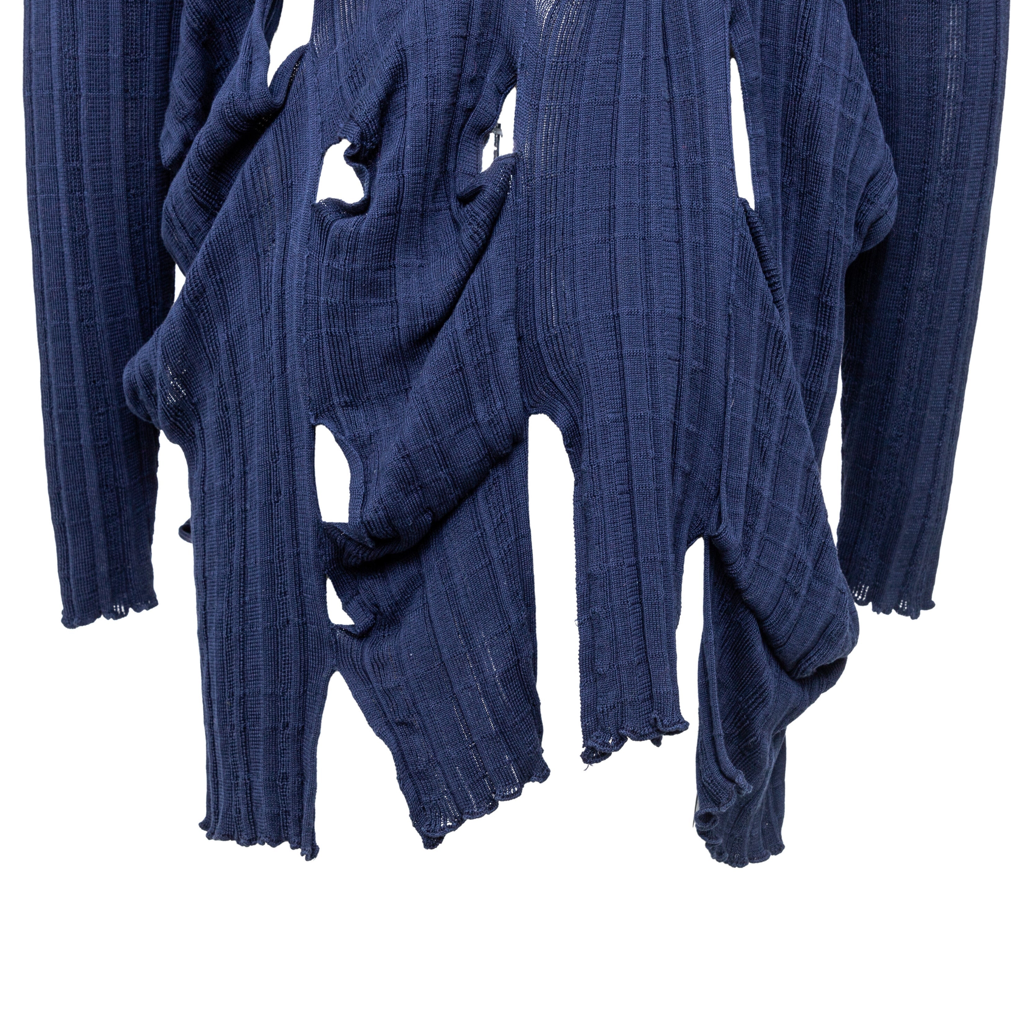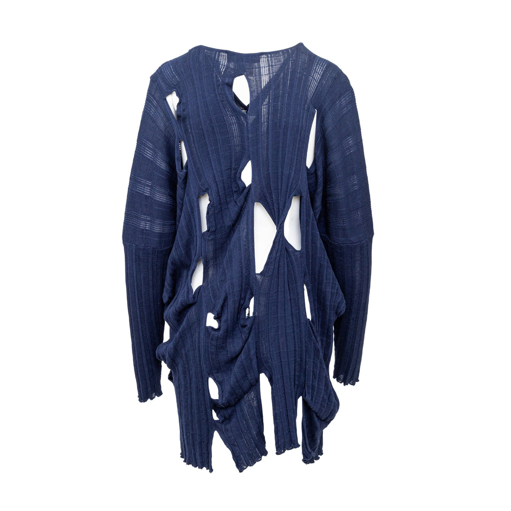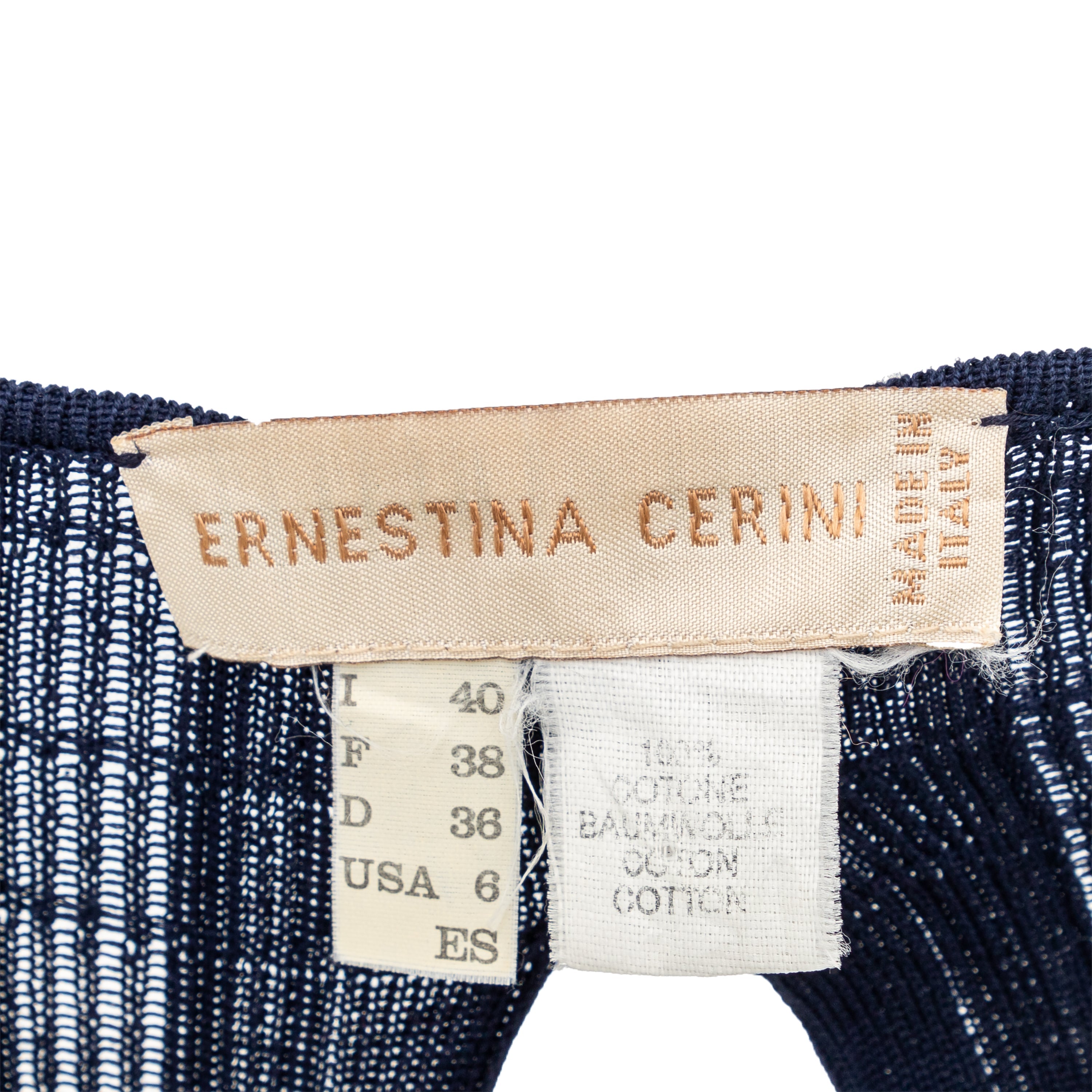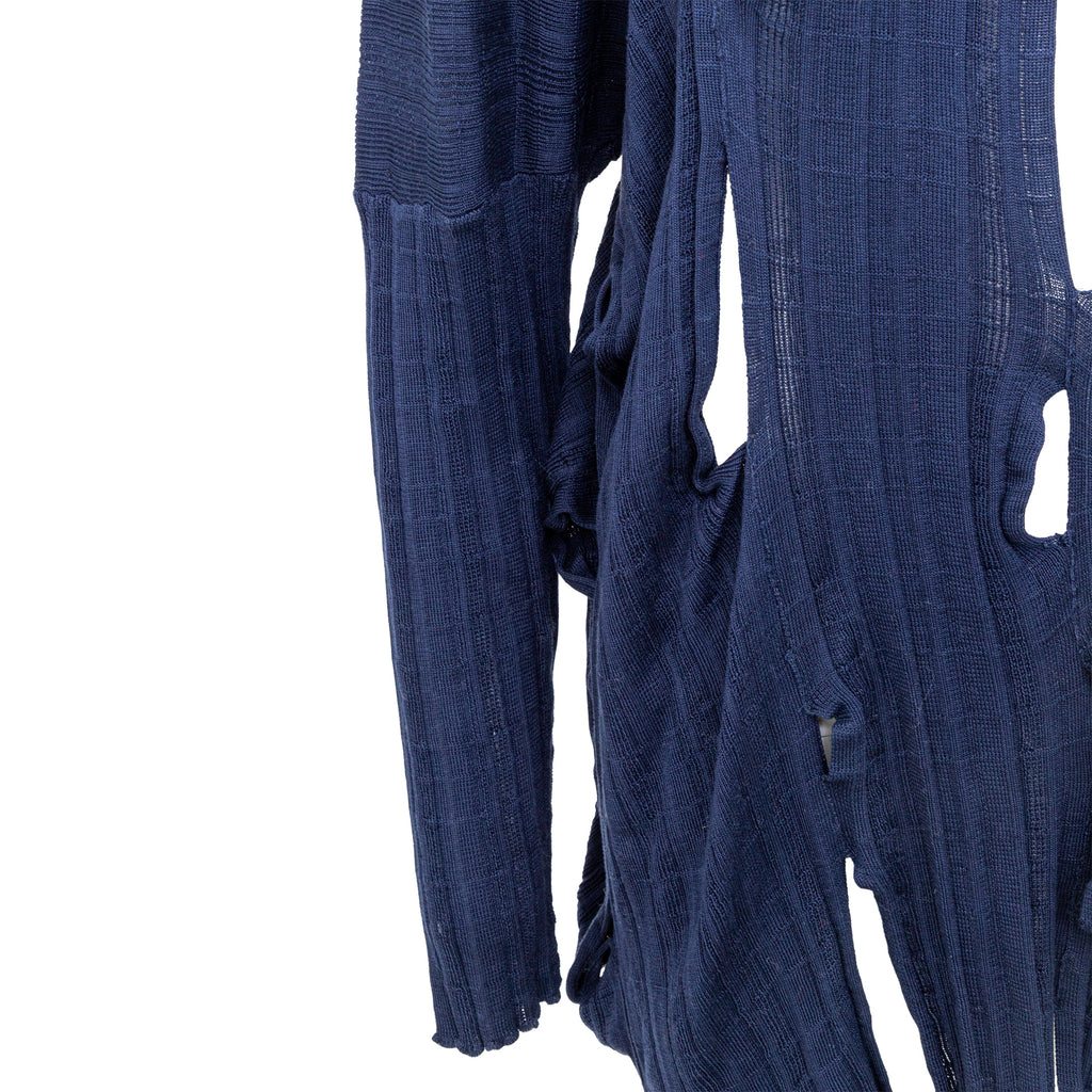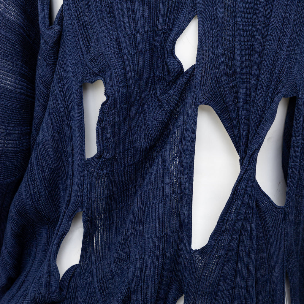 Indulge in the vintage yet modern design of the Ernestina Cerini Cut-out top. Made from 100% cotton with a ribbed texture, this dark blue long top features unique cut-outs all over. With a v neck and fitted sleeve, it can also be worn as a dress for an edgy look.