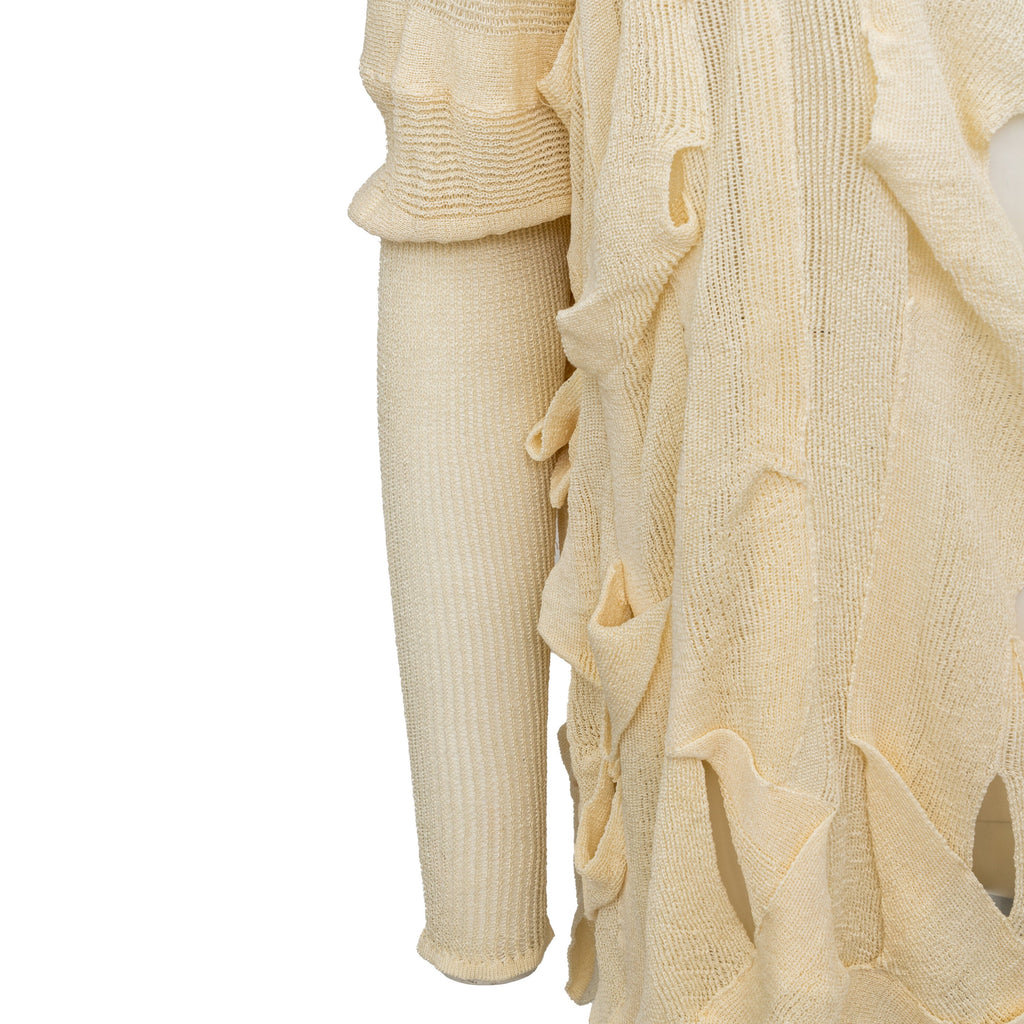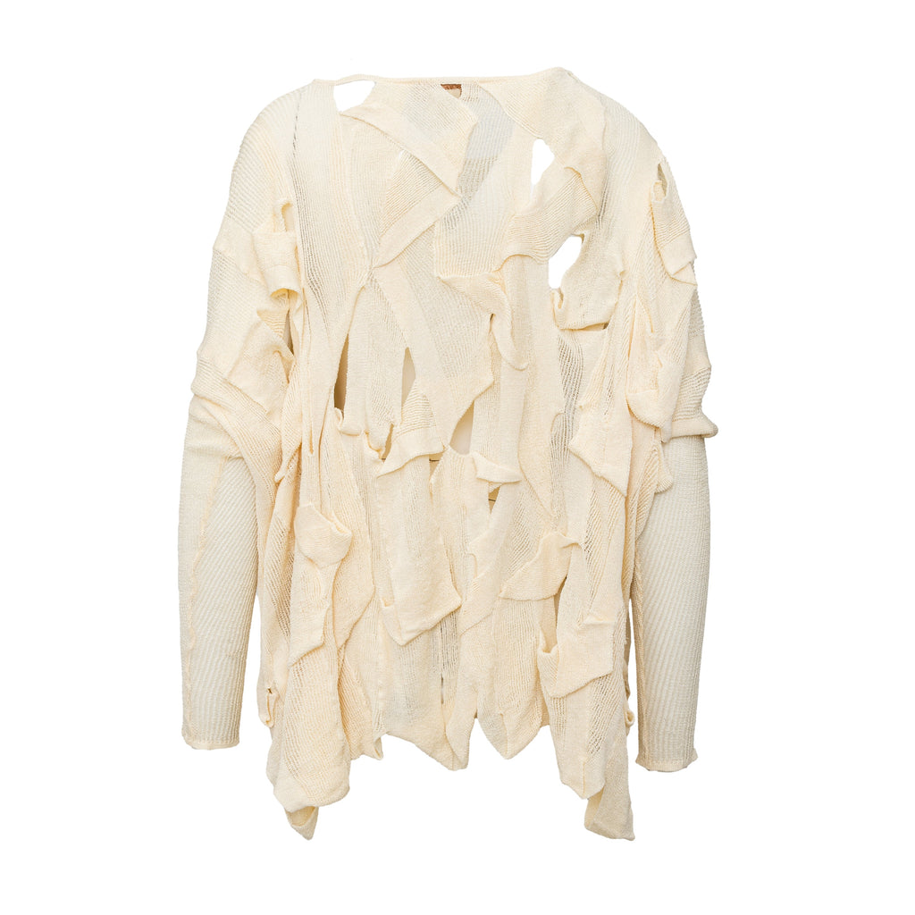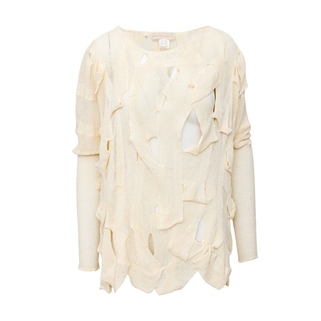 Expertly designed by Ernestina Cerini, this top showcases her mastery of texture from the Summer Spring 1993 collection. Made with a blend of rayon and cotton, the off-white top boasts layered cut-outs and a relaxed fit with fitted long sleeves.