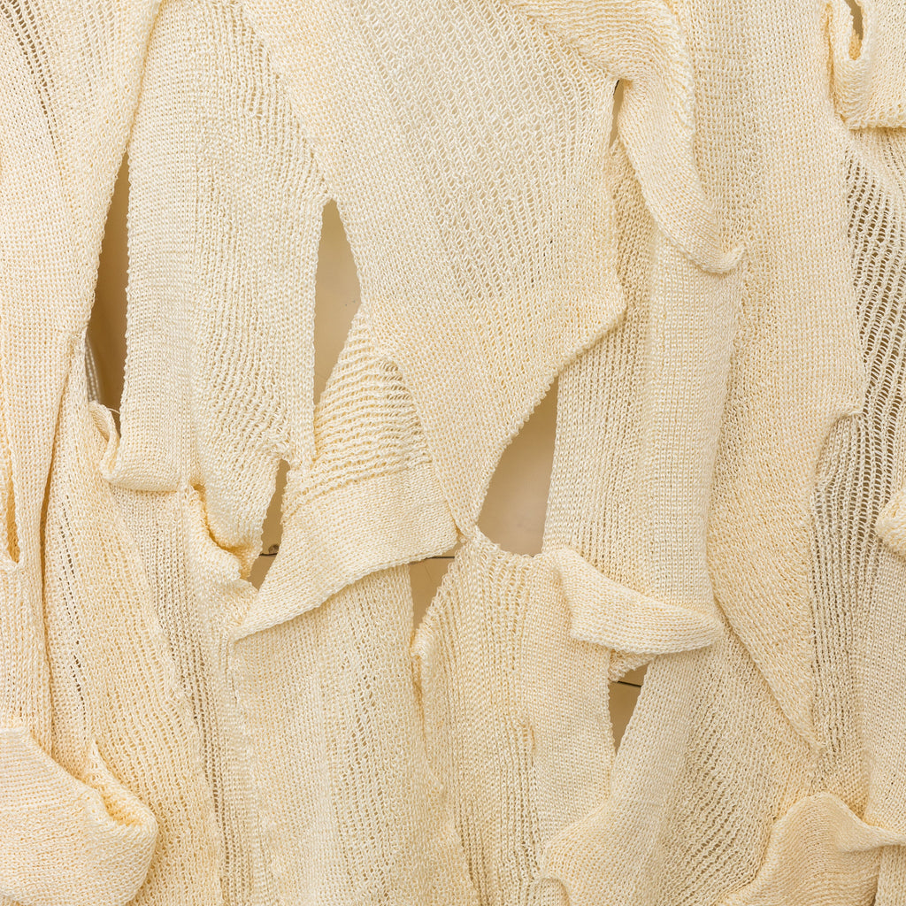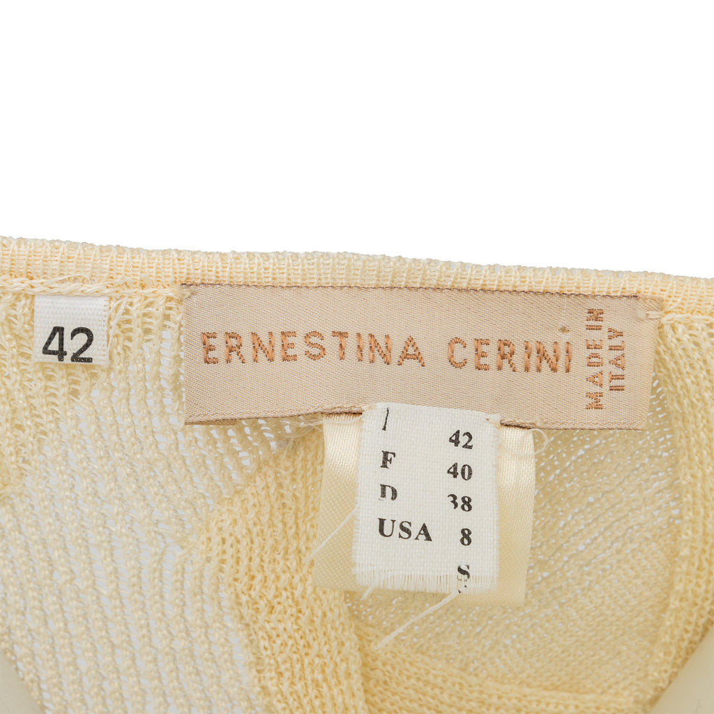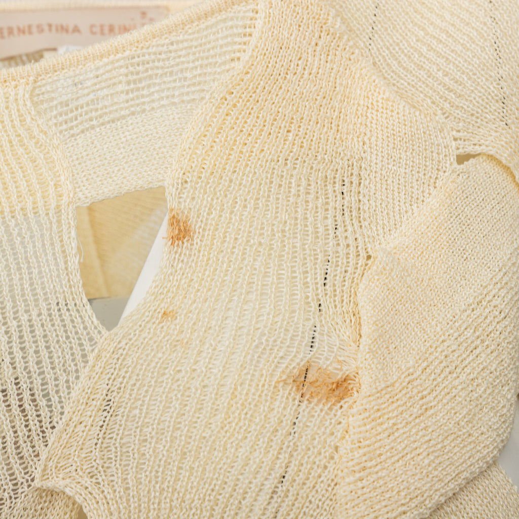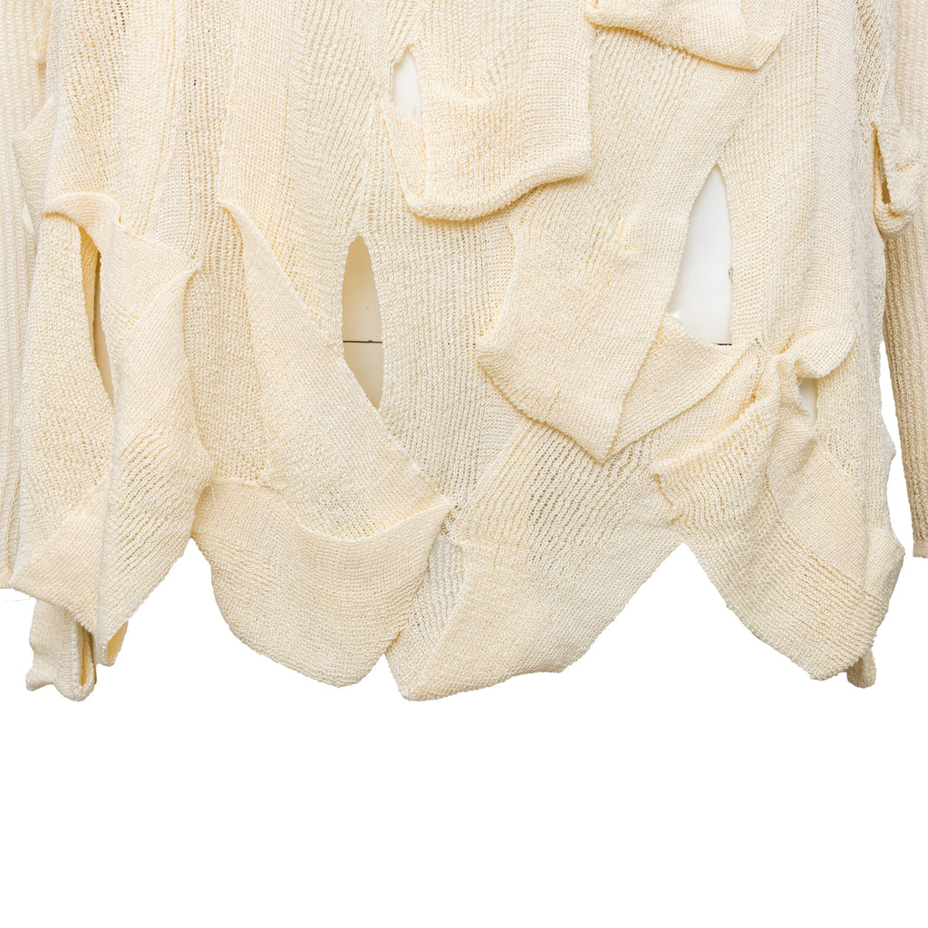 Expertly designed by Ernestina Cerini, this top showcases her mastery of texture from the Summer Spring 1993 collection. Made with a blend of rayon and cotton, the off-white top boasts layered cut-outs and a relaxed fit with fitted long sleeves.