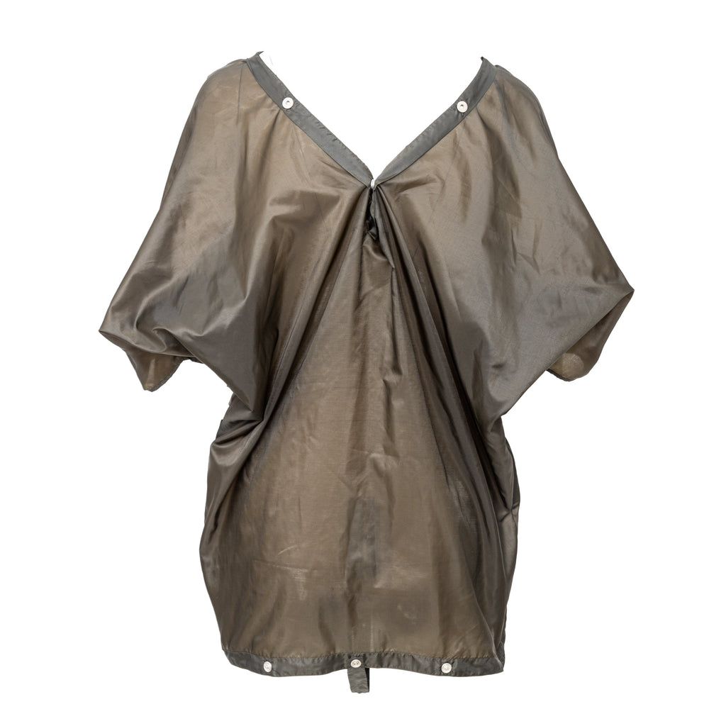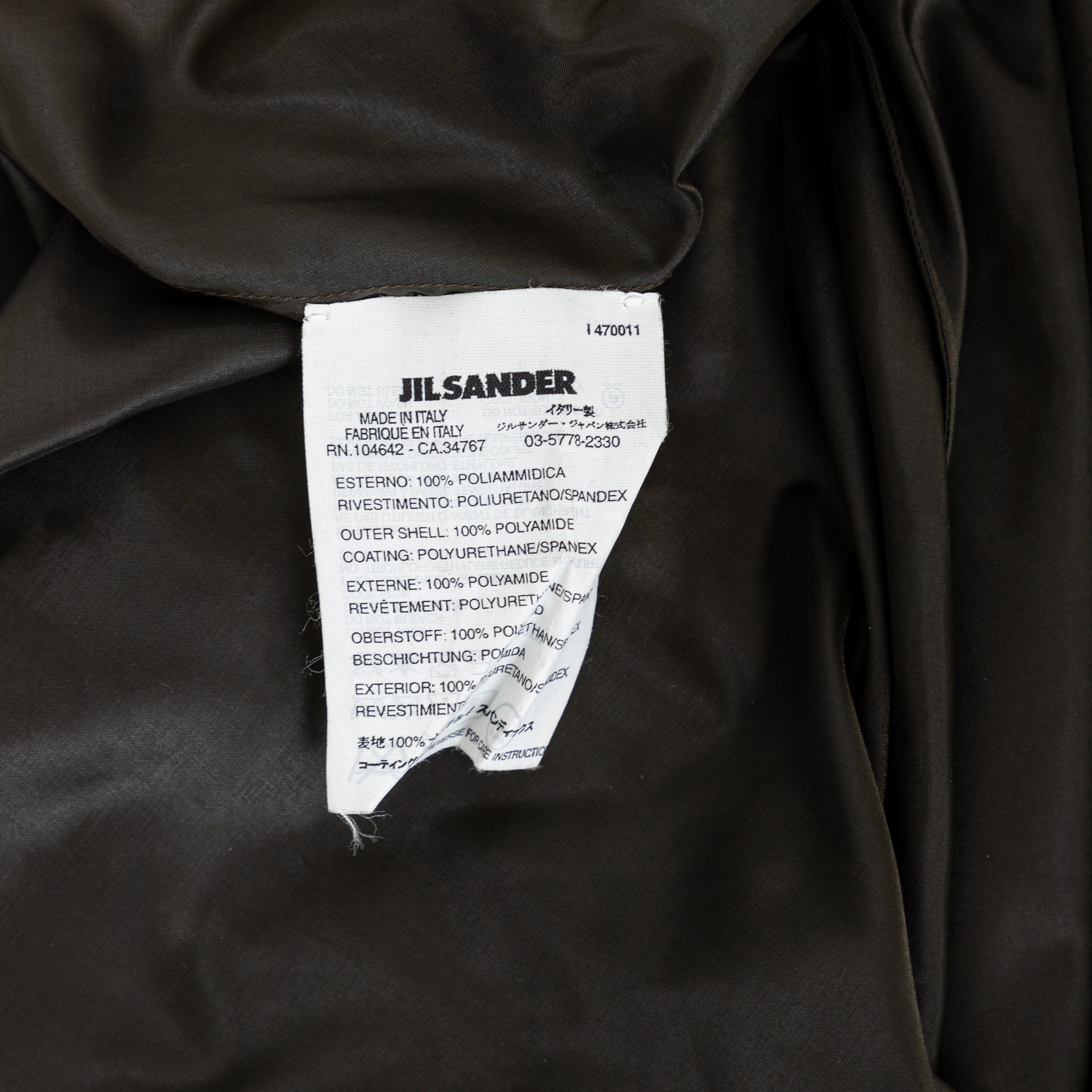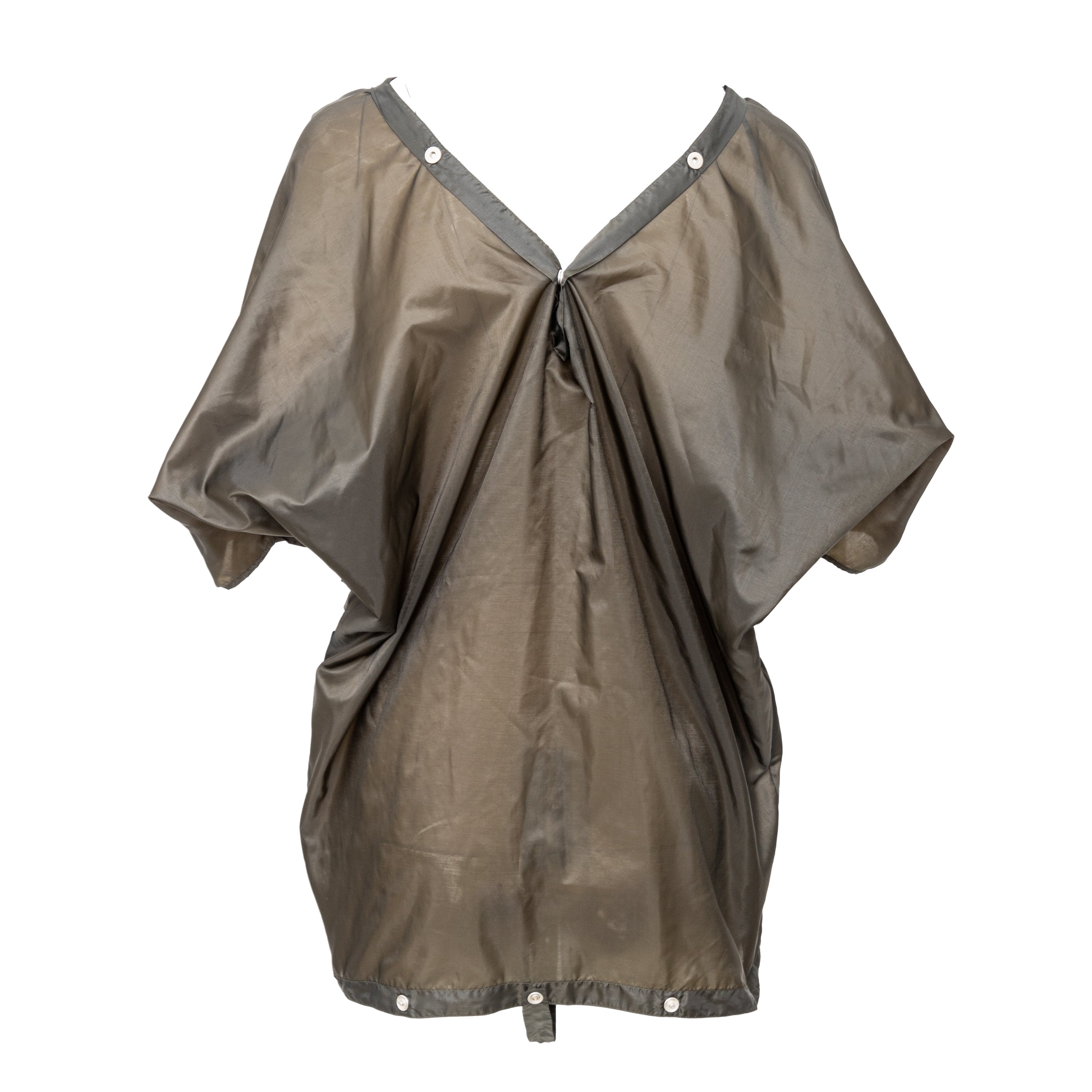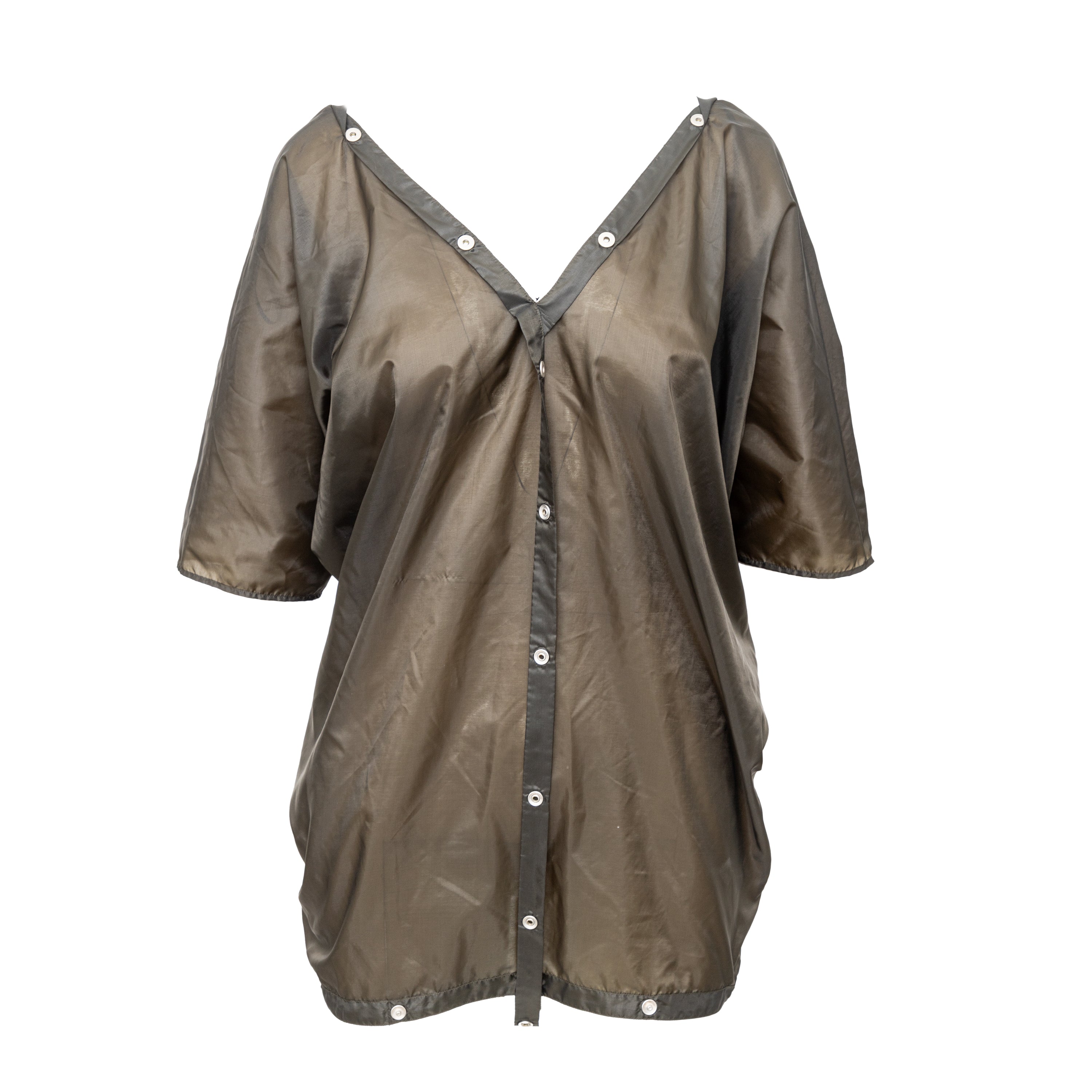 Expertly crafted from nylon with a coating of spandex, this semi-sheer windbreaker styled top from the Jil Sander 2008 collection boasts a sleek v-neck design adorned with eyelets and snap buttons.