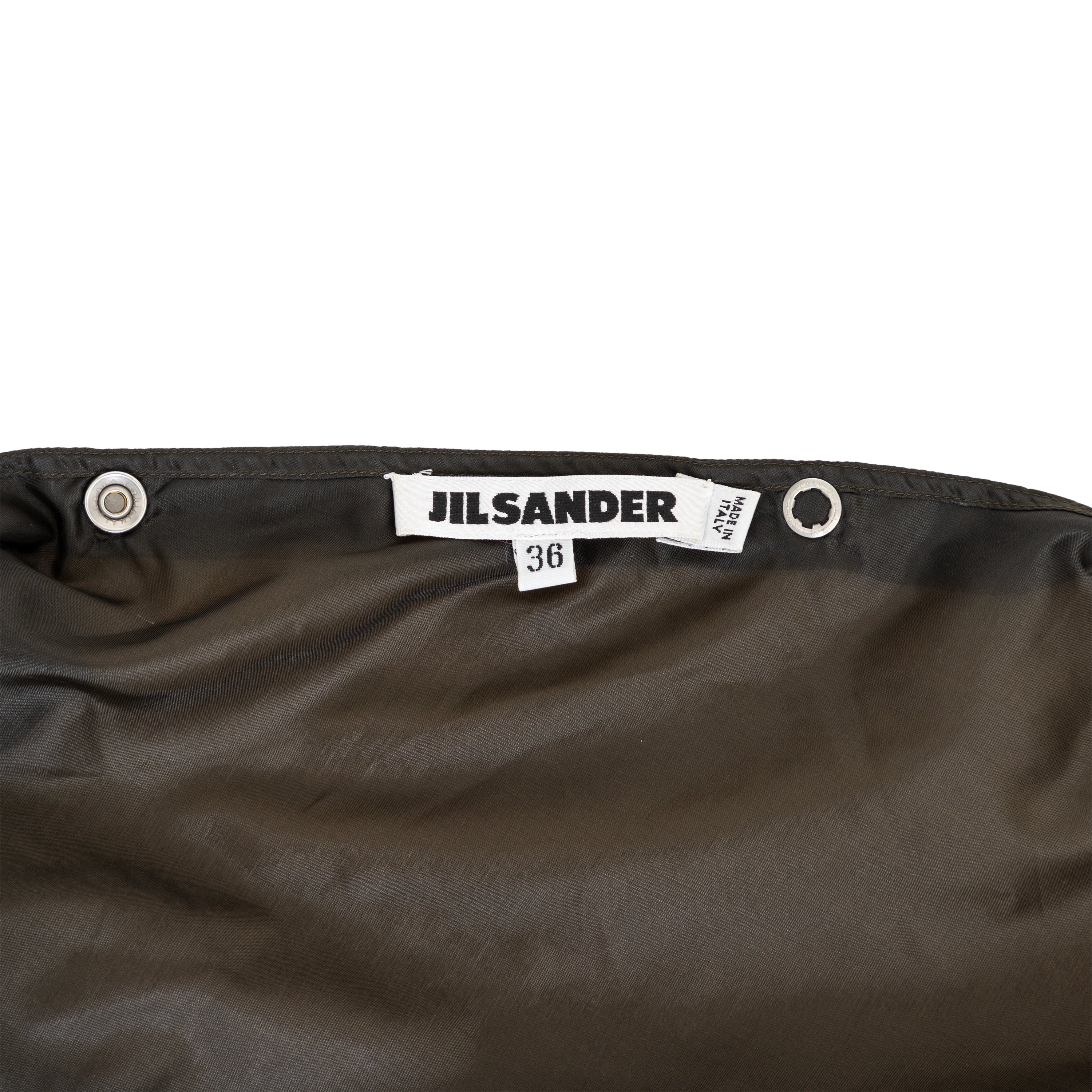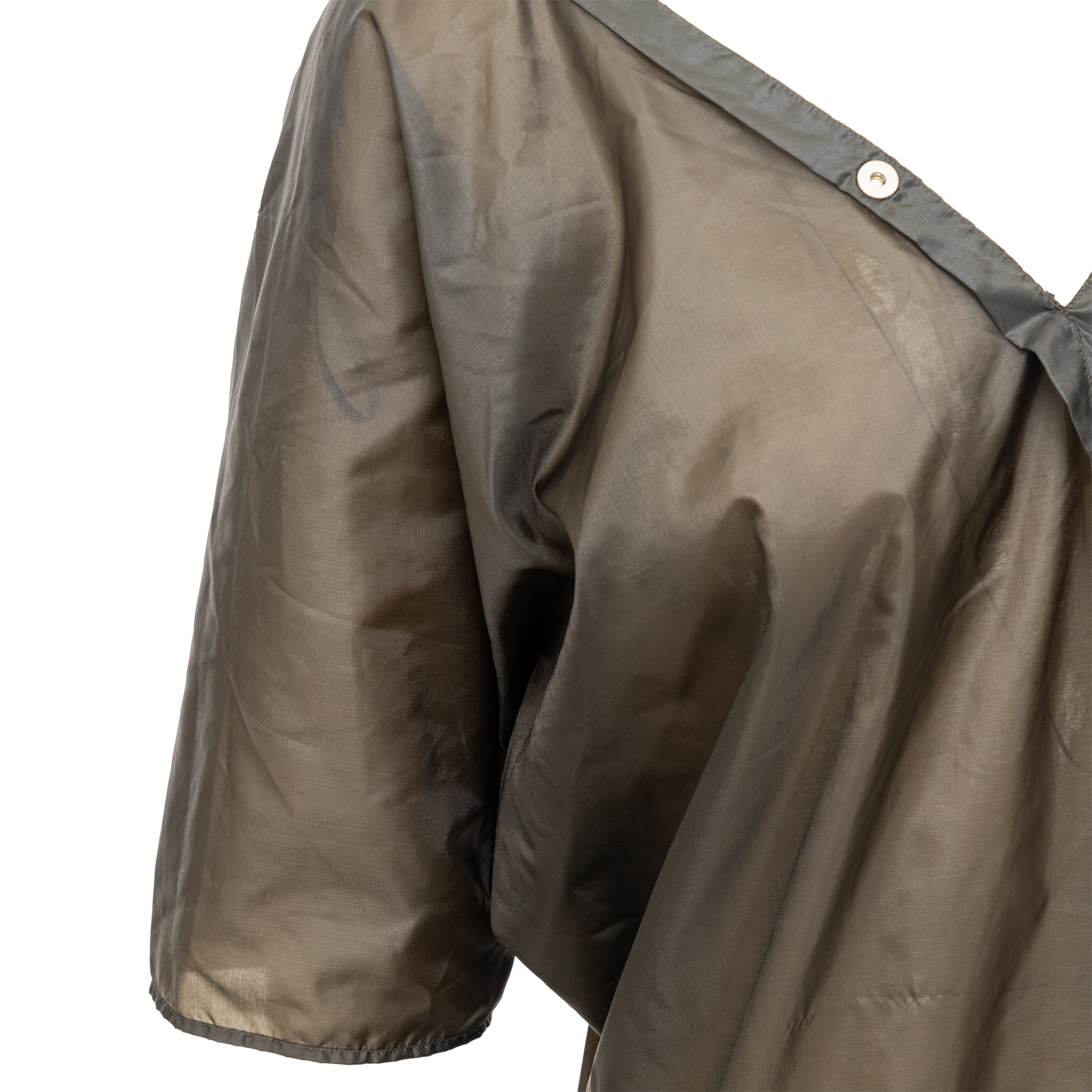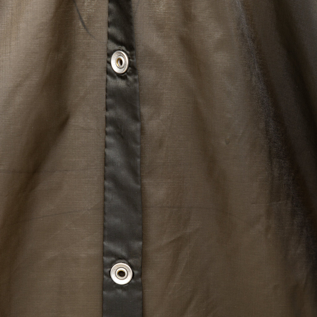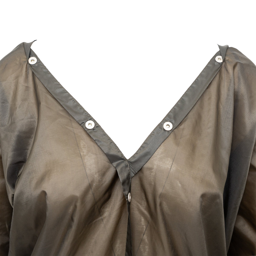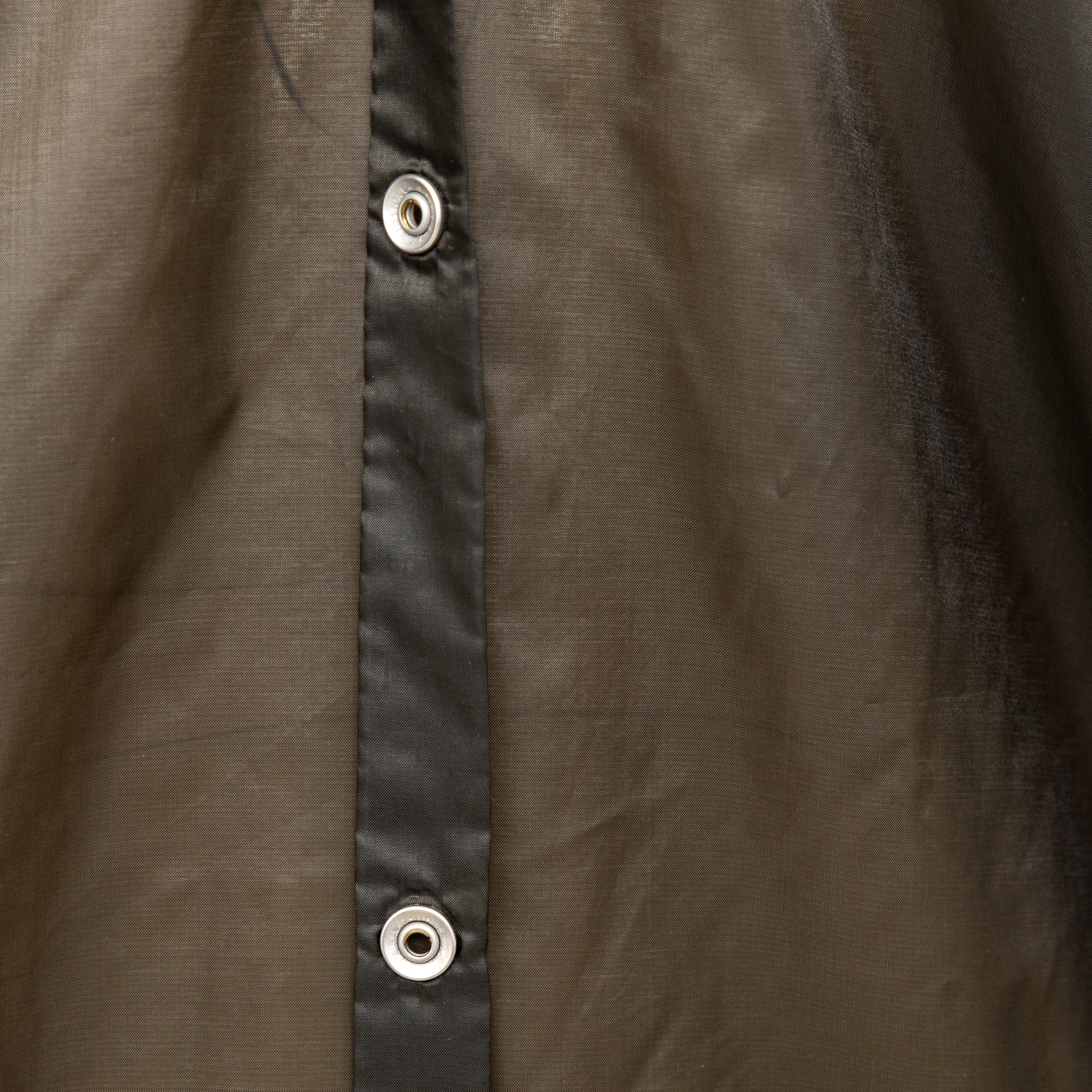 Expertly crafted from nylon with a coating of spandex, this semi-sheer windbreaker styled top from the Jil Sander 2008 collection boasts a sleek v-neck design adorned with eyelets and snap buttons.