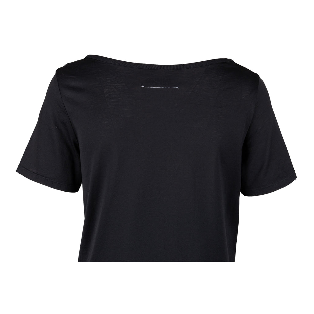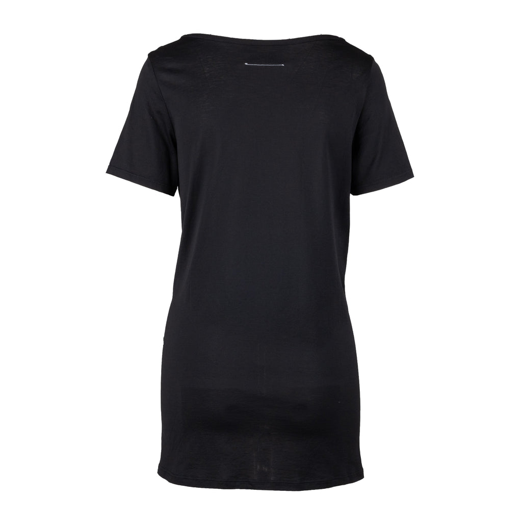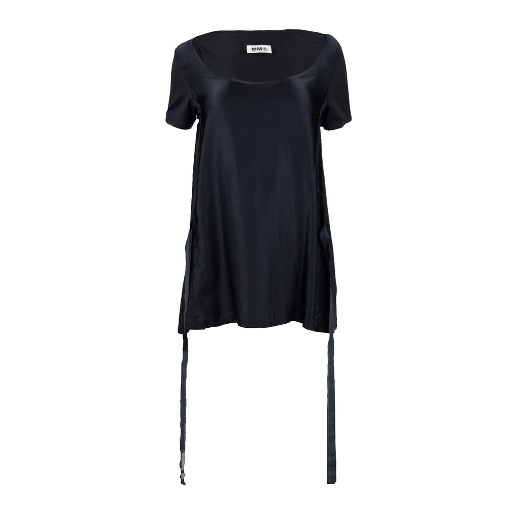 This MM6 Maison Margiela Long Top features a deep rounded boat neck, short sleeves, and a front part with a signature tie-up ribbon. Style it as a dress with boots for a contemporary look. Crafted from cotton in black, it’s sure to become a wardrobe staple.