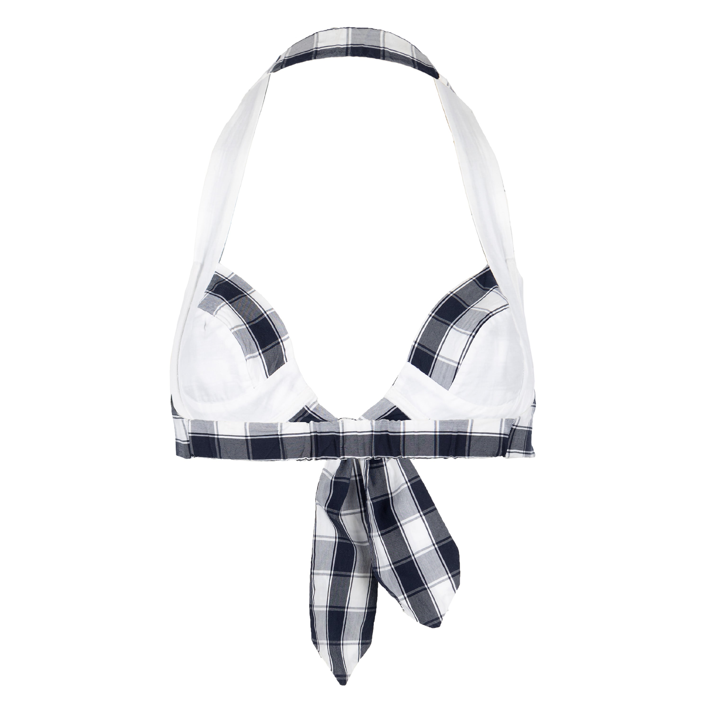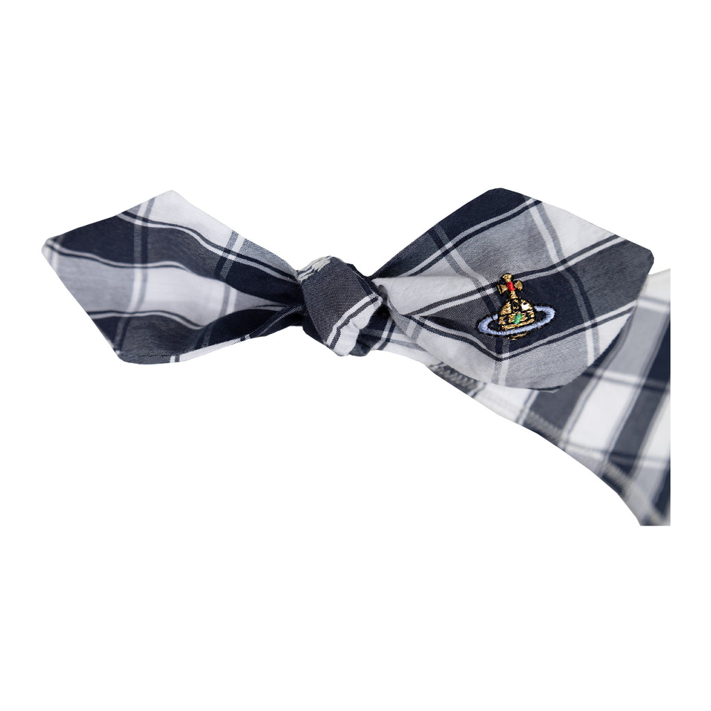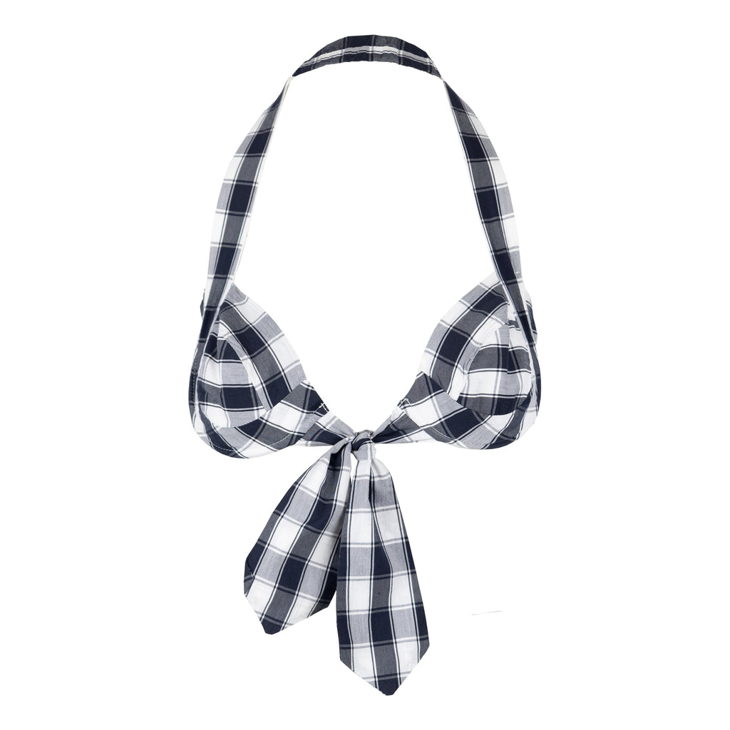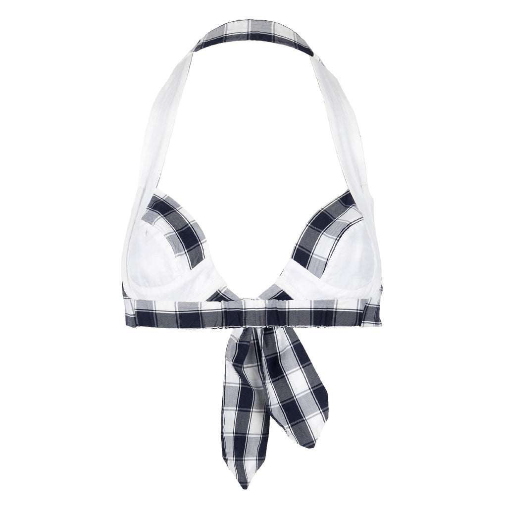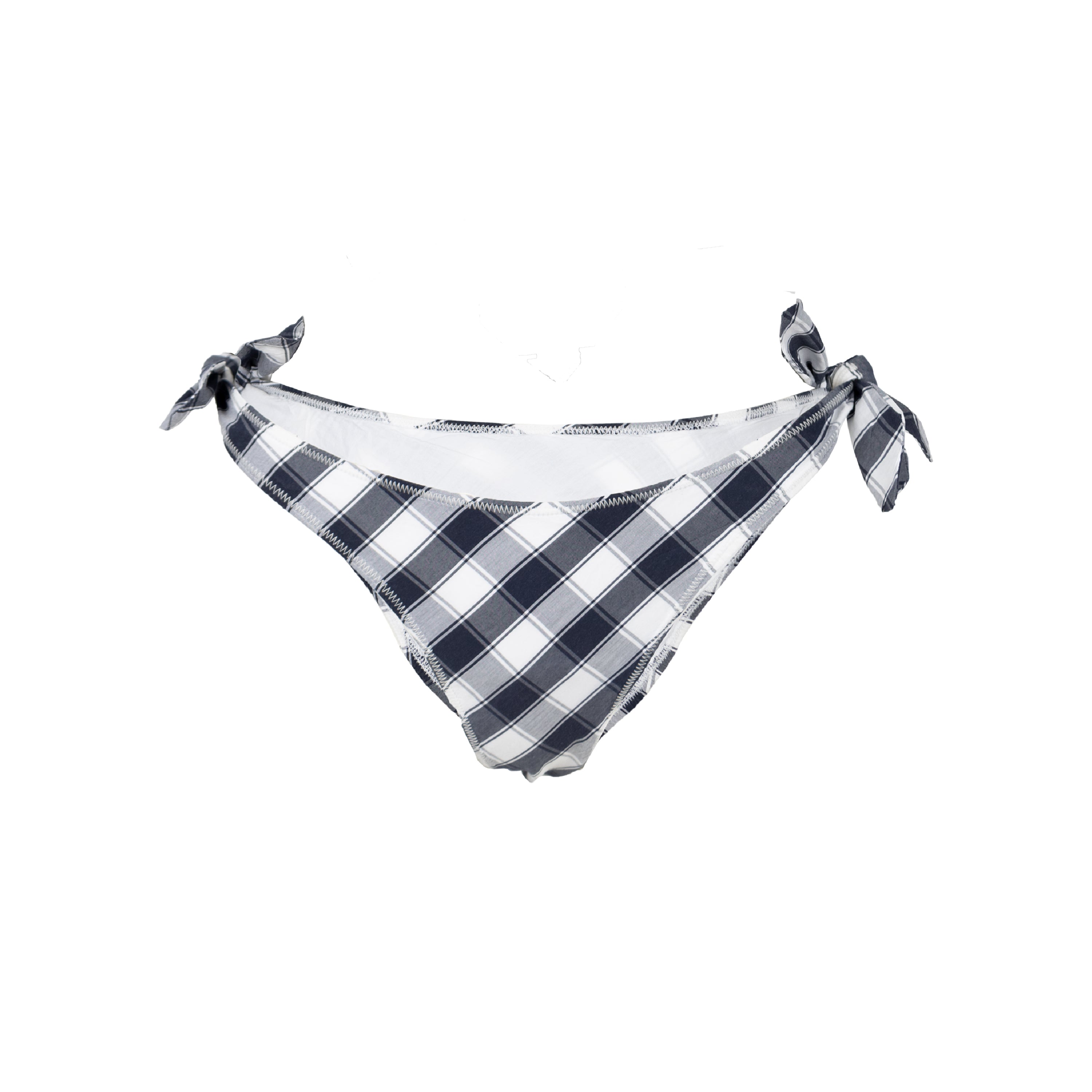 This Vivienne Westwood Red Label two-piece swimwear features black and white checkered pattern, a signature of Vivienne Westwood's design aesthetic. The tie knots, which are located at the sides and front of the swimsuit, add a touch of whimsy and can be easily adjusted to the fit the wearer.