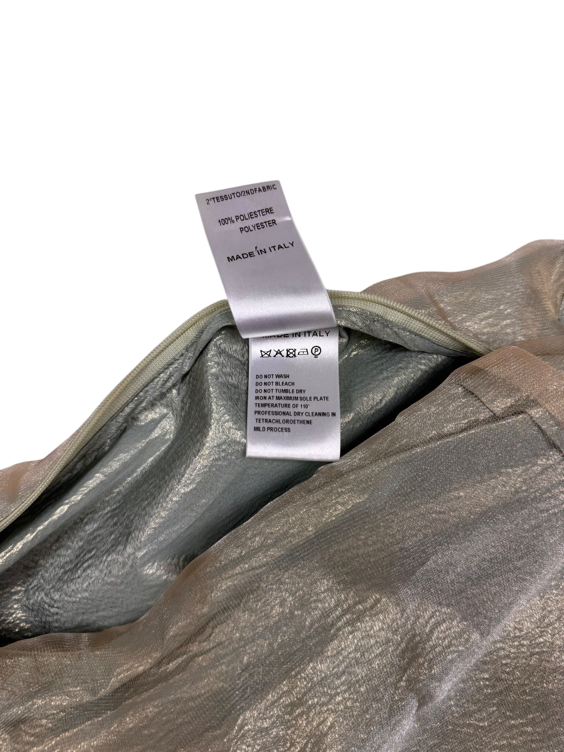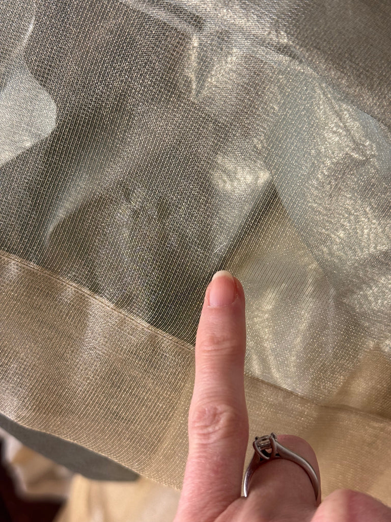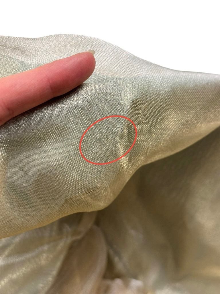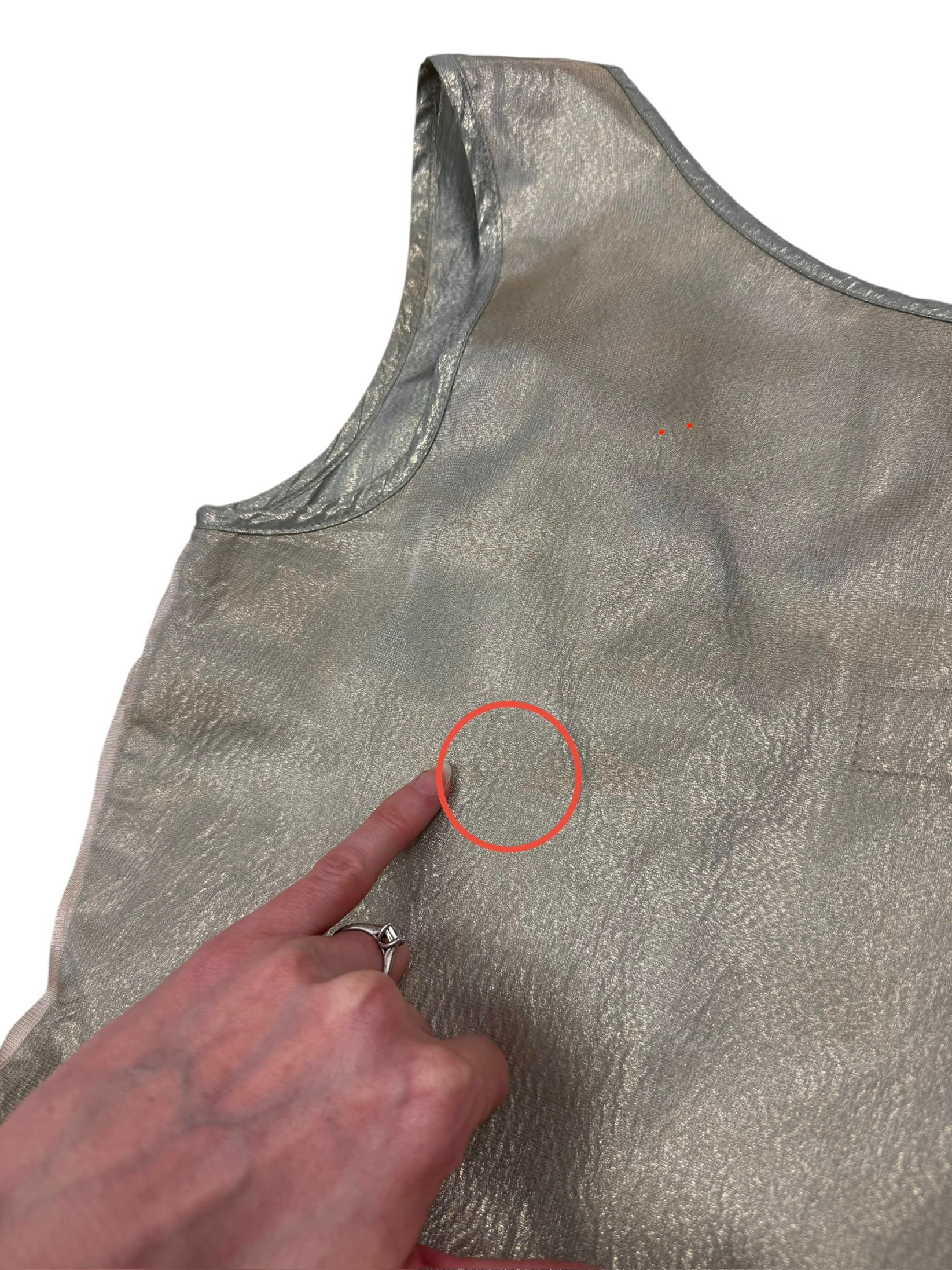 🫶 Condition is excellent - new with tags. No holes, stains, or odour. Underarms clean and stain-free. One very small stretch to the mesh fabric on the back as shown - it’s very hard to photograph so I have taken multiple picture from different angles. One minuscule pull to front left which is near impossible to photograph. Main fabric 53% silk, 35% polyamide, 12% polyester. 2nd fabric 100% polyester. Dry clean only.